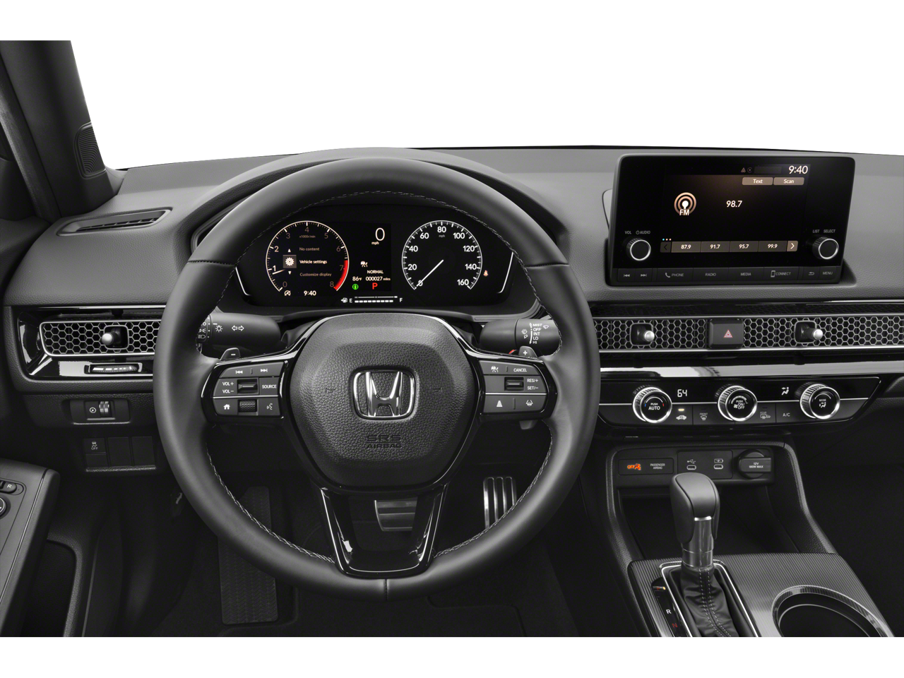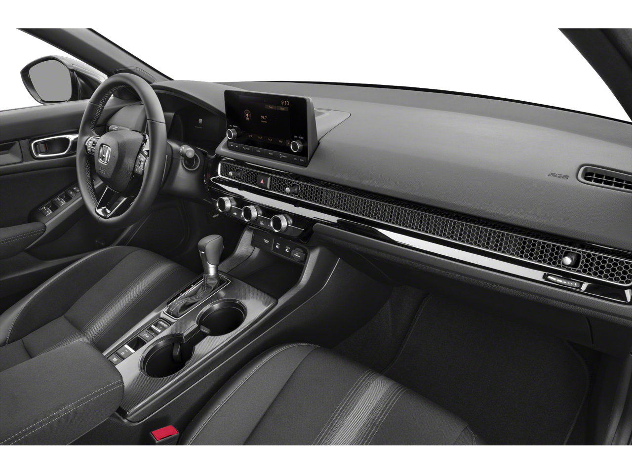 Black Artificial Leather, 4-Wheel Disc Brakes, 8 Speakers, ABS brakes, Adaptive Cruise Control: Adaptive Cruise Control (ACC) with Low-Speed Follow, Air Conditioning, Alloy wheels, AM/FM radio, Apple CarPlay/Android Auto, Auto High-beam Headlights, Automatic temperature control, Blind Spot Information (BSI) System warning, Brake assist, Bumpers: body-color, Cloth/Leatherette Seating Surfaces, Delay-off headlights, Driver door bin, Driver vanity mirror, Dual front impact airbags, Dual front side impact airbags, Electronic Stability Control, Emergency communication system: HondaLink, Exterior Parking Camera Rear, Four wheel independent suspension, Front anti-roll bar, Front Bucket Seats, Front Center Armrest, Front reading lights, Fully automatic headlights, Heated door mirrors, Illuminated entry, Knee airbag, Leather Shift Knob, Leather steering wheel, Low tire pressure warning, Occupant sensing airbag, Outside temperature display, Overhead airbag, Panic alarm, Passenger door bin, Passenger vanity mirror, Power door mirrors, Power steering, Power windows, Radio data system, Radio: 180-Watt Audio System, Rear anti-roll bar, Rear seat center armrest, Rear side impact airbag, Rear window defroster, Remote keyless entry, Security system, Speed control, Speed-sensing steering, Split folding rear seat, Steering wheel mounted audio controls, Tachometer, Telescoping steering wheel, Tilt steering wheel, Traction control, Trip computer, Wheels: 18 Gloss Black Alloy, Black Artificial Leather. 31/39 City/Highway MPG