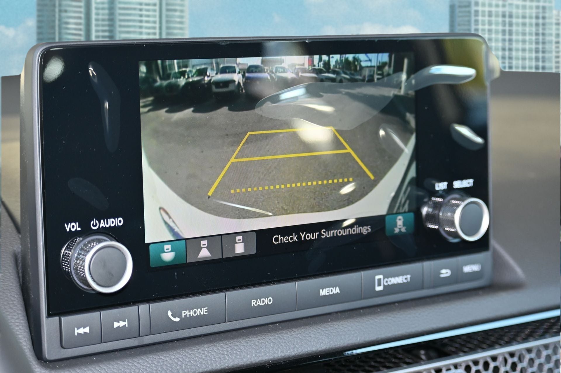 Black Artificial Leather, 4-Wheel Disc Brakes, 8 Speakers, ABS brakes, Adaptive Cruise Control: Adaptive Cruise Control (ACC) with Low-Speed Follow, Air Conditioning, Alloy wheels, AM/FM radio, Apple CarPlay/Android Auto, Auto High-beam Headlights, Automatic temperature control, Blind Spot Information (BSI) System warning, Brake assist, Bumpers: body-color, Cloth/Leatherette Seating Surfaces, Delay-off headlights, Driver door bin, Driver vanity mirror, Dual front impact airbags, Dual front side impact airbags, Electronic Stability Control, Emergency communication system: HondaLink, Exterior Parking Camera Rear, Four wheel independent suspension, Front anti-roll bar, Front Bucket Seats, Front Center Armrest, Front reading lights, Fully automatic headlights, Heated door mirrors, Illuminated entry, Knee airbag, Leather Shift Knob, Leather steering wheel, Low tire pressure warning, Occupant sensing airbag, Outside temperature display, Overhead airbag, Panic alarm, Passenger door bin, Passenger vanity mirror, Power door mirrors, Power steering, Power windows, Radio data system, Radio: 180-Watt Audio System, Rear anti-roll bar, Rear seat center armrest, Rear side impact airbag, Rear window defroster, Remote keyless entry, Security system, Speed control, Speed-sensing steering, Split folding rear seat, Steering wheel mounted audio controls, Tachometer, Telescoping steering wheel, Tilt steering wheel, Traction control, Trip computer, Wheels: 18 Gloss Black Alloy, Black Artificial Leather. 31/39 City/Highway MPG