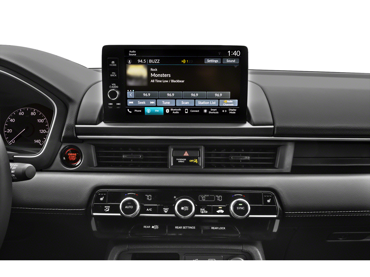 - Radio: 245-Watt Audio System -inc: 9 speakers w/subwoofer, 9" color touchscreen, Bluetooth® HandsFreeLink and streaming audio, Radio Data System (RDS), Speed-Sensitive Volume Compensation (SVC), wireless Apple CarPlay and Android Auto compatibility, SMS text message function (Your wireless carrier's rate plans apply, State or local laws may limit use of texting feature.), HD Radio, 2.5-amp USB type-A smartphone/audio interface port in front console and CabinTalk in-car PA system