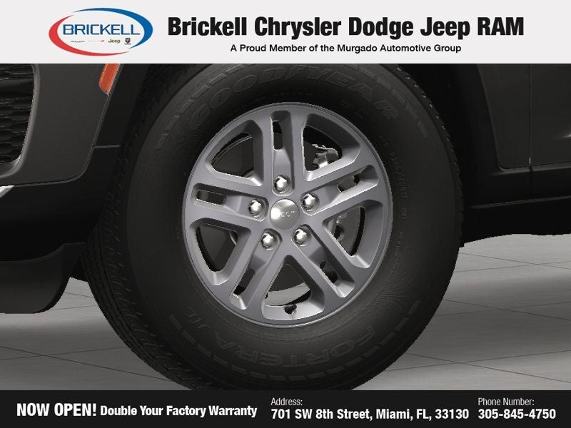 Price includes: $2250 - 2025 National Retail Bonus Cash . Exp. 03/02/2026 $500 - 2025 National 2025 First Responder Bonus Cash. Exp. 01/04/2027 $500 - 2025 National 2025 Military Bonus Cash. Exp. 01/04/2027 $500 - 2025 Southeast BC Retail Bonus Cash . Exp. 03/02/2026 Discover Your Next Vehicle at Brickell Chrysler Dodge Jeep Ram Welcome to Brickell CDJR, where we go beyond selling cars. We double the factory powertrain warranty, giving you added peace of mind. Our dealership offers one of the largest new car inventories in the region, ensuring you find the right vehicle Prices displayed do not included our Perma-plate. Our state-of-the-art service department is the largest in the country and is open seven days a week from 7 AM to 9 PM. Visit us at 701 SW 8th St, Miami, FL 33130, or call 305-777-2800 to learn more and schedule a test drive. The displayed price includes an incentive for financing with Brickell CDJR Finance Company. Outside financing and bank drafts are not accepted. All pre-owned vehicle exports are subject to an export fee. Prices apply only to customers who live, work, or worship in Broward, Miami-Dade, Palm Beach, Monroe, Collier, Hendry, Lee, Glades, Martin, St. Lucie, Okeechobee, Manatee, Hillsborough, Osceola, or Orange County. Customers outside these counties will pay an additional $ Taxes, title, registration, and dealer fees apply. Factory MSRP: $41,220 Baltic Gray Metallic Clearcoat 2025 Jeep Grand Cherokee Laredo RWD 8-Speed Automatic 3.6L V6 24V VVT