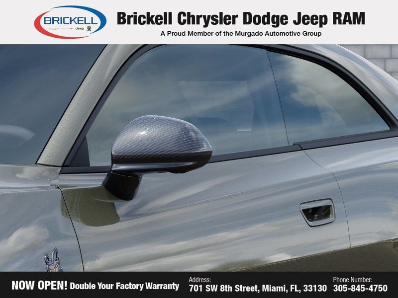 Discover Your Next Vehicle at Brickell Chrysler Dodge Jeep Ram Welcome to Brickell CDJR, where we go beyond selling cars. We double the factory powertrain warranty, giving you added peace of mind. Our dealership offers one of the largest new car inventories in the region, ensuring you find the right vehicle Prices displayed do not included our Perma-plate. Our state-of-the-art service department is the largest in the country and is open seven days a week from 7 AM to 9 PM. Visit us at 701 SW 8th St, Miami, FL 33130, or call 305-777-2800 to learn more and schedule a test drive. The displayed price includes an incentive for financing with Brickell CDJR Finance Company. Outside financing and bank drafts are not accepted. All pre-owned vehicle exports are subject to an export fee. Prices apply only to customers who live, work, or worship in Broward, Miami-Dade, Palm Beach, Monroe, Collier, Hendry, Lee, Glades, Martin, St. Lucie, Okeechobee, Manatee, Hillsborough, Osceola, or Orange County. Customers outside these counties will pay an additional $ Taxes, title, registration, and dealer fees apply. Factory MSRP: $70,950 Green Machine 2026 Dodge Charger R/T Scat Pack AWD 8-Speed Automatic HO AWD, Black Leather.