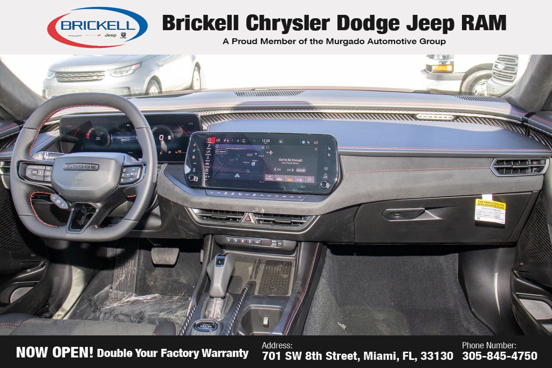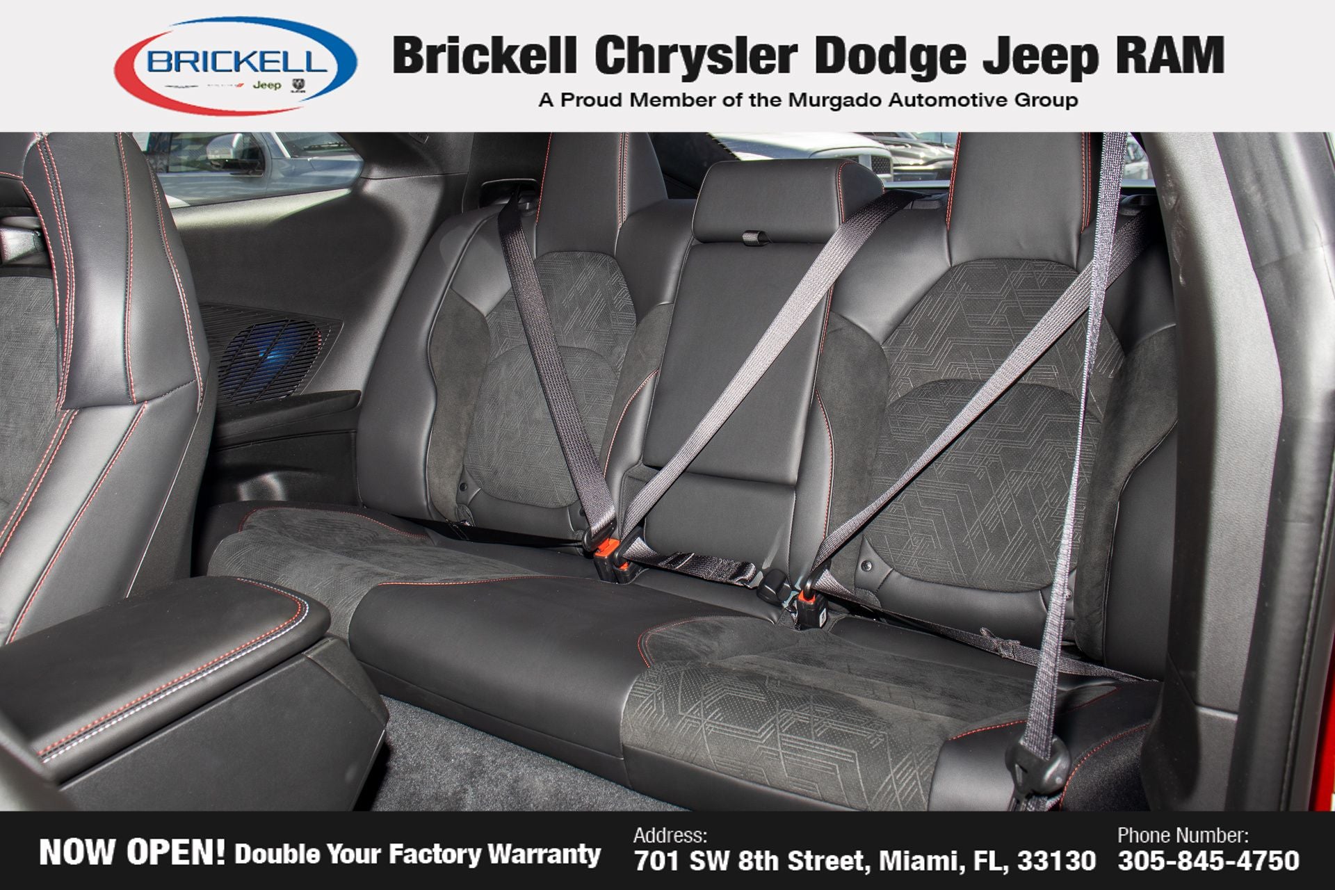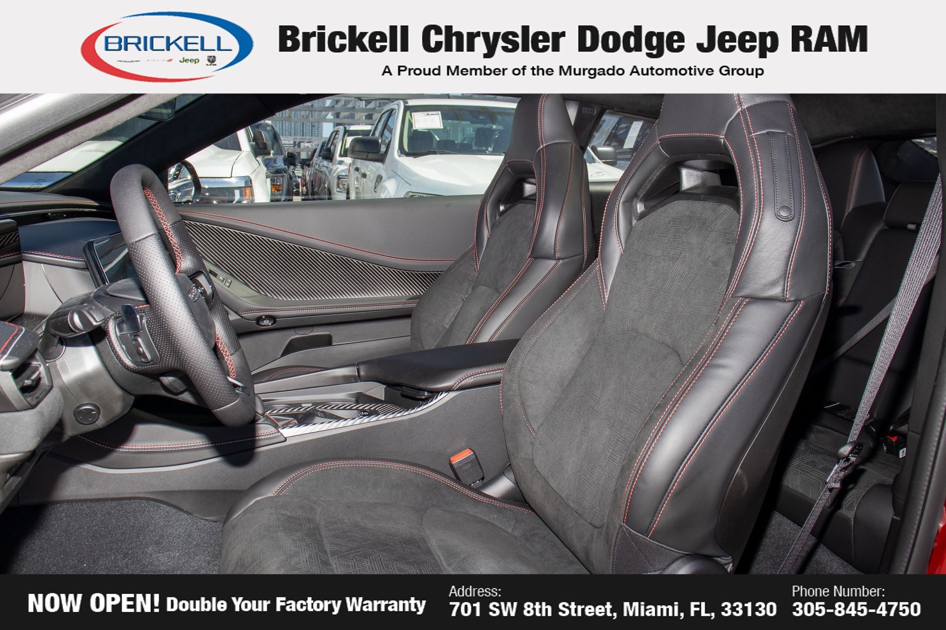 Price includes: $500 - 2026 National 2026 First Responder Bonus Cash . Exp. 01/04/2027 $550 - 2026 National Burning Gas Conquest Bonus Cash. Exp. 04/30/2026 Discover Your Next Vehicle at Brickell Chrysler Dodge Jeep Ram Welcome to Brickell CDJR, where we go beyond selling cars. We double the factory powertrain warranty, giving you added peace of mind. Our dealership offers one of the largest new car inventories in the region, ensuring you find the right vehicle Prices displayed do not included our Perma-plate. Our state-of-the-art service department is the largest in the country and is open seven days a week from 7 AM to 9 PM. Visit us at 701 SW 8th St, Miami, FL 33130, or call 305-777-2800 to learn more and schedule a test drive. The displayed price includes an incentive for financing with Brickell CDJR Finance Company. Outside financing and bank drafts are not accepted. All pre-owned vehicle exports are subject to an export fee. Prices apply only to customers who live, work, or worship in Broward, Miami-Dade, Palm Beach, Monroe, Collier, Hendry, Lee, Glades, Martin, St. Lucie, Okeechobee, Manatee, Hillsborough, Osceola, or Orange County. Customers outside these counties will pay an additional $ Taxes, title, registration, and dealer fees apply. Factory MSRP: $70,455 Redeye 2026 Dodge Charger R/T Scat Pack AWD 8-Speed Automatic HO AWD, Black Artificial Leather.