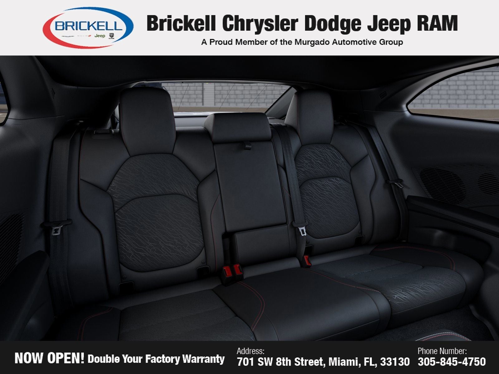 Discover Your Next Vehicle at Brickell Chrysler Dodge Jeep Ram Welcome to Brickell CDJR, where we go beyond selling cars. We double the factory powertrain warranty, giving you added peace of mind. Our dealership offers one of the largest new car inventories in the region, ensuring you find the right vehicle Prices displayed do not included our Perma-plate. Our state-of-the-art service department is the largest in the country and is open seven days a week from 7 AM to 9 PM. Visit us at 701 SW 8th St, Miami, FL 33130, or call 305-777-2800 to learn more and schedule a test drive. The displayed price includes an incentive for financing with Brickell CDJR Finance Company. Outside financing and bank drafts are not accepted. All pre-owned vehicle exports are subject to an export fee. Prices apply only to customers who live, work, or worship in Broward, Miami-Dade, Palm Beach, Monroe, Collier, Hendry, Lee, Glades, Martin, St. Lucie, Okeechobee, Manatee, Hillsborough, Osceola, or Orange County. Customers outside these counties will pay an additional $ Taxes, title, registration, and dealer fees apply. Factory MSRP: $60,175 Green Machine 2026 Dodge Charger R/T Scat Pack AWD 8-Speed Automatic HO AWD, Black Artificial Leather.