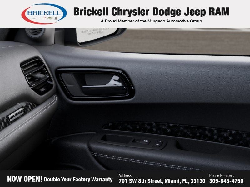 Price includes: $500 - 2026 National 2026 First Responder Bonus Cash . Exp. 01/04/2027 Discover Your Next Vehicle at Brickell Chrysler Dodge Jeep Ram Welcome to Brickell CDJR, where we go beyond selling cars. We double the factory powertrain warranty, giving you added peace of mind. Our dealership offers one of the largest new car inventories in the region, ensuring you find the right vehicle Prices displayed do not included our Perma-plate. Our state-of-the-art service department is the largest in the country and is open seven days a week from 7 AM to 9 PM. Visit us at 701 SW 8th St, Miami, FL 33130, or call 305-777-2800 to learn more and schedule a test drive. The displayed price includes an incentive for financing with Brickell CDJR Finance Company. Outside financing and bank drafts are not accepted. All pre-owned vehicle exports are subject to an export fee. Prices apply only to customers who live, work, or worship in Broward, Miami-Dade, Palm Beach, Monroe, Collier, Hendry, Lee, Glades, Martin, St. Lucie, Okeechobee, Manatee, Hillsborough, Osceola, or Orange County. Customers outside these counties will pay an additional $ Taxes, title, registration, and dealer fees apply. Factory MSRP: $91,445 DB Black Crystal Clearcoat 2026 Dodge Durango SRT Hellcat AWD 8-Speed Automatic 6.2L Supercharged HEMI V8 SRT AWD.