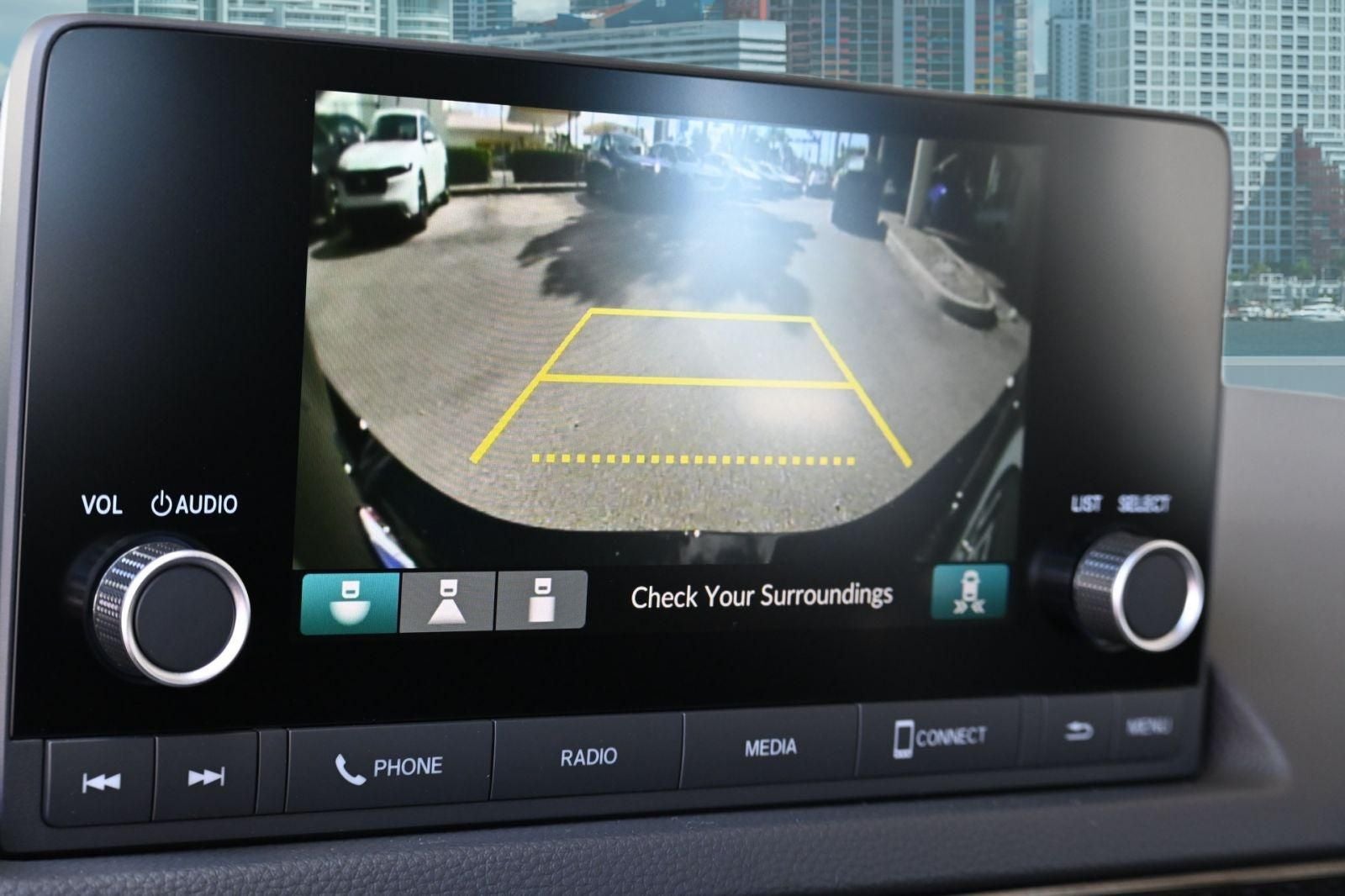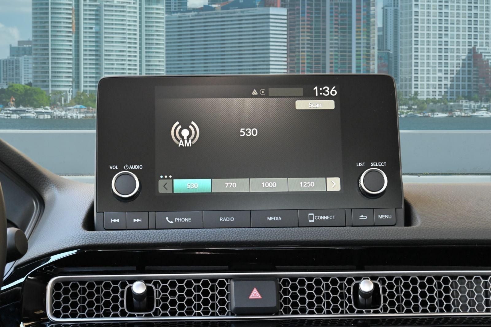 Black Artificial Leather, 4-Wheel Disc Brakes, 8 Speakers, ABS brakes, Adaptive Cruise Control: Adaptive Cruise Control (ACC) with Low-Speed Follow, Air Conditioning, Alloy wheels, AM/FM radio, Apple CarPlay/Android Auto, Auto High-beam Headlights, Automatic temperature control, Blind Spot Information (BSI) System warning, Brake assist, Bumpers: body-color, Cloth/Leatherette Seating Surfaces, Delay-off headlights, Driver door bin, Driver vanity mirror, Dual front impact airbags, Dual front side impact airbags, Electronic Stability Control, Emergency communication system: HondaLink, Exterior Parking Camera Rear, Four wheel independent suspension, Front anti-roll bar, Front Bucket Seats, Front Center Armrest, Front reading lights, Fully automatic headlights, Heated door mirrors, HondaLink, Illuminated entry, Knee airbag, Lane departure: Lane Keeping Assist System (LKAS) active, Leather Shift Knob, Low tire pressure warning, Occupant sensing airbag, Outside temperature display, Overhead airbag, Panic alarm, Passenger door bin, Passenger vanity mirror, Power door mirrors, Power steering, Power windows, Radio data system, Radio: 180-Watt Audio System, Rear anti-roll bar, Rear side impact airbag, Rear window defroster, Rear window wiper, Remote keyless entry, Security system, Speed control, Speed-sensing steering, Split folding rear seat, Steering wheel mounted audio controls, Tachometer, Telescoping steering wheel, Tilt steering wheel, Traction control, Trip computer, Wheels: 18 Gloss Black Alloy, Black Artificial Leather. 30/38 City/Highway MPG