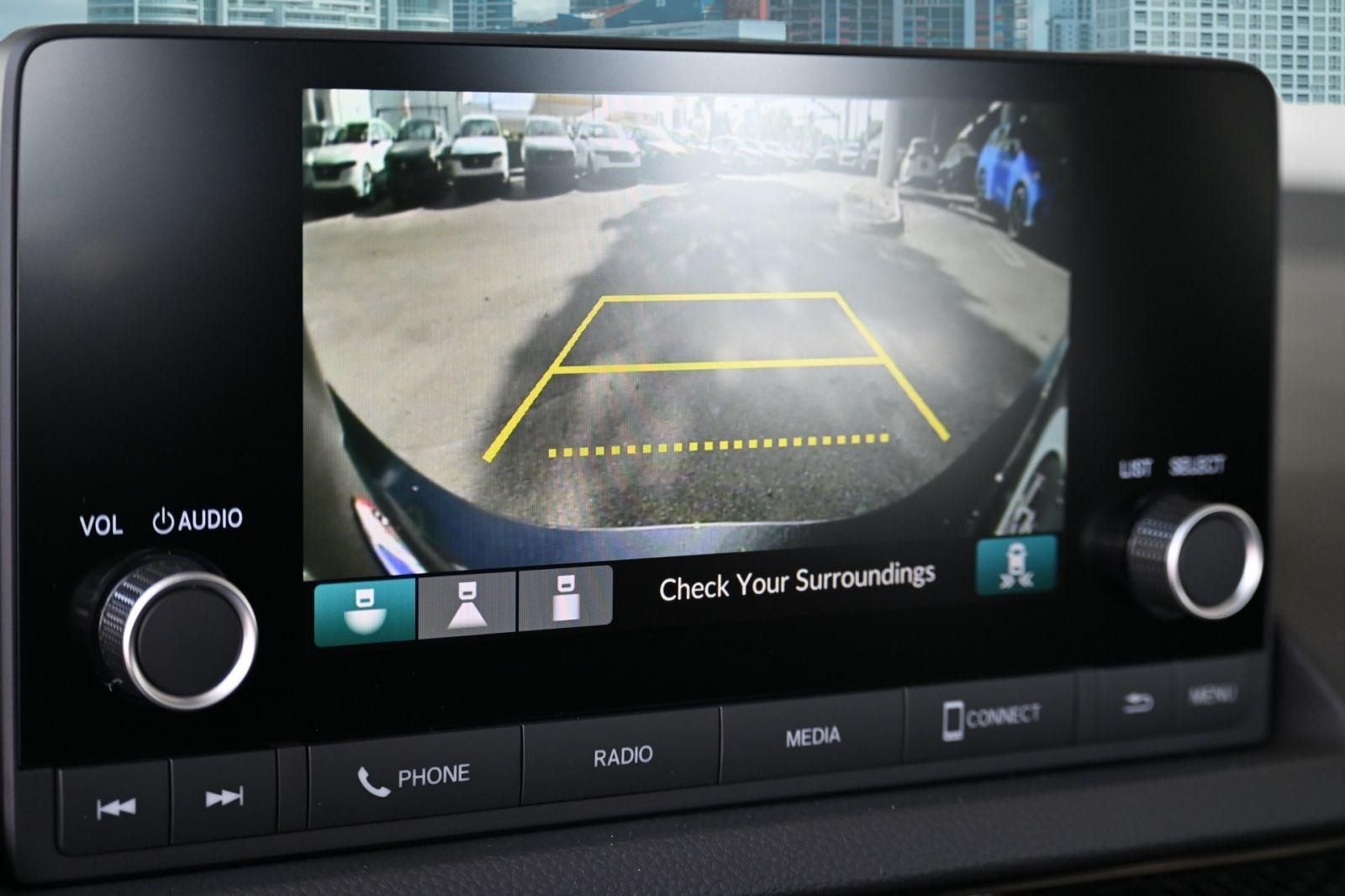 Black Artificial Leather, 4-Wheel Disc Brakes, 8 Speakers, ABS brakes, Adaptive Cruise Control: Adaptive Cruise Control (ACC) with Low-Speed Follow, Air Conditioning, Alloy wheels, AM/FM radio, Apple CarPlay/Android Auto, Auto High-beam Headlights, Automatic temperature control, Blind Spot Information (BSI) System warning, Brake assist, Bumpers: body-color, Cloth/Leatherette Seating Surfaces, Delay-off headlights, Driver door bin, Driver vanity mirror, Dual front impact airbags, Dual front side impact airbags, Electronic Stability Control, Emergency communication system: HondaLink, Exterior Parking Camera Rear, Four wheel independent suspension, Front anti-roll bar, Front Bucket Seats, Front Center Armrest, Front reading lights, Fully automatic headlights, Heated door mirrors, Illuminated entry, Knee airbag, Leather Shift Knob, Leather steering wheel, Low tire pressure warning, Occupant sensing airbag, Outside temperature display, Overhead airbag, Panic alarm, Passenger door bin, Passenger vanity mirror, Power door mirrors, Power steering, Power windows, Radio data system, Radio: 180-Watt Audio System, Rear anti-roll bar, Rear seat center armrest, Rear side impact airbag, Rear window defroster, Remote keyless entry, Security system, Speed control, Speed-sensing steering, Split folding rear seat, Steering wheel mounted audio controls, Tachometer, Telescoping steering wheel, Tilt steering wheel, Traction control, Trip computer, Wheels: 18 Gloss Black Alloy, Black Artificial Leather. 31/39 City/Highway MPG