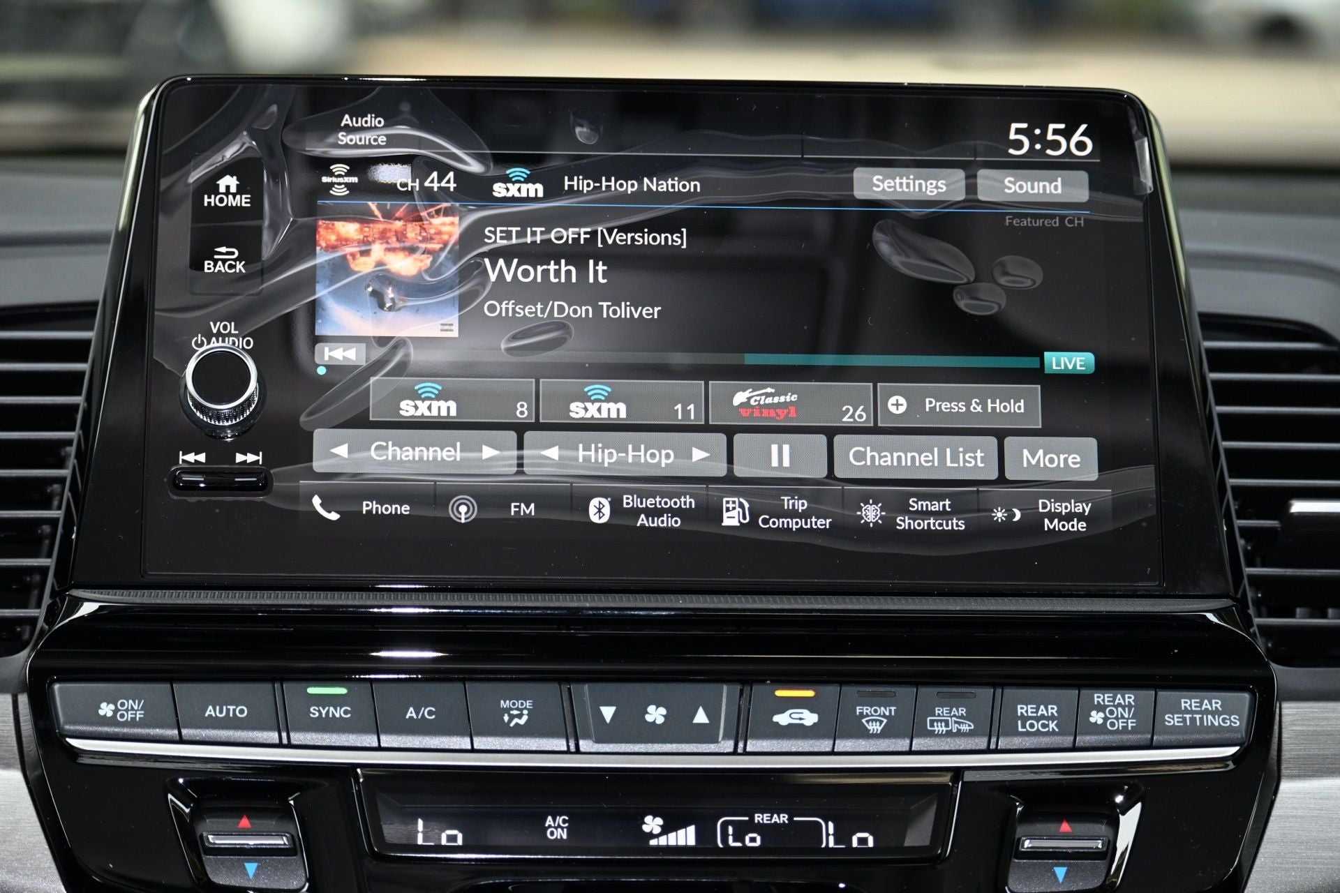- Radio: 160-Watt AM/FM/HD/SiriusXM Audio System -inc: 7 speakers including subwoofer, 9" color touchscreen display, 7" TFT Meter, Bluetooth® HandsFreeLink, Bluetooth® streaming audio, HondaLink, Speed-Sensitive Volume Compensation (SVC), Radio Data System (RDS), wireless Apple CarPlay compatibility, wireless Android Auto compatibility, 2.5-amp USB smartphone/audio interface, CabinTalk in-car PA system, illuminated steering wheel-mounted controls and fin-type roof-mounted antenna, All SiriusXM services require a subscription, sold separately by SiriusXM after the trial period, If you decide to continue service, the plan you choose will automatically renew at the then-current rates, Fees and taxes apply, See the SiriusXM customer agreement and privacy policy at www.siriusxm.com for full terms and how to cancel, which includes calling 1-866-635-2349, Available in the 48 contiguous U.S, and D.C, Some services and features are subject to device capabilities and location restrictions, All fees, content and features are subject to change, SiriusXM, Pandora and all related logos are trademarks of Sirius XM Radio Inc, and its respective subsidiaries