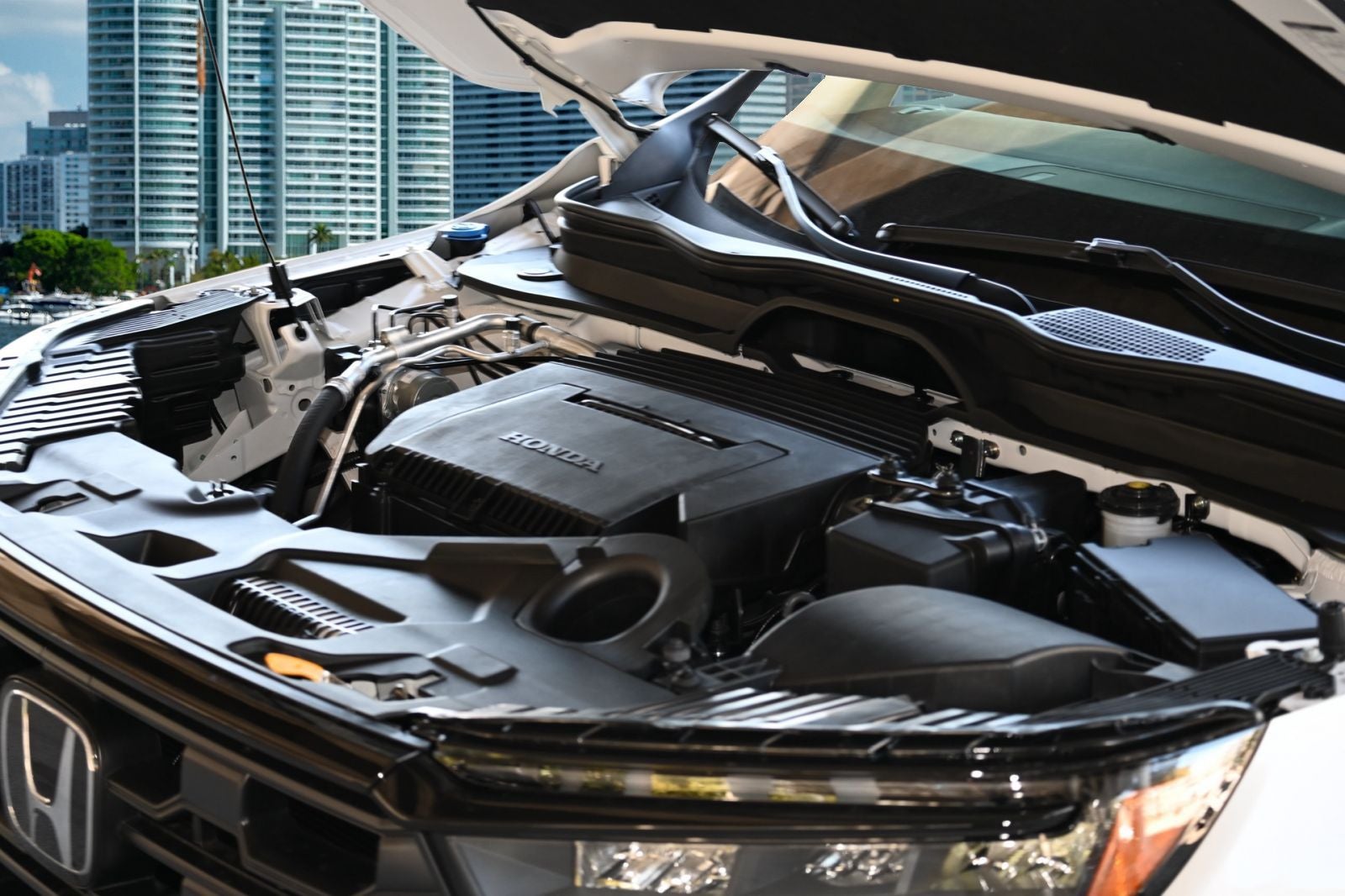 3rd row seats: split-bench, 4-Wheel Disc Brakes, 9 Speakers, ABS brakes, Adaptive Cruise Control: Adaptive Cruise Control (ACC) with Low-Speed Follow, Air Conditioning, Alloy wheels, Apple CarPlay/Android Auto, Auto High-beam Headlights, Auto-dimming Rear-View mirror, Automatic temperature control, Blind Spot Information (BSI) System warning, Brake assist, Bumpers: body-color, Compass, Delay-off headlights, Driver door bin, Driver vanity mirror, Dual front impact airbags, Dual front side impact airbags, Electronic Stability Control, Emergency communication system: HondaLink, Exterior Parking Camera Rear, Four wheel independent suspension, Front anti-roll bar, Front Bucket Seats, Front Center Armrest, Front dual zone A/C, Front fog lights, Front reading lights, Fully automatic headlights, Heated door mirrors, Heated Front Bucket Seats, Heated front seats, HondaLink, HondaLink Subscription Services, Illuminated entry, Knee airbag, Lane departure: Lane Keeping Assist System (LKAS) active, Leather-Trimmed Seat Trim with Fabric Accent, Low tire pressure warning, Memory seat, Navigation system: Google Maps, Occupant sensing airbag, Outside temperature display, Overhead airbag, Overhead console, Panic alarm, Passenger door bin, Passenger vanity mirror, Power door mirrors, Power driver seat, Power Liftgate, Power passenger seat, Power steering, Power windows, Radio data system, Radio: 245-Watt Audio System, Rear air conditioning, Rear anti-roll bar, Rear reading lights, Rear seat center armrest, Rear window defroster, Rear window wiper, Reclining 3rd row seat, Remote keyless entry, Security system, Speed control, Speed-sensing steering, Speed-Sensitive Wipers, Split folding rear seat, Spoiler, Steering wheel mounted audio controls, Tachometer, Telescoping steering wheel, Tilt steering wheel, Traction control, Trip computer, Turn signal indicator mirrors, Variably intermittent wipers, Wheels: 18 Pewter Gray Machined Face. 19/27 City/Highway MPG