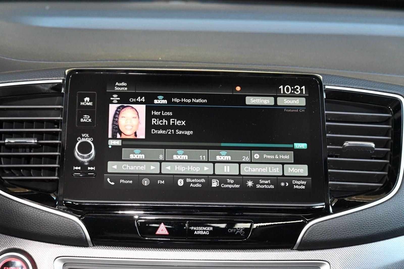 - Radio: 215-Watt Audio System w/7 Speakers -inc: subwoofer, 9" color touchscreen, Bluetooth® streaming audio, Speed-Sensitive Volume Compensation (SVC), wireless Apple CarPlay/Android Auto compatibility and 2.5A USB-A data port in front console, HondaLink, Select HondaLink features are complimentary, 36-month complimentary trials are available for security and remote packages, A subscription is required to continue HondaLink services after the trial ends