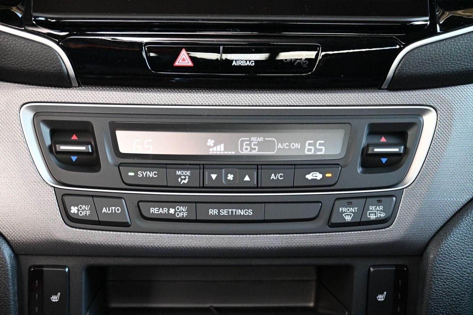 Black Leather, 4-Wheel Disc Brakes, 4.33 Axle Ratio, 7 Speakers, ABS brakes, Air Conditioning, Alloy wheels, AM/FM radio: SiriusXM, Auto-dimming Rear-View mirror, Automatic temperature control, Blind Spot Information (BSI) System warning, Bluetooth® Hands-Free Link, Brake assist, Bumpers: body-color, Compass, Delay-off headlights, Driver door bin, Driver vanity mirror, Driver's Seat Mounted Armrest, Dual front impact airbags, Dual front side impact airbags, Electronic Stability Control, Emergency communication system: HondaLink Assist, Exterior Parking Camera Rear, Four wheel independent suspension, Front anti-roll bar, Front Bucket Seats, Front dual zone A/C, Front fog lights, Front reading lights, Fully automatic headlights, Garage door transmitter: HomeLink, Heated door mirrors, Heated Front Bucket Seats, Heated front seats, Illuminated entry, Leather Seat Trim, Leather steering wheel, Low tire pressure warning, Memory seat, Occupant sensing airbag, Outside temperature display, Overhead airbag, Overhead console, Panic alarm, Passenger door bin, Passenger seat mounted armrest, Passenger vanity mirror, Power door mirrors, Power driver seat, Power moonroof, Power passenger seat, Power steering, Power windows, Radio data system, Radio: 215-Watt Audio System with 7 Speakers, Rear air conditioning, Rear anti-roll bar, Rear reading lights, Rear seat center armrest, Rear step bumper, Rear window defroster, Remote keyless entry, Security system, SiriusXM, Speed control, Speed-sensing steering, Split folding rear seat, Steering wheel mounted audio controls, Tachometer, Telescoping steering wheel, Tilt steering wheel, Traction control, Trip computer, Turn signal indicator mirrors, Variably intermittent wipers, Wheels: 18 Pewter Gray Machine-Finished Alloy, Black Leather.