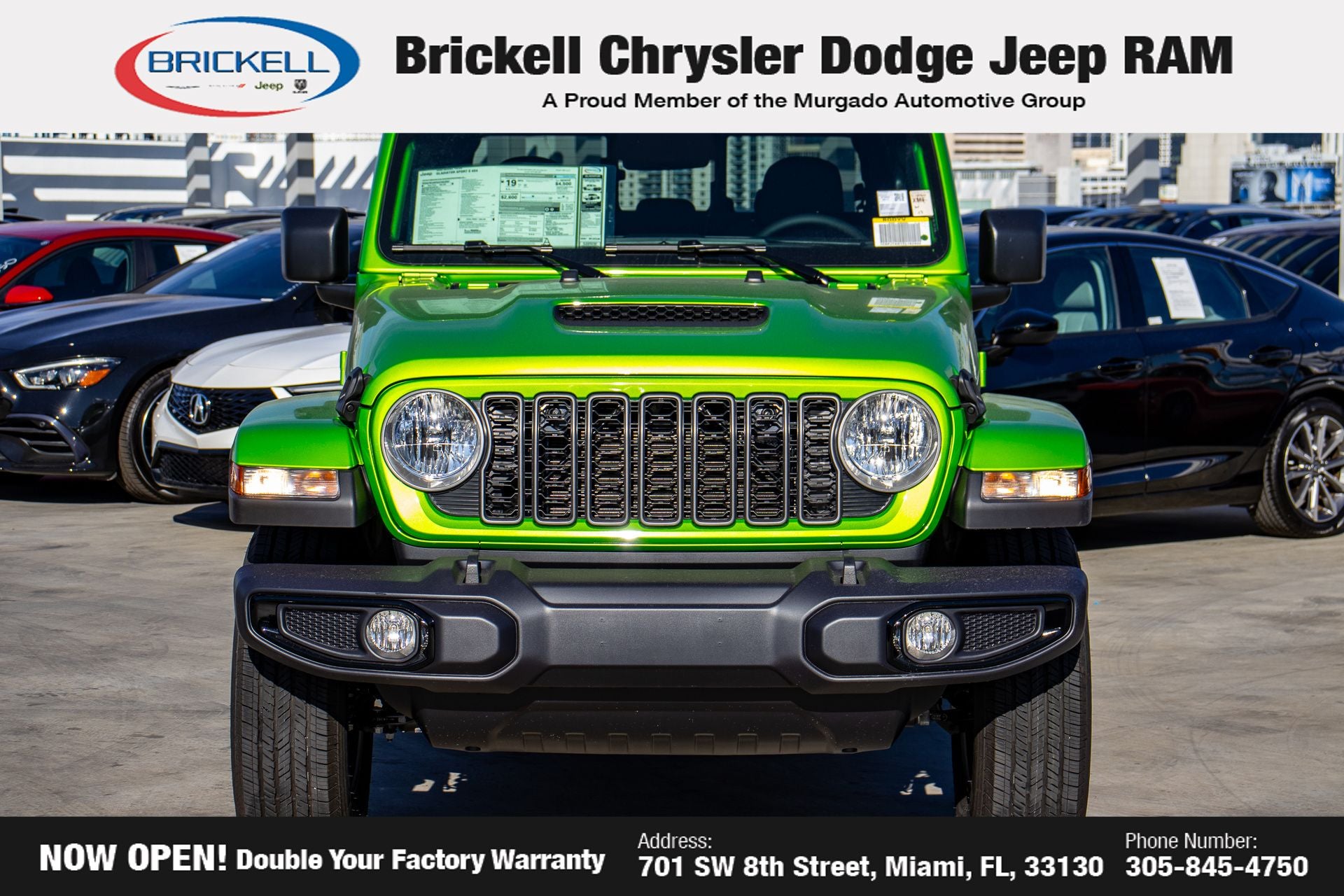 Price includes: $500 - 2026 National 2026 Military Bonus Cash . Exp. 01/04/2027 Discover Your Next Vehicle at Brickell Chrysler Dodge Jeep Ram Welcome to Brickell CDJR, where we go beyond selling cars. We double the factory powertrain warranty, giving you added peace of mind. Our dealership offers one of the largest new car inventories in the region, ensuring you find the right vehicle Prices displayed do not included our Perma-plate. Our state-of-the-art service department is the largest in the country and is open seven days a week from 7 AM to 9 PM. Visit us at 701 SW 8th St, Miami, FL 33130, or call 305-777-2800 to learn more and schedule a test drive. The displayed price includes an incentive for financing with Brickell CDJR Finance Company. Outside financing and bank drafts are not accepted. All pre-owned vehicle exports are subject to an export fee. Prices apply only to customers who live, work, or worship in Broward, Miami-Dade, Palm Beach, Monroe, Collier, Hendry, Lee, Glades, Martin, St. Lucie, Okeechobee, Manatee, Hillsborough, Osceola, or Orange County. Customers outside these counties will pay an additional $ Taxes, title, registration, and dealer fees apply. Factory MSRP: $48,230 Mojito 2026 Jeep Gladiator Sport S 4WD 8-Speed Automatic 3.6L V6 24V VVT