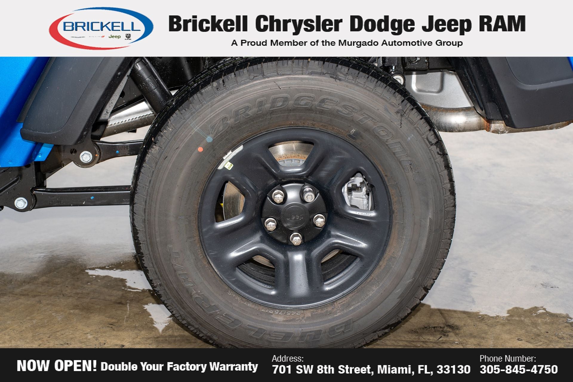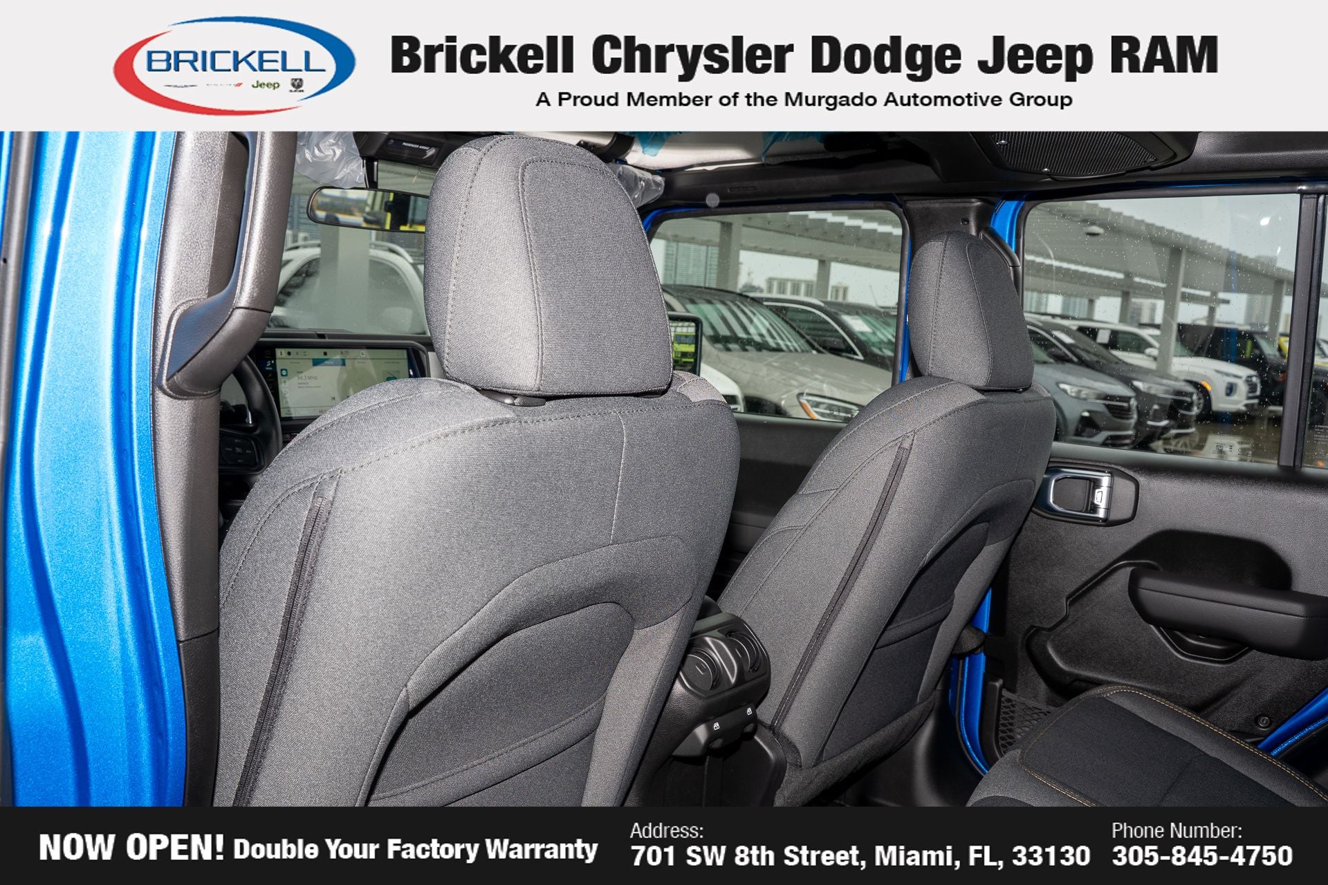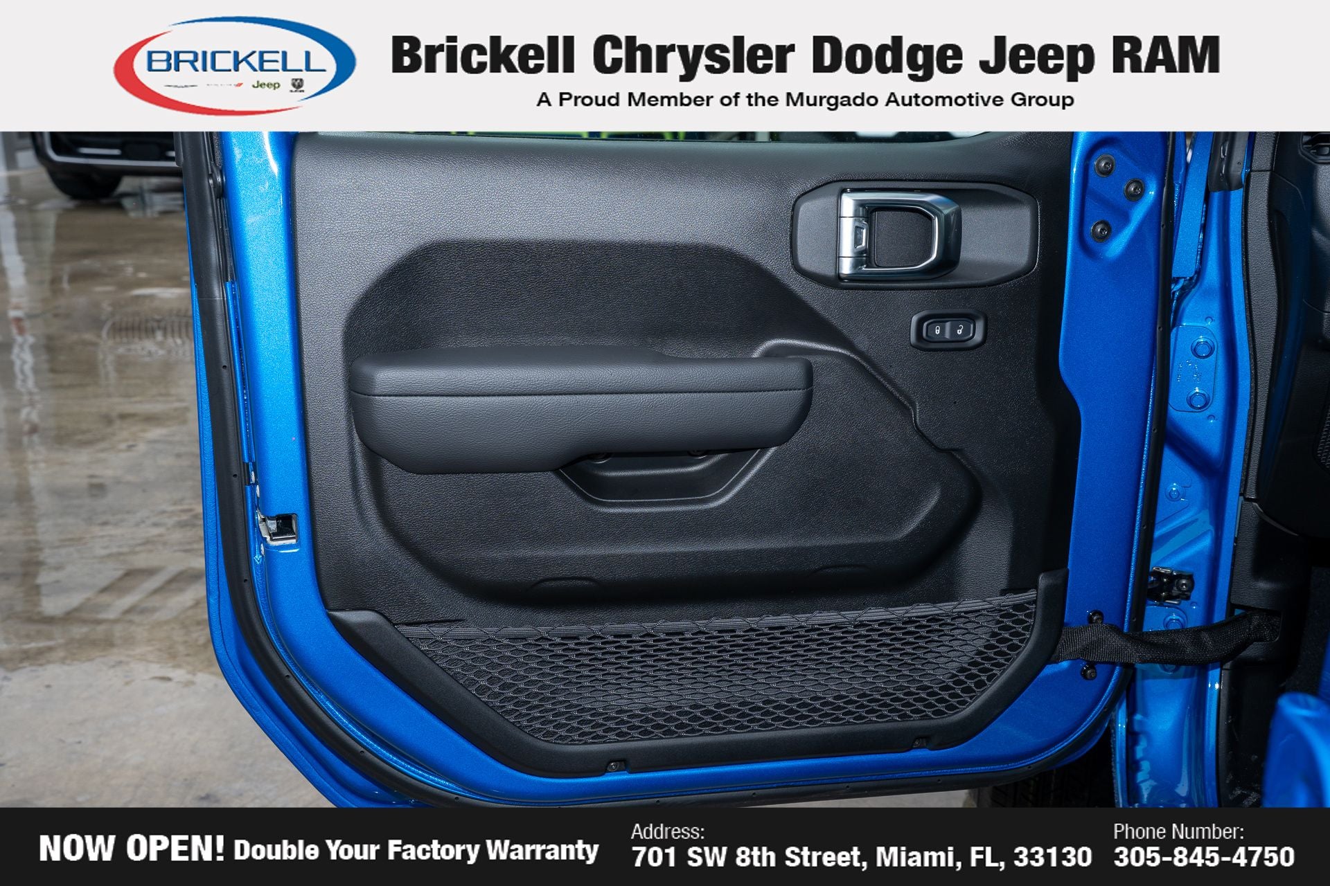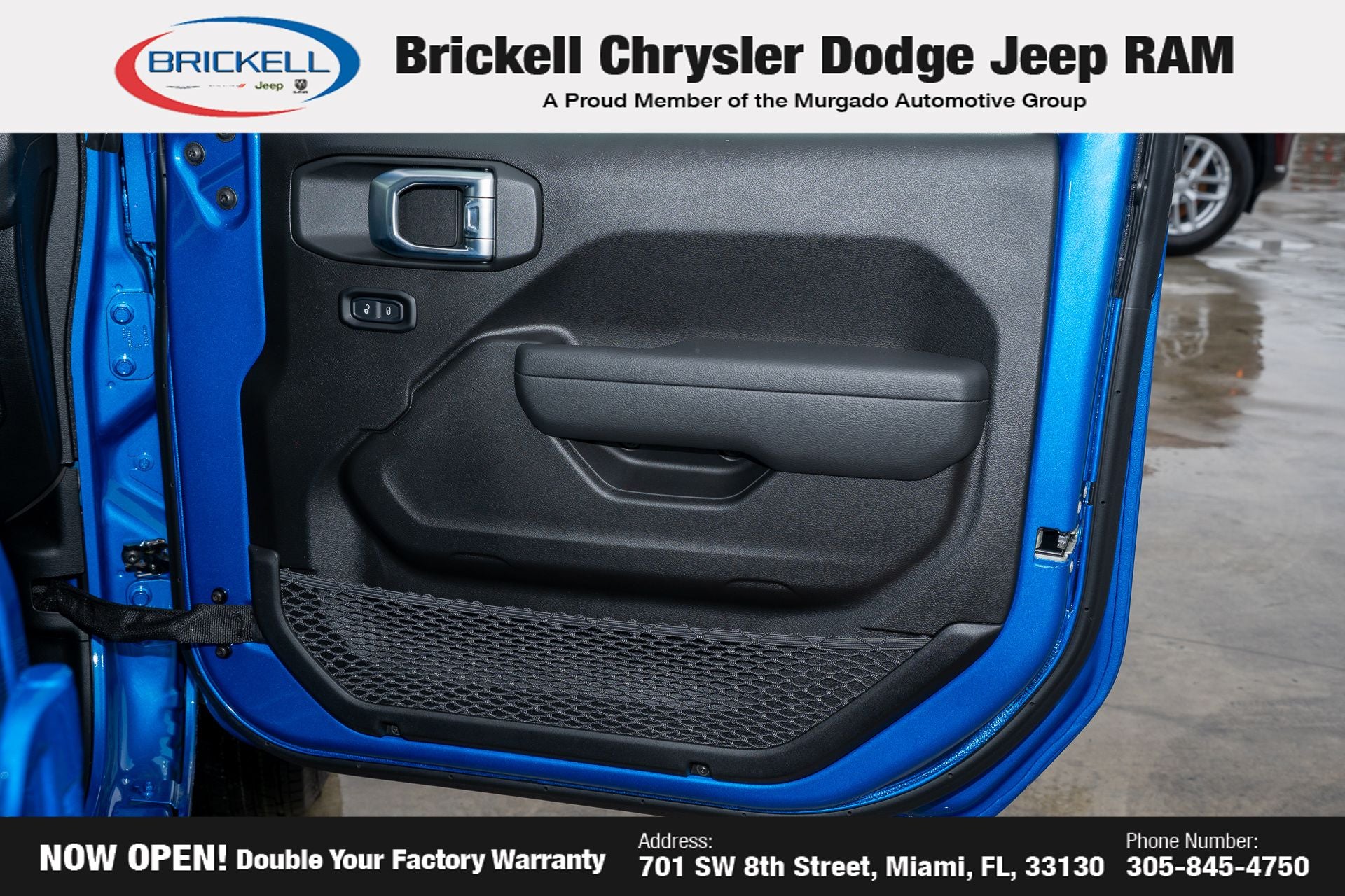 Price includes: $1000 - 2026 National Retail Bonus Cash . Exp. 04/30/2026 Discover Your Next Vehicle at Brickell Chrysler Dodge Jeep Ram Welcome to Brickell CDJR, where we go beyond selling cars. We double the factory powertrain warranty, giving you added peace of mind. Our dealership offers one of the largest new car inventories in the region, ensuring you find the right vehicle Prices displayed do not included our Perma-plate. Our state-of-the-art service department is the largest in the country and is open seven days a week from 7 AM to 9 PM. Visit us at 701 SW 8th St, Miami, FL 33130, or call 305-777-2800 to learn more and schedule a test drive. The displayed price includes an incentive for financing with Brickell CDJR Finance Company. Outside financing and bank drafts are not accepted. All pre-owned vehicle exports are subject to an export fee. Prices apply only to customers who live, work, or worship in Broward, Miami-Dade, Palm Beach, Monroe, Collier, Hendry, Lee, Glades, Martin, St. Lucie, Okeechobee, Manatee, Hillsborough, Osceola, or Orange County. Customers outside these counties will pay an additional $ Taxes, title, registration, and dealer fees apply. Factory MSRP: $43,445 Hydro Blue Pearlcoat 2026 Jeep Gladiator Sport 4WD 8-Speed Automatic 3.6L V6 24V VVT