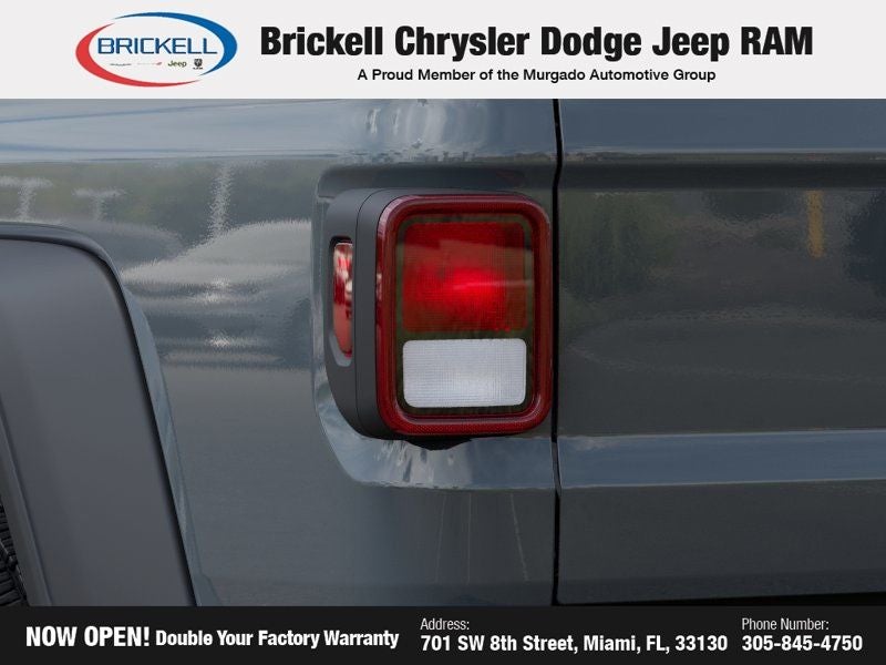 Price includes: $500 - 2026 National 2026 Military Bonus Cash . Exp. 01/04/2027 Discover Your Next Vehicle at Brickell Chrysler Dodge Jeep Ram Welcome to Brickell CDJR, where we go beyond selling cars. We double the factory powertrain warranty, giving you added peace of mind. Our dealership offers one of the largest new car inventories in the region, ensuring you find the right vehicle Prices displayed do not included our Perma-plate. Our state-of-the-art service department is the largest in the country and is open seven days a week from 7 AM to 9 PM. Visit us at 701 SW 8th St, Miami, FL 33130, or call 305-777-2800 to learn more and schedule a test drive. The displayed price includes an incentive for financing with Brickell CDJR Finance Company. Outside financing and bank drafts are not accepted. All pre-owned vehicle exports are subject to an export fee. Prices apply only to customers who live, work, or worship in Broward, Miami-Dade, Palm Beach, Monroe, Collier, Hendry, Lee, Glades, Martin, St. Lucie, Okeechobee, Manatee, Hillsborough, Osceola, or Orange County. Customers outside these counties will pay an additional $ Taxes, title, registration, and dealer fees apply. Factory MSRP: $44,040 anvil clearcoat 2026 Jeep Gladiator Sport 4WD 8-Speed Automatic 3.6L V6 24V VVT