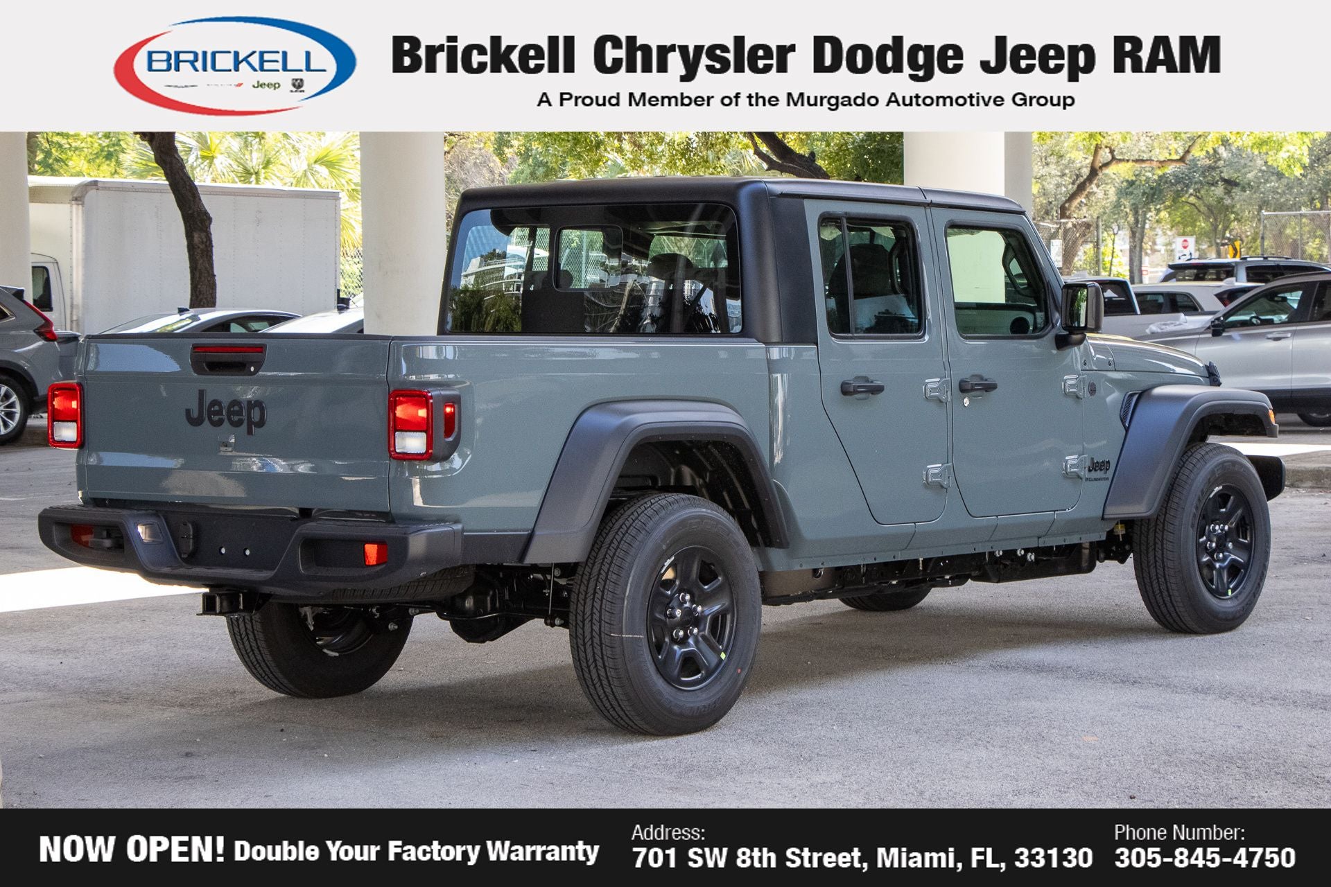 Price includes: $500 - 2026 National 2026 Military Bonus Cash . Exp. 01/04/2027 Discover Your Next Vehicle at Brickell Chrysler Dodge Jeep Ram Welcome to Brickell CDJR, where we go beyond selling cars. We double the factory powertrain warranty, giving you added peace of mind. Our dealership offers one of the largest new car inventories in the region, ensuring you find the right vehicle Prices displayed do not included our Perma-plate. Our state-of-the-art service department is the largest in the country and is open seven days a week from 7 AM to 9 PM. Visit us at 701 SW 8th St, Miami, FL 33130, or call 305-777-2800 to learn more and schedule a test drive. The displayed price includes an incentive for financing with Brickell CDJR Finance Company. Outside financing and bank drafts are not accepted. All pre-owned vehicle exports are subject to an export fee. Prices apply only to customers who live, work, or worship in Broward, Miami-Dade, Palm Beach, Monroe, Collier, Hendry, Lee, Glades, Martin, St. Lucie, Okeechobee, Manatee, Hillsborough, Osceola, or Orange County. Customers outside these counties will pay an additional $ Taxes, title, registration, and dealer fees apply. Factory MSRP: $45,035 Anvil Clearcoat 2026 Jeep Gladiator Sport 4WD 8-Speed Automatic 3.6L V6 24V VVT