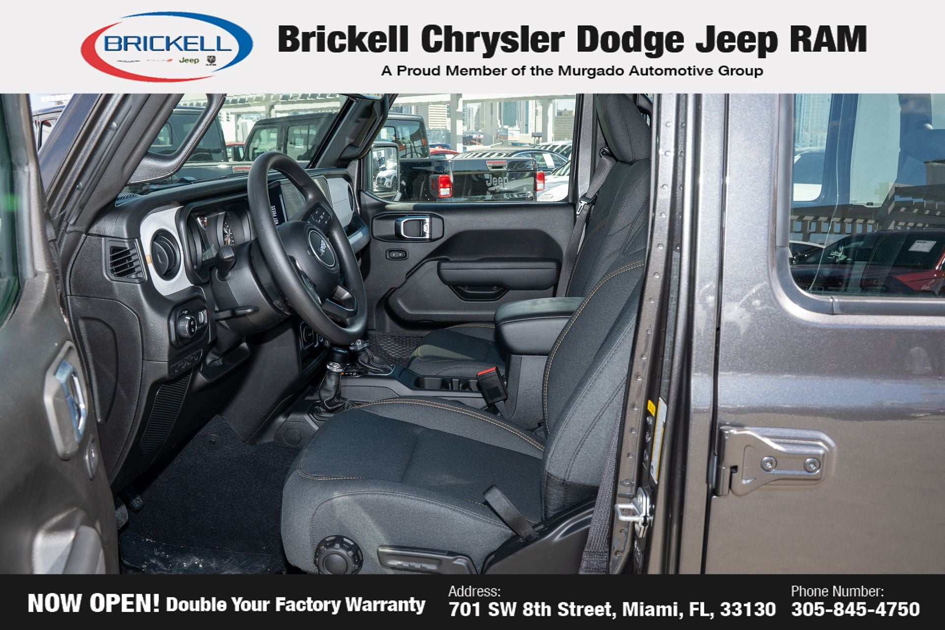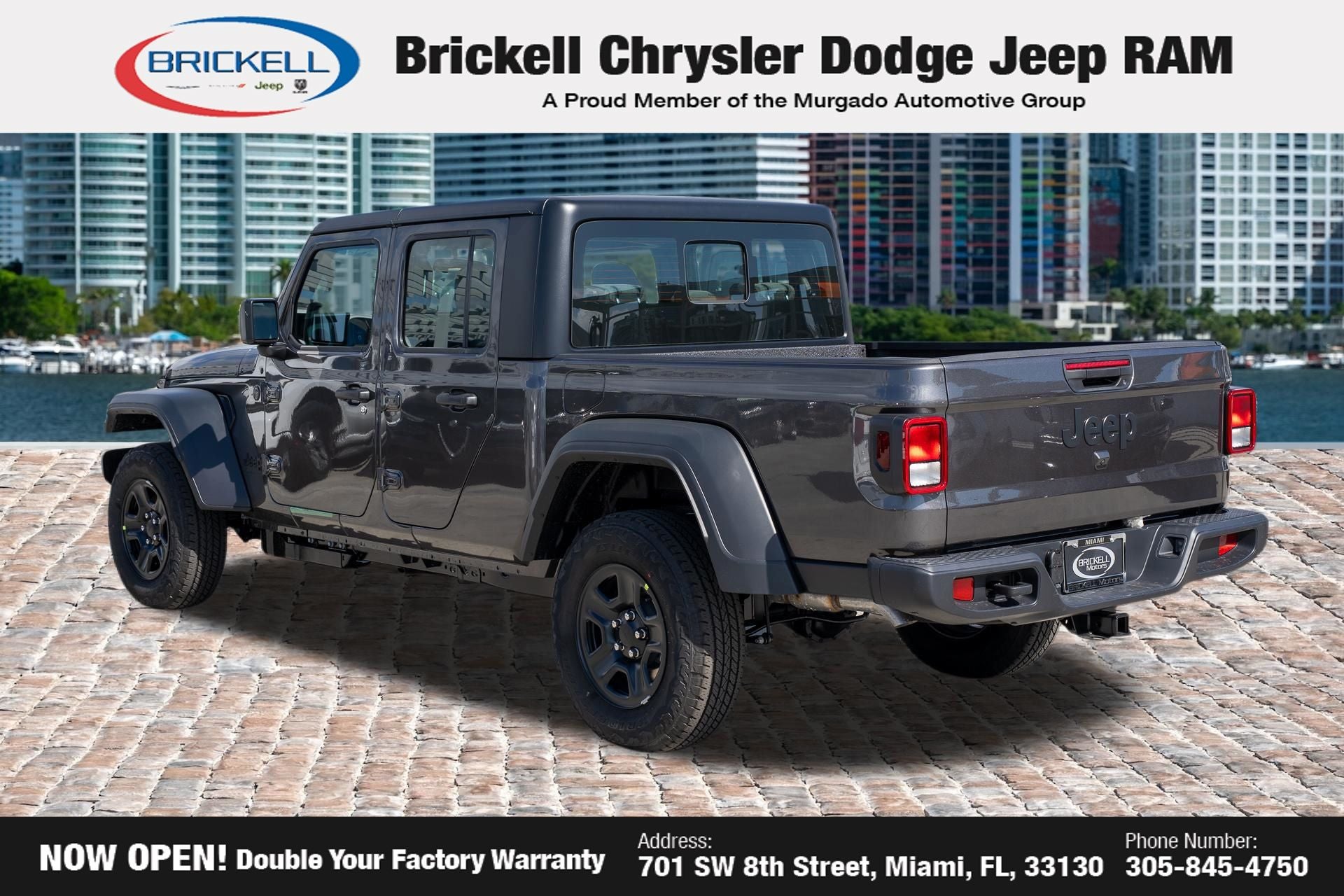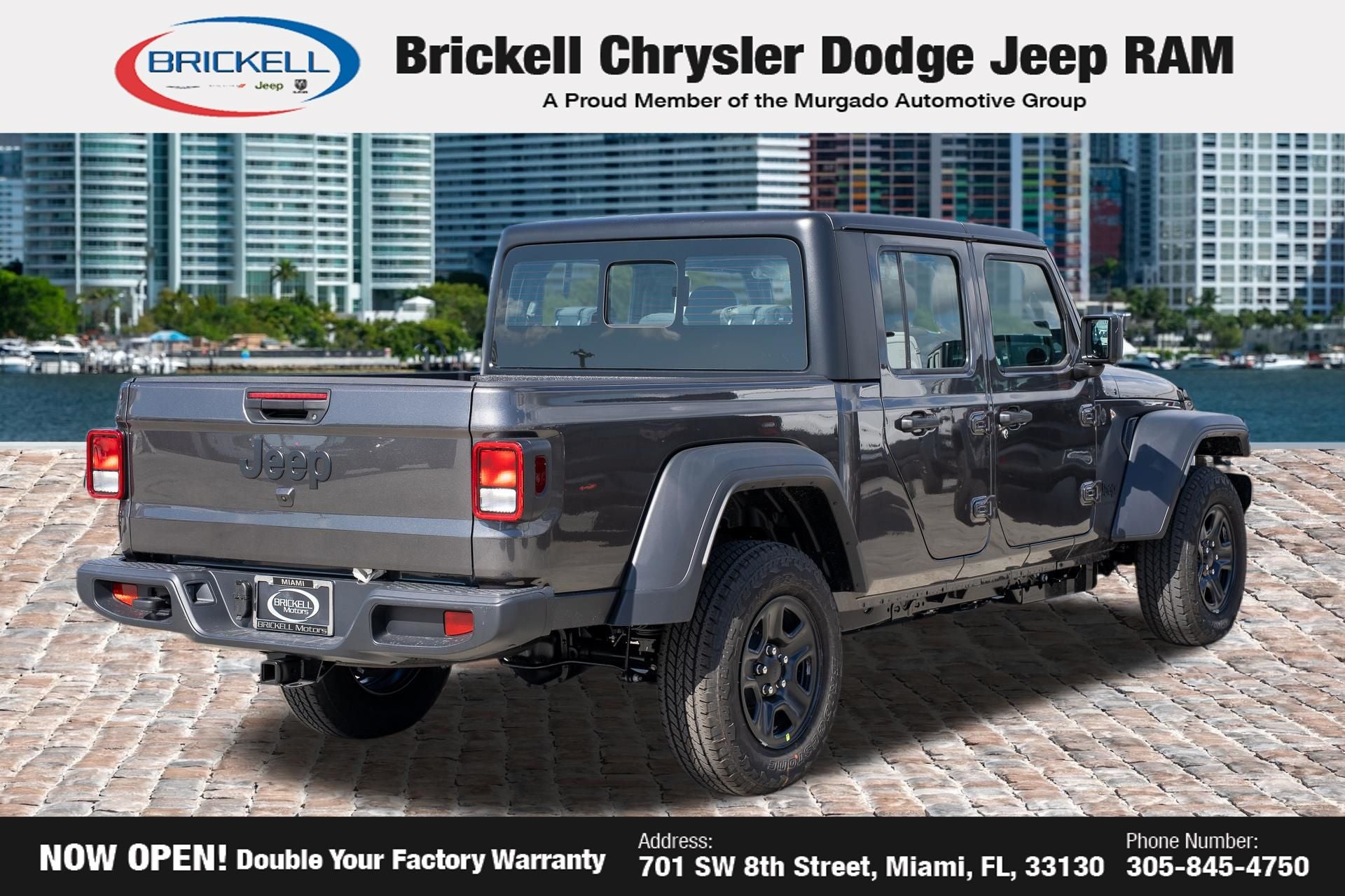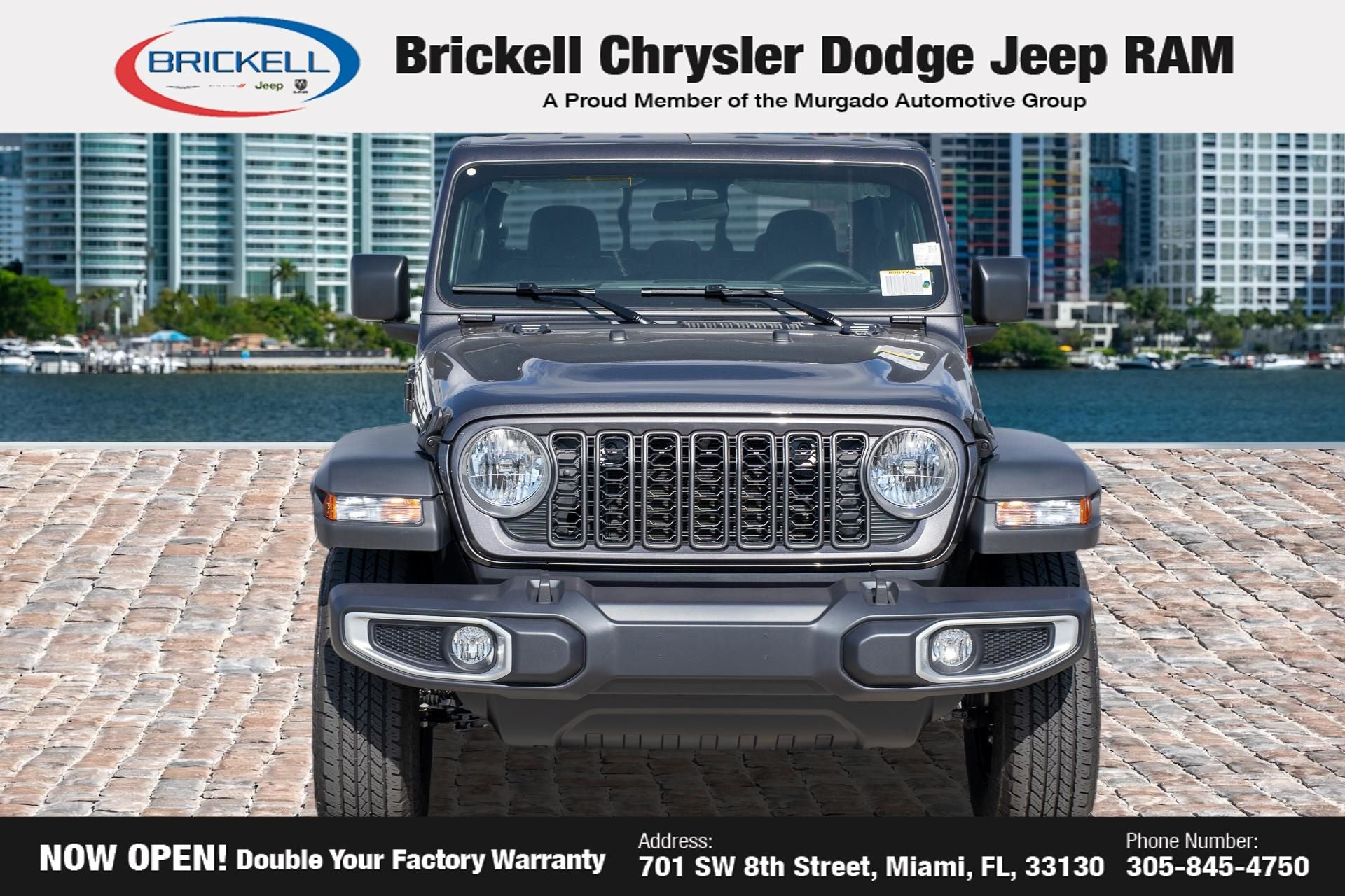 Price includes: $1000 - 2026 National Retail Bonus Cash . Exp. 04/30/2026 Discover Your Next Vehicle at Brickell Chrysler Dodge Jeep Ram Welcome to Brickell CDJR, where we go beyond selling cars. We double the factory powertrain warranty, giving you added peace of mind. Our dealership offers one of the largest new car inventories in the region, ensuring you find the right vehicle Prices displayed do not included our Perma-plate. Our state-of-the-art service department is the largest in the country and is open seven days a week from 7 AM to 9 PM. Visit us at 701 SW 8th St, Miami, FL 33130, or call 305-777-2800 to learn more and schedule a test drive. The displayed price includes an incentive for financing with Brickell CDJR Finance Company. Outside financing and bank drafts are not accepted. All pre-owned vehicle exports are subject to an export fee. Prices apply only to customers who live, work, or worship in Broward, Miami-Dade, Palm Beach, Monroe, Collier, Hendry, Lee, Glades, Martin, St. Lucie, Okeechobee, Manatee, Hillsborough, Osceola, or Orange County. Customers outside these counties will pay an additional $ Taxes, title, registration, and dealer fees apply. Factory MSRP: $46,035 Granite Crystal Metallic Clearcoat 2026 Jeep Gladiator Sport 4WD 8-Speed Automatic 3.6L V6 24V VVT