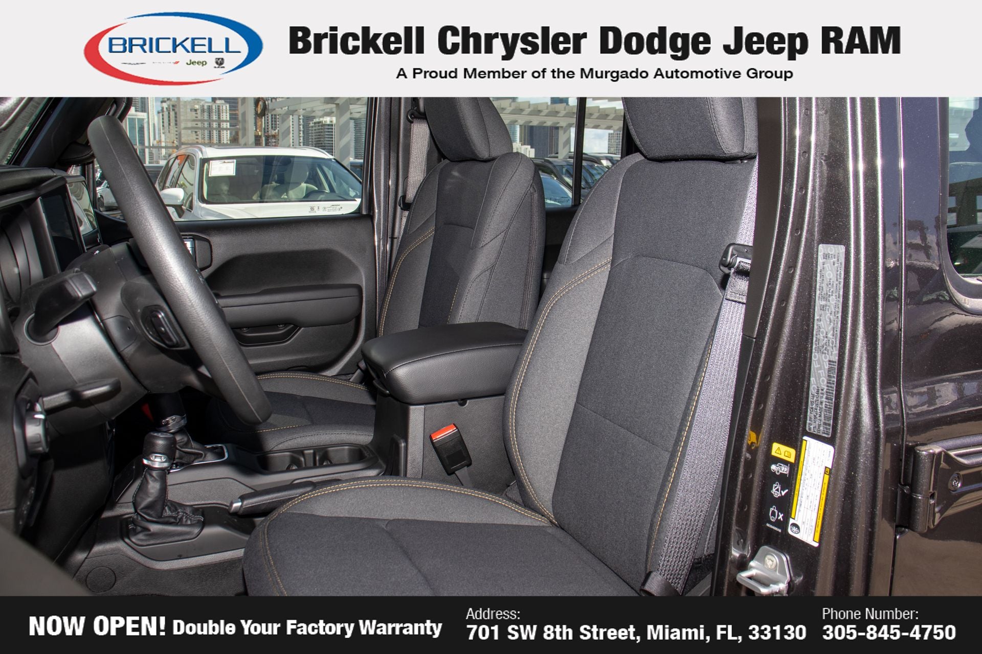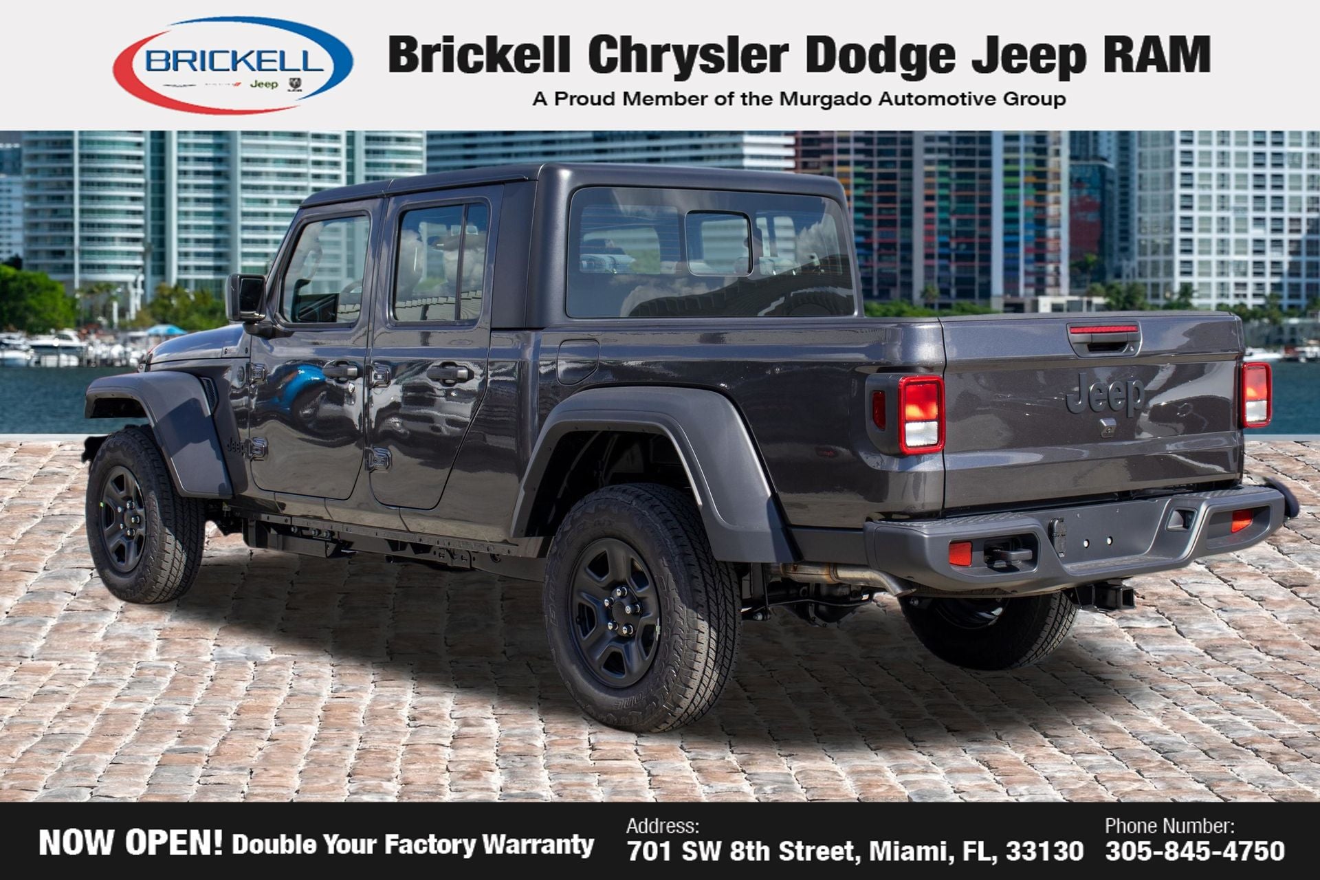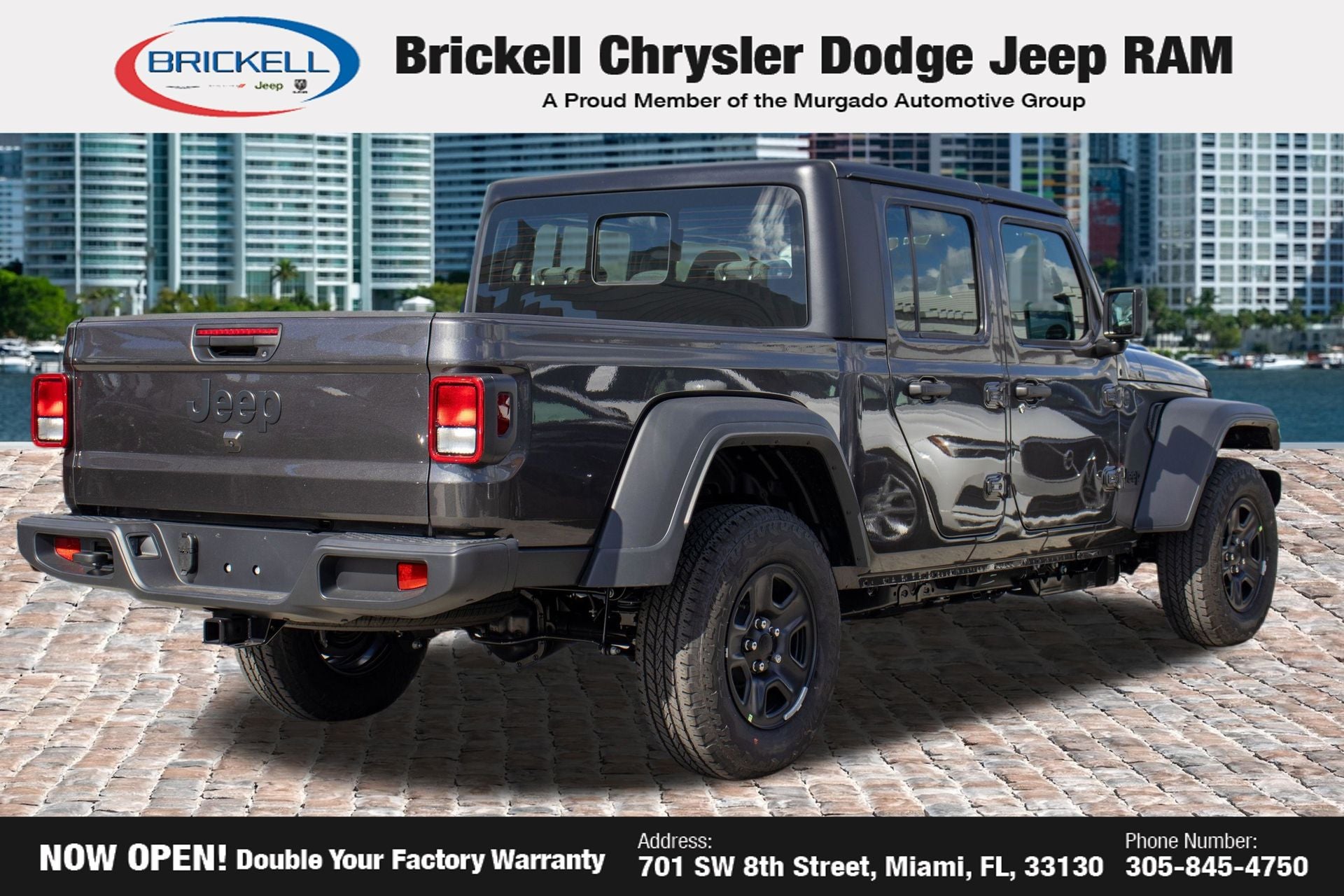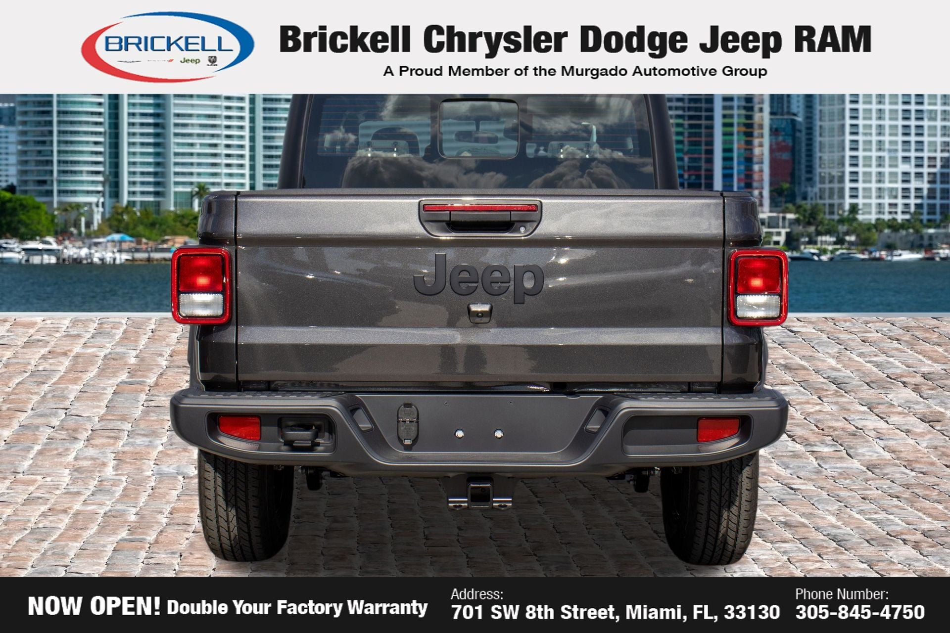 Price includes: $1000 - 2026 National Retail Bonus Cash . Exp. 04/30/2026 Discover Your Next Vehicle at Brickell Chrysler Dodge Jeep Ram Welcome to Brickell CDJR, where we go beyond selling cars. We double the factory powertrain warranty, giving you added peace of mind. Our dealership offers one of the largest new car inventories in the region, ensuring you find the right vehicle Prices displayed do not included our Perma-plate. Our state-of-the-art service department is the largest in the country and is open seven days a week from 7 AM to 9 PM. Visit us at 701 SW 8th St, Miami, FL 33130, or call 305-777-2800 to learn more and schedule a test drive. The displayed price includes an incentive for financing with Brickell CDJR Finance Company. Outside financing and bank drafts are not accepted. All pre-owned vehicle exports are subject to an export fee. Prices apply only to customers who live, work, or worship in Broward, Miami-Dade, Palm Beach, Monroe, Collier, Hendry, Lee, Glades, Martin, St. Lucie, Okeechobee, Manatee, Hillsborough, Osceola, or Orange County. Customers outside these counties will pay an additional $ Taxes, title, registration, and dealer fees apply. Factory MSRP: $46,035 Granite Crystal Metallic Clearcoat 2026 Jeep Gladiator Sport 4WD 8-Speed Automatic 3.6L V6 24V VVT