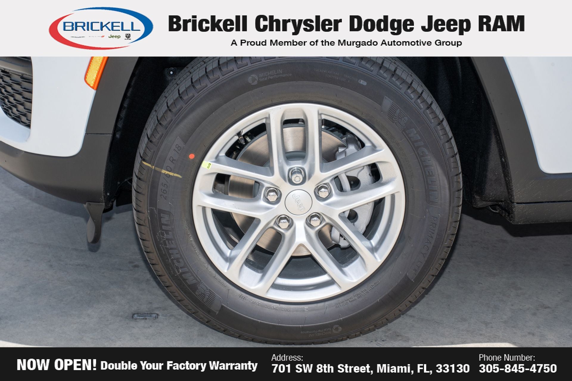 Price includes: $1500 - 2026 National Retail Bonus Cash . Exp. 04/30/2026 Discover Your Next Vehicle at Brickell Chrysler Dodge Jeep Ram Welcome to Brickell CDJR, where we go beyond selling cars. We double the factory powertrain warranty, giving you added peace of mind. Our dealership offers one of the largest new car inventories in the region, ensuring you find the right vehicle Prices displayed do not included our Perma-plate. Our state-of-the-art service department is the largest in the country and is open seven days a week from 7 AM to 9 PM. Visit us at 701 SW 8th St, Miami, FL 33130, or call 305-777-2800 to learn more and schedule a test drive. The displayed price includes an incentive for financing with Brickell CDJR Finance Company. Outside financing and bank drafts are not accepted. All pre-owned vehicle exports are subject to an export fee. Prices apply only to customers who live, work, or worship in Broward, Miami-Dade, Palm Beach, Monroe, Collier, Hendry, Lee, Glades, Martin, St. Lucie, Okeechobee, Manatee, Hillsborough, Osceola, or Orange County. Customers outside these counties will pay an additional $ Taxes, title, registration, and dealer fees apply. Factory MSRP: $40,915 Bright White Clearcoat 2026 Jeep Grand Cherokee Laredo RWD 8-Speed Automatic 3.6L V6 24V VVT