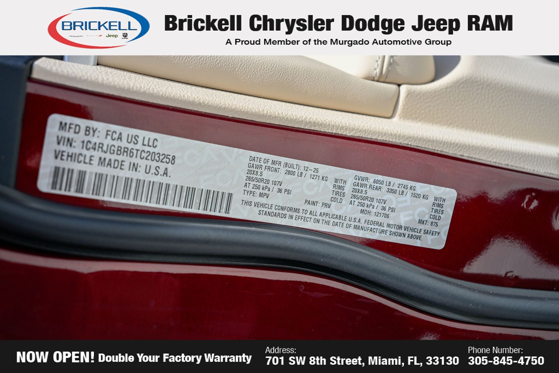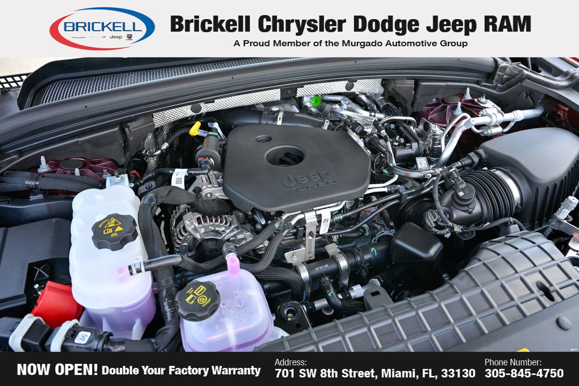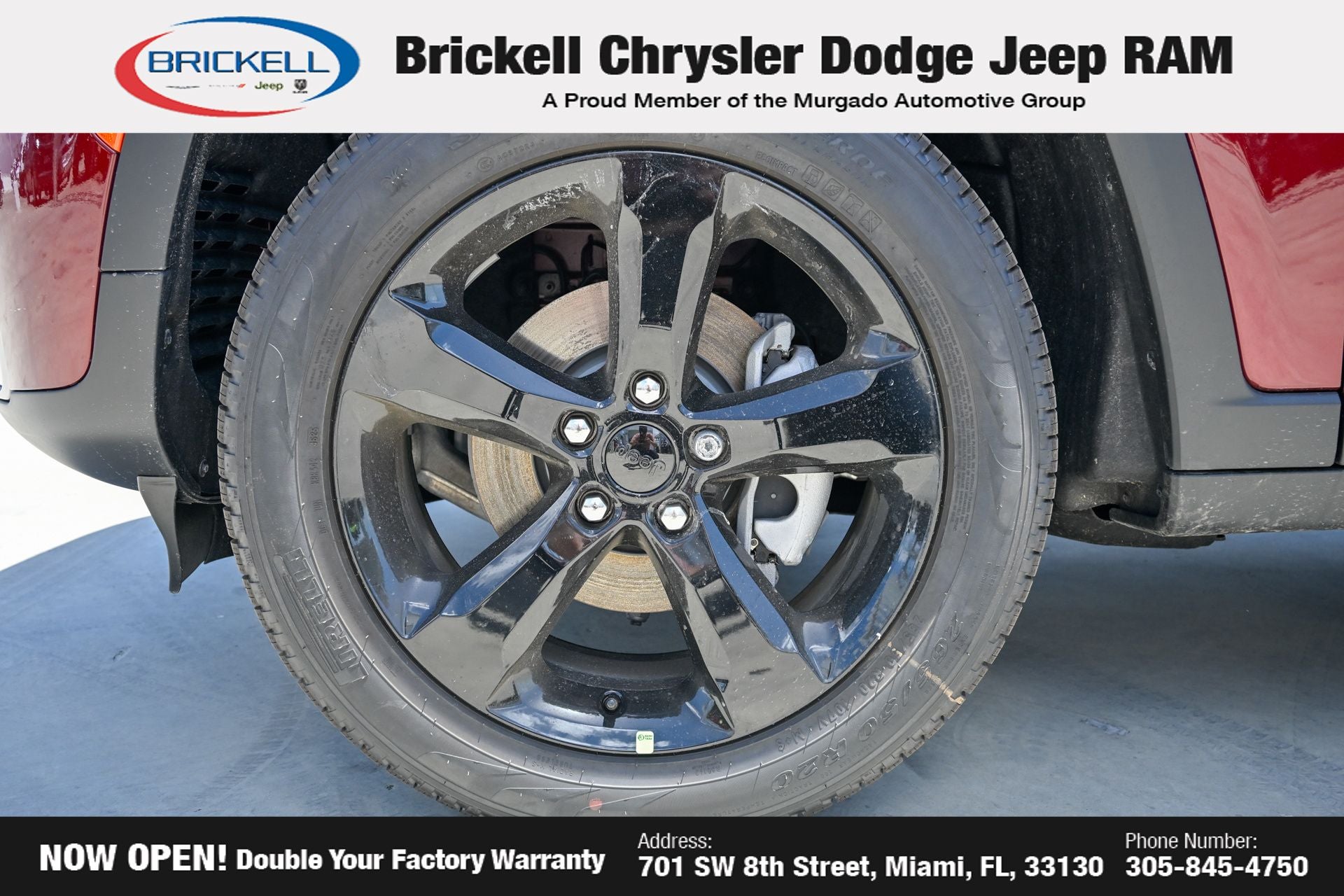 Price includes: $1500 - 2026 National Retail Bonus Cash . Exp. 04/30/2026 Discover Your Next Vehicle at Brickell Chrysler Dodge Jeep Ram Welcome to Brickell CDJR, where we go beyond selling cars. We double the factory powertrain warranty, giving you added peace of mind. Our dealership offers one of the largest new car inventories in the region, ensuring you find the right vehicle Prices displayed do not included our Perma-plate. Our state-of-the-art service department is the largest in the country and is open seven days a week from 7 AM to 9 PM. Visit us at 701 SW 8th St, Miami, FL 33130, or call 305-777-2800 to learn more and schedule a test drive. The displayed price includes an incentive for financing with Brickell CDJR Finance Company. Outside financing and bank drafts are not accepted. All pre-owned vehicle exports are subject to an export fee. Prices apply only to customers who live, work, or worship in Broward, Miami-Dade, Palm Beach, Monroe, Collier, Hendry, Lee, Glades, Martin, St. Lucie, Okeechobee, Manatee, Hillsborough, Osceola, or Orange County. Customers outside these counties will pay an additional $ Taxes, title, registration, and dealer fees apply. Factory MSRP: $47,985 Velvet Red Pearlcoat 2026 Jeep Grand Cherokee Limited RWD 8-Speed Automatic 2.0L I4 PDI Turbocharged DOHC 16V LEV3-SULEV30 324hp
