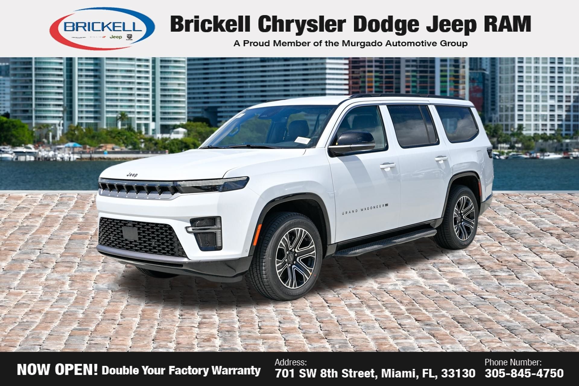 Price includes: $1000 - 2026 National Stellantis Loyalty Bonus Cash . Exp. 04/30/2026 $500 - 2026 National 2026 Military Bonus Cash . Exp. 01/04/2027 Discover Your Next Vehicle at Brickell Chrysler Dodge Jeep Ram Welcome to Brickell CDJR, where we go beyond selling cars. We double the factory powertrain warranty, giving you added peace of mind. Our dealership offers one of the largest new car inventories in the region, ensuring you find the right vehicle Prices displayed do not included our Perma-plate. Our state-of-the-art service department is the largest in the country and is open seven days a week from 7 AM to 9 PM. Visit us at 701 SW 8th St, Miami, FL 33130, or call 305-777-2800 to learn more and schedule a test drive. The displayed price includes an incentive for financing with Brickell CDJR Finance Company. Outside financing and bank drafts are not accepted. All pre-owned vehicle exports are subject to an export fee. Prices apply only to customers who live, work, or worship in Broward, Miami-Dade, Palm Beach, Monroe, Collier, Hendry, Lee, Glades, Martin, St. Lucie, Okeechobee, Manatee, Hillsborough, Osceola, or Orange County. Customers outside these counties will pay an additional $ Taxes, title, registration, and dealer fees apply. Factory MSRP: $65,995 Bright White Clearcoat 2026 Jeep Grand Wagoneer RWD 8-Speed Automatic 3.0L I6