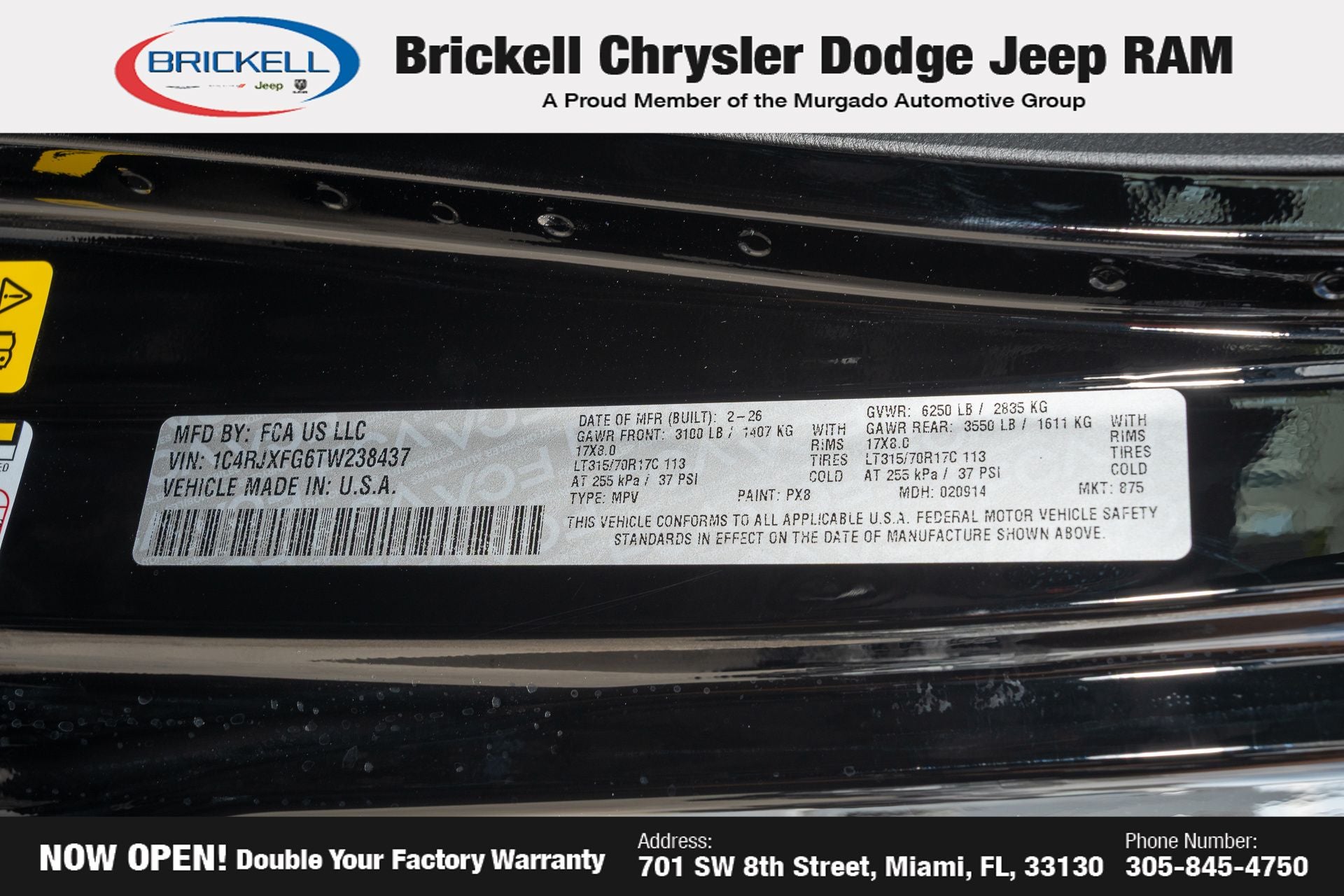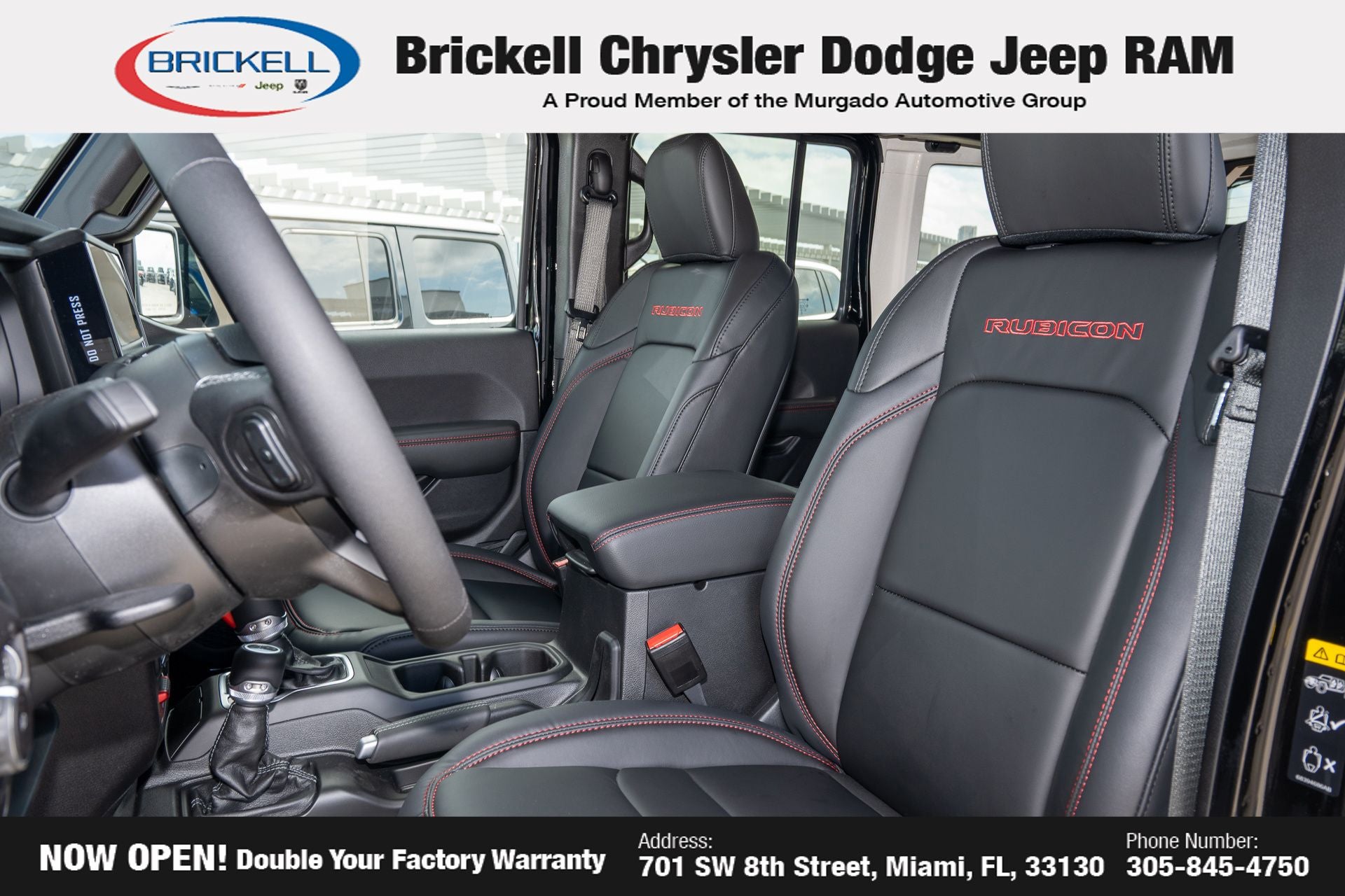 Price includes: $500 - 2026 National 2026 Military Bonus Cash . Exp. 01/04/2027 Discover Your Next Vehicle at Brickell Chrysler Dodge Jeep Ram Welcome to Brickell CDJR, where we go beyond selling cars. We double the factory powertrain warranty, giving you added peace of mind. Our dealership offers one of the largest new car inventories in the region, ensuring you find the right vehicle Prices displayed do not included our Perma-plate. Our state-of-the-art service department is the largest in the country and is open seven days a week from 7 AM to 9 PM. Visit us at 701 SW 8th St, Miami, FL 33130, or call 305-777-2800 to learn more and schedule a test drive. The displayed price includes an incentive for financing with Brickell CDJR Finance Company. Outside financing and bank drafts are not accepted. All pre-owned vehicle exports are subject to an export fee. Prices apply only to customers who live, work, or worship in Broward, Miami-Dade, Palm Beach, Monroe, Collier, Hendry, Lee, Glades, Martin, St. Lucie, Okeechobee, Manatee, Hillsborough, Osceola, or Orange County. Customers outside these counties will pay an additional $ Taxes, title, registration, and dealer fees apply. Factory MSRP: $69,165 Black Clearcoat 2026 Jeep Wrangler Rubicon X 4WD 8-Speed Automatic 3.6L V6 24V VVT