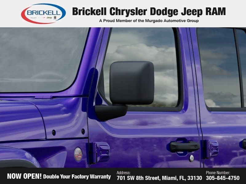 Price includes: $1000 - 2026 National Retail Bonus Cash . Exp. 04/30/2026 Discover Your Next Vehicle at Brickell Chrysler Dodge Jeep Ram Welcome to Brickell CDJR, where we go beyond selling cars. We double the factory powertrain warranty, giving you added peace of mind. Our dealership offers one of the largest new car inventories in the region, ensuring you find the right vehicle Prices displayed do not included our Perma-plate. Our state-of-the-art service department is the largest in the country and is open seven days a week from 7 AM to 9 PM. Visit us at 701 SW 8th St, Miami, FL 33130, or call 305-777-2800 to learn more and schedule a test drive. The displayed price includes an incentive for financing with Brickell CDJR Finance Company. Outside financing and bank drafts are not accepted. All pre-owned vehicle exports are subject to an export fee. Prices apply only to customers who live, work, or worship in Broward, Miami-Dade, Palm Beach, Monroe, Collier, Hendry, Lee, Glades, Martin, St. Lucie, Okeechobee, Manatee, Hillsborough, Osceola, or Orange County. Customers outside these counties will pay an additional $ Taxes, title, registration, and dealer fees apply. Factory MSRP: $68,510 Reign 2026 Jeep Wrangler Rubicon X 4WD 8-Speed Automatic 3.6L V6 24V VVT