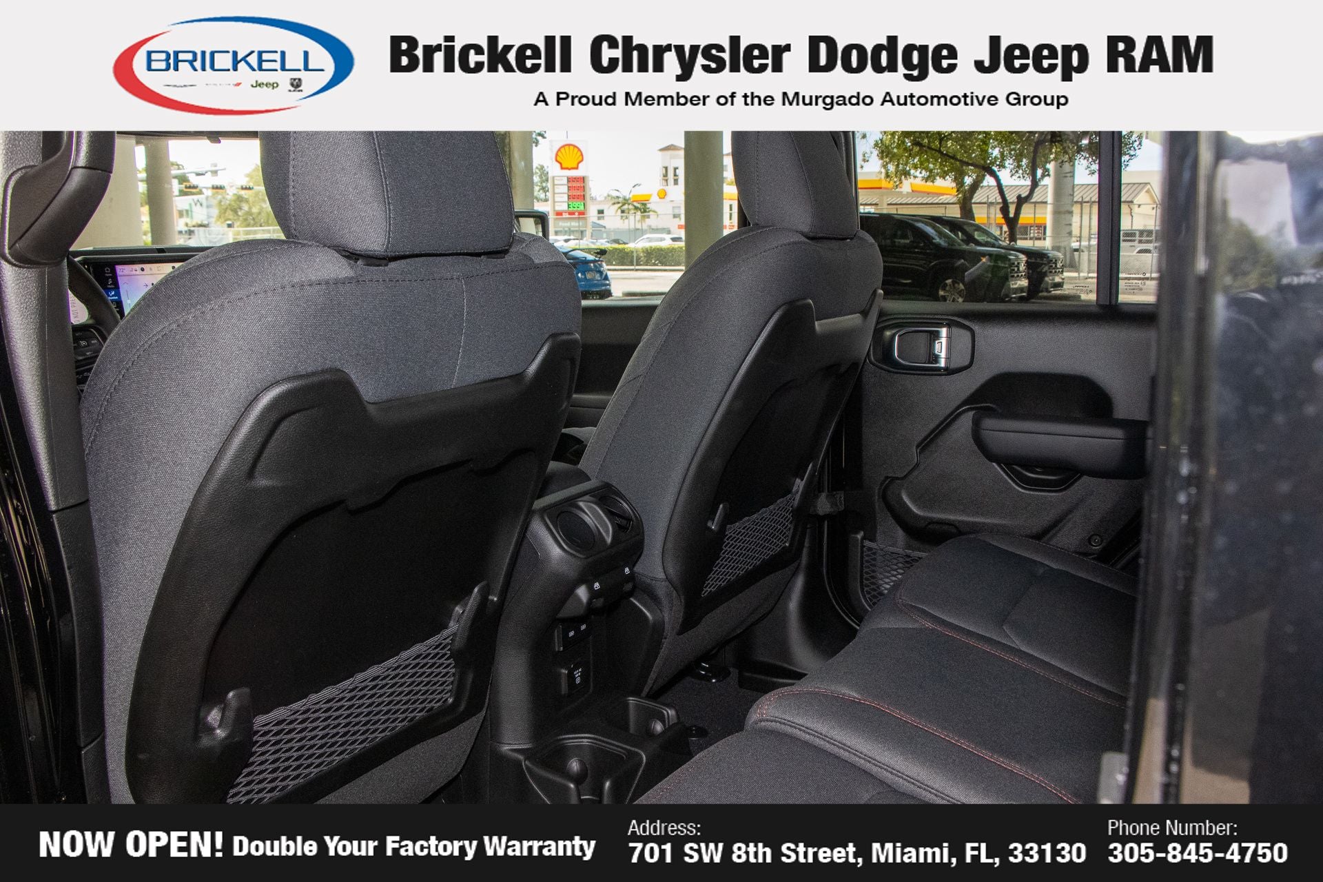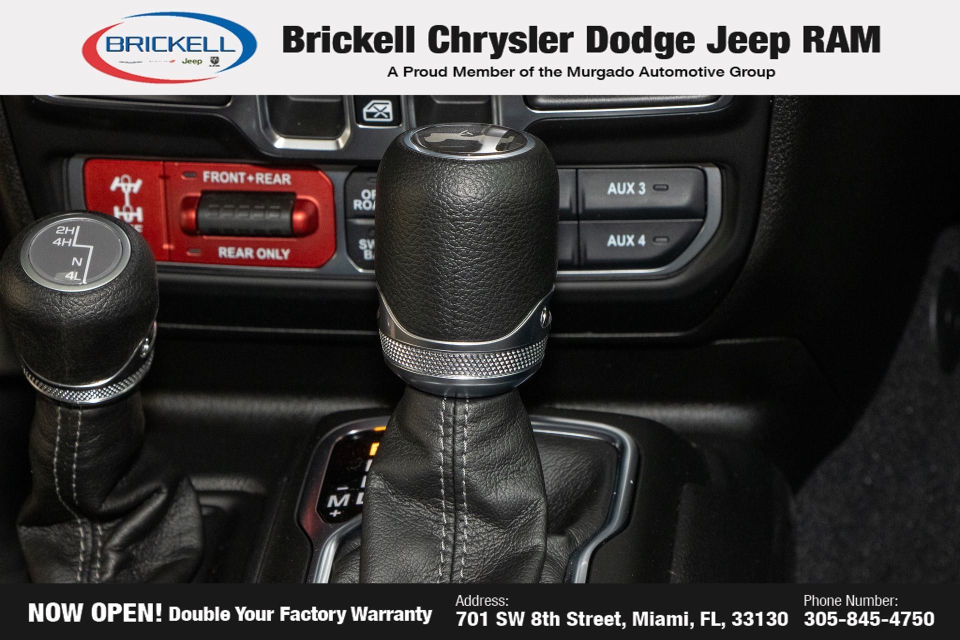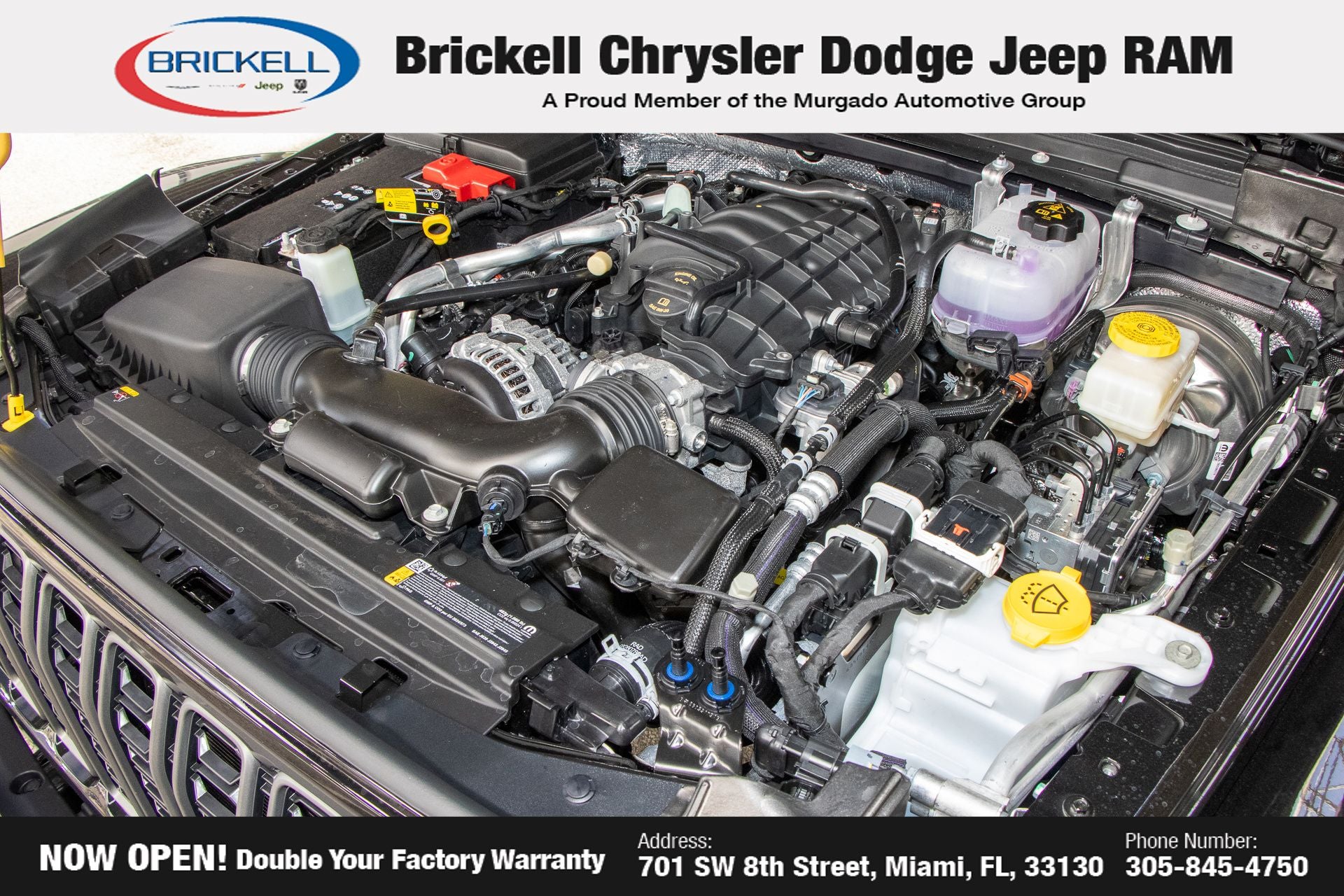 Price includes: $1000 - 2026 National Retail Bonus Cash . Exp. 04/30/2026 Discover Your Next Vehicle at Brickell Chrysler Dodge Jeep Ram Welcome to Brickell CDJR, where we go beyond selling cars. We double the factory powertrain warranty, giving you added peace of mind. Our dealership offers one of the largest new car inventories in the region, ensuring you find the right vehicle Prices displayed do not included our Perma-plate. Our state-of-the-art service department is the largest in the country and is open seven days a week from 7 AM to 9 PM. Visit us at 701 SW 8th St, Miami, FL 33130, or call 305-777-2800 to learn more and schedule a test drive. The displayed price includes an incentive for financing with Brickell CDJR Finance Company. Outside financing and bank drafts are not accepted. All pre-owned vehicle exports are subject to an export fee. Prices apply only to customers who live, work, or worship in Broward, Miami-Dade, Palm Beach, Monroe, Collier, Hendry, Lee, Glades, Martin, St. Lucie, Okeechobee, Manatee, Hillsborough, Osceola, or Orange County. Customers outside these counties will pay an additional $ Taxes, title, registration, and dealer fees apply. Factory MSRP: $57,580 black clearcoat 2026 Jeep Wrangler Rubicon 4WD 8-Speed Automatic 3.6L V6 24V VVT