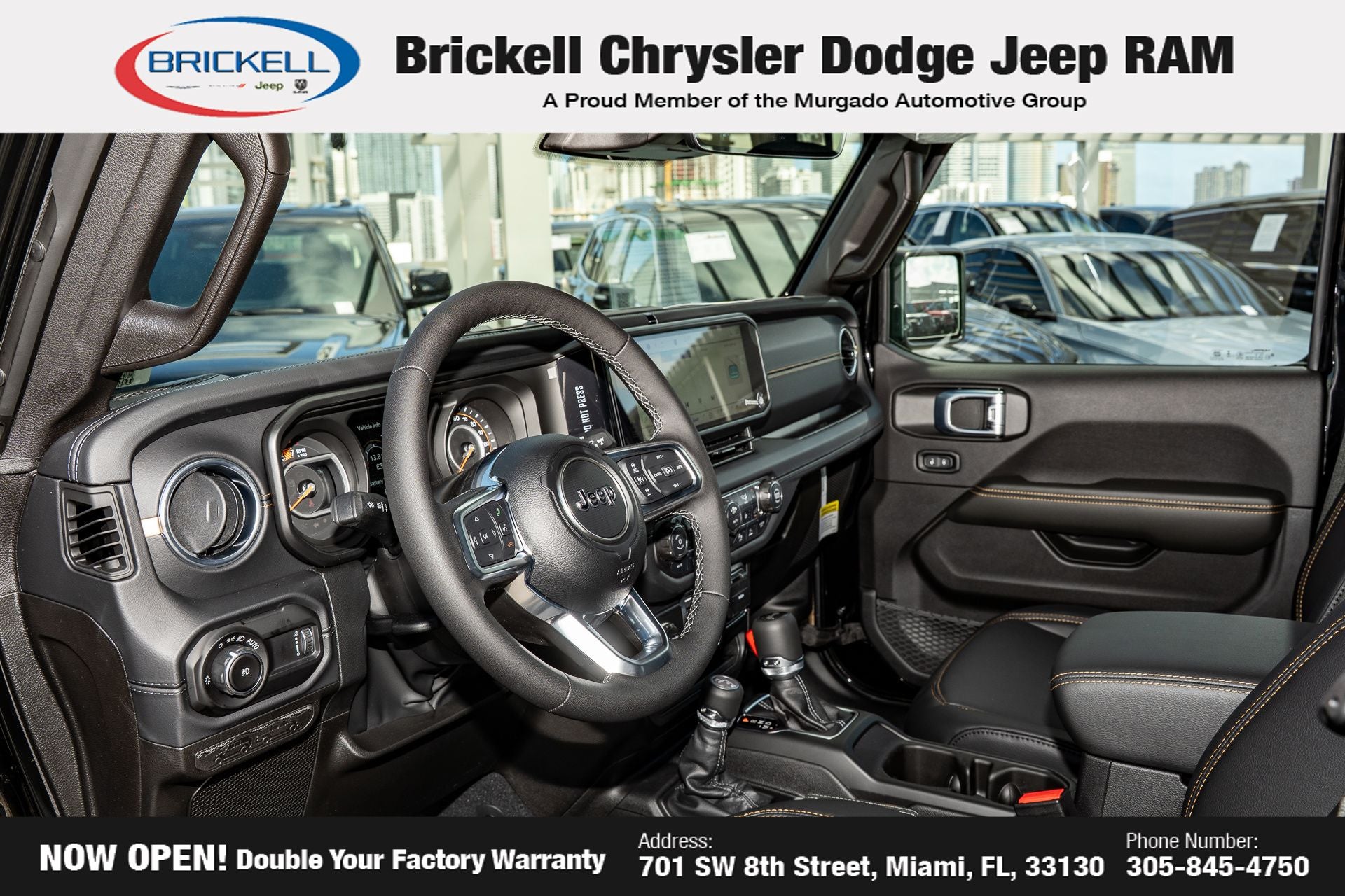 Price includes: $1000 - 2026 National Retail Bonus Cash . Exp. 04/30/2026 Discover Your Next Vehicle at Brickell Chrysler Dodge Jeep Ram Welcome to Brickell CDJR, where we go beyond selling cars. We double the factory powertrain warranty, giving you added peace of mind. Our dealership offers one of the largest new car inventories in the region, ensuring you find the right vehicle Prices displayed do not included our Perma-plate. Our state-of-the-art service department is the largest in the country and is open seven days a week from 7 AM to 9 PM. Visit us at 701 SW 8th St, Miami, FL 33130, or call 305-777-2800 to learn more and schedule a test drive. The displayed price includes an incentive for financing with Brickell CDJR Finance Company. Outside financing and bank drafts are not accepted. All pre-owned vehicle exports are subject to an export fee. Prices apply only to customers who live, work, or worship in Broward, Miami-Dade, Palm Beach, Monroe, Collier, Hendry, Lee, Glades, Martin, St. Lucie, Okeechobee, Manatee, Hillsborough, Osceola, or Orange County. Customers outside these counties will pay an additional $ Taxes, title, registration, and dealer fees apply. Factory MSRP: $57,315 Black Clearcoat 2026 Jeep Wrangler Sahara 4WD 8-Speed Automatic 2.0L I4 DOHC