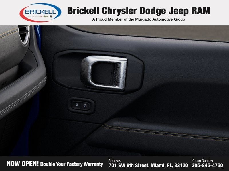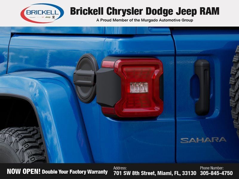 Price includes: $500 - 2026 National 2026 Military Bonus Cash . Exp. 01/04/2027 Discover Your Next Vehicle at Brickell Chrysler Dodge Jeep Ram Welcome to Brickell CDJR, where we go beyond selling cars. We double the factory powertrain warranty, giving you added peace of mind. Our dealership offers one of the largest new car inventories in the region, ensuring you find the right vehicle Prices displayed do not included our Perma-plate. Our state-of-the-art service department is the largest in the country and is open seven days a week from 7 AM to 9 PM. Visit us at 701 SW 8th St, Miami, FL 33130, or call 305-777-2800 to learn more and schedule a test drive. The displayed price includes an incentive for financing with Brickell CDJR Finance Company. Outside financing and bank drafts are not accepted. All pre-owned vehicle exports are subject to an export fee. Prices apply only to customers who live, work, or worship in Broward, Miami-Dade, Palm Beach, Monroe, Collier, Hendry, Lee, Glades, Martin, St. Lucie, Okeechobee, Manatee, Hillsborough, Osceola, or Orange County. Customers outside these counties will pay an additional $ Taxes, title, registration, and dealer fees apply. Factory MSRP: $56,720 Hydro Blue Pearl Coat 2026 Jeep Wrangler Sahara 4WD 8-Speed Automatic 2.0L I4 DOHC