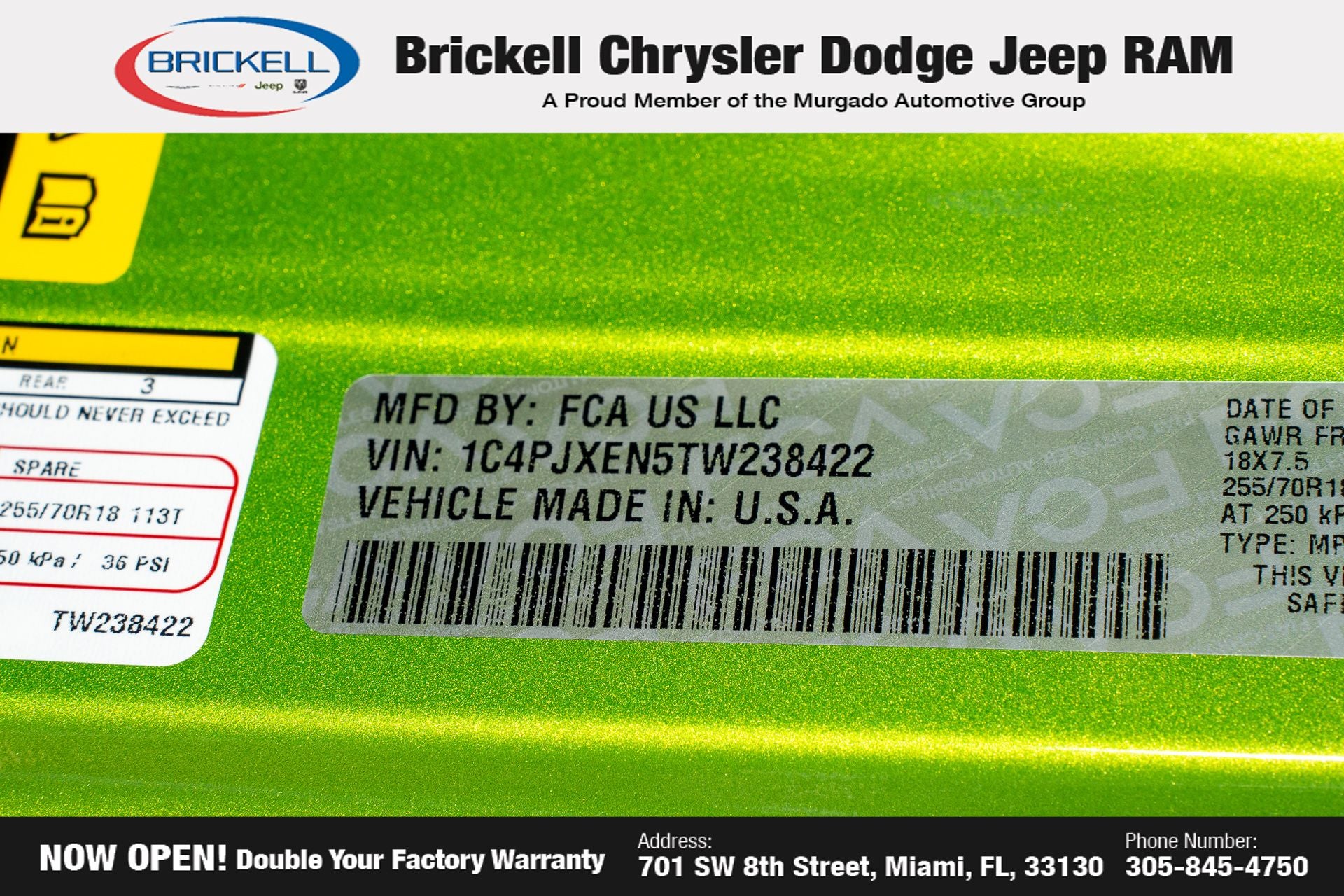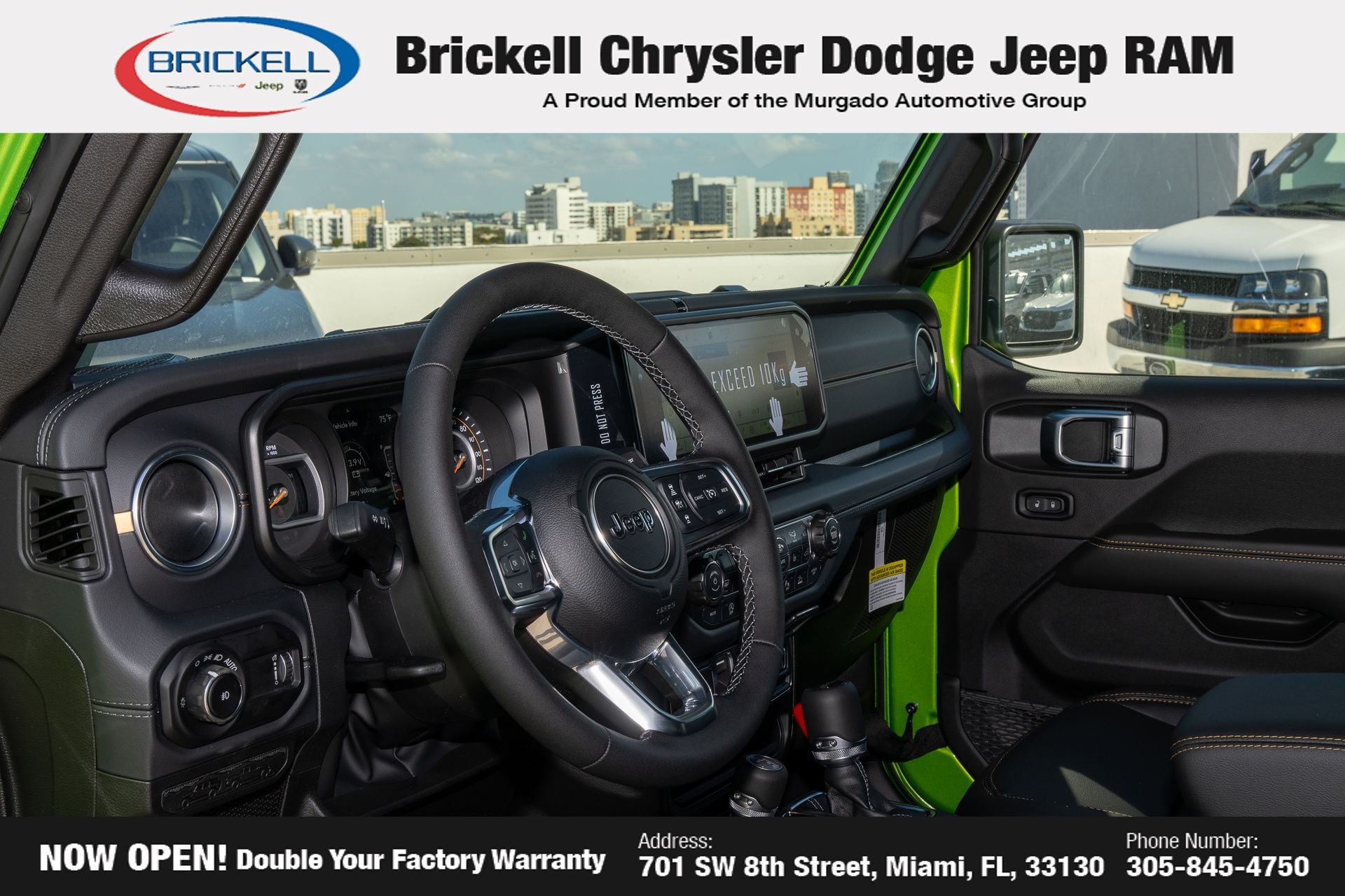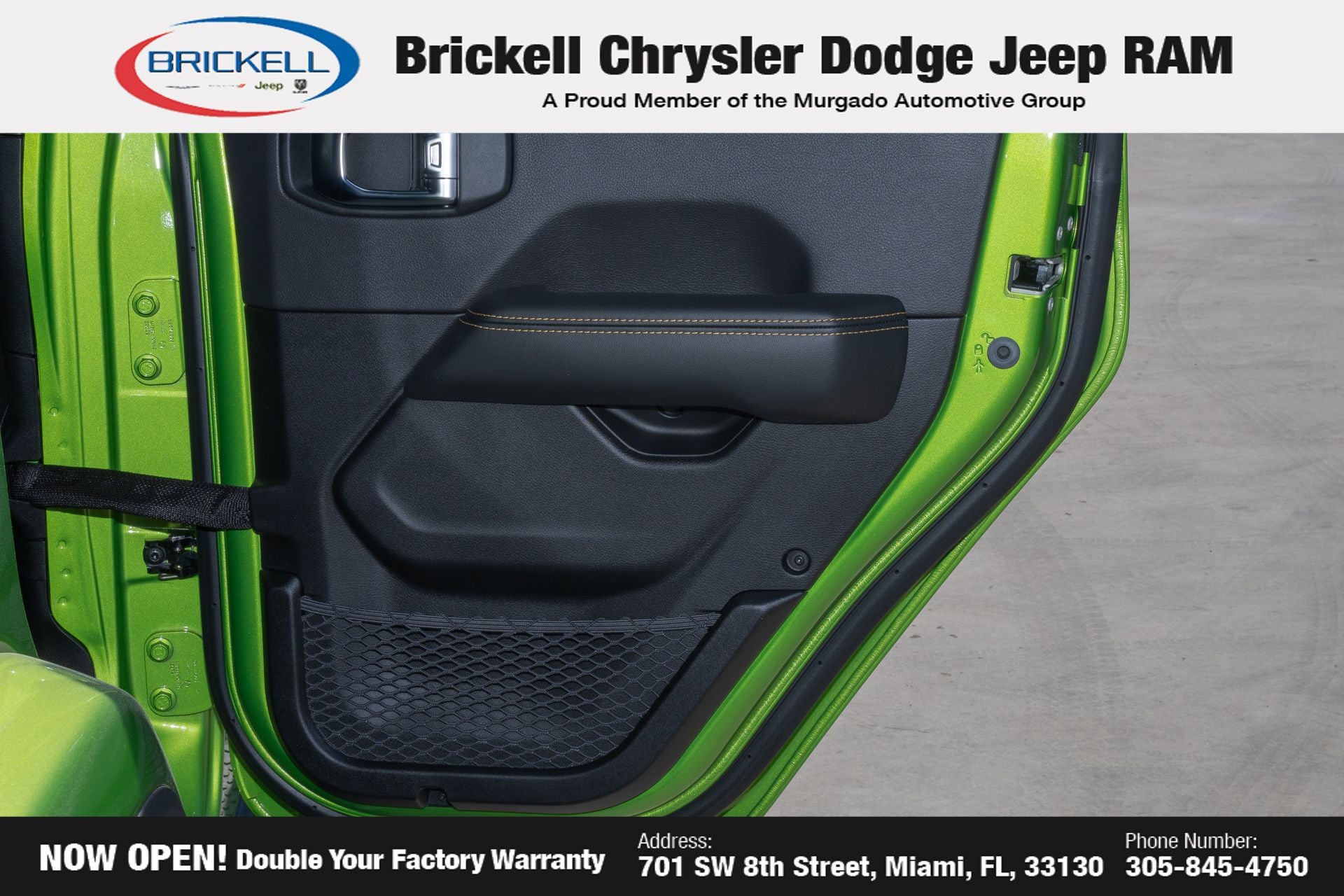 Price includes: $500 - 2026 National 2026 Military Bonus Cash . Exp. 01/04/2027 Discover Your Next Vehicle at Brickell Chrysler Dodge Jeep Ram Welcome to Brickell CDJR, where we go beyond selling cars. We double the factory powertrain warranty, giving you added peace of mind. Our dealership offers one of the largest new car inventories in the region, ensuring you find the right vehicle Prices displayed do not included our Perma-plate. Our state-of-the-art service department is the largest in the country and is open seven days a week from 7 AM to 9 PM. Visit us at 701 SW 8th St, Miami, FL 33130, or call 305-777-2800 to learn more and schedule a test drive. The displayed price includes an incentive for financing with Brickell CDJR Finance Company. Outside financing and bank drafts are not accepted. All pre-owned vehicle exports are subject to an export fee. Prices apply only to customers who live, work, or worship in Broward, Miami-Dade, Palm Beach, Monroe, Collier, Hendry, Lee, Glades, Martin, St. Lucie, Okeechobee, Manatee, Hillsborough, Osceola, or Orange County. Customers outside these counties will pay an additional $ Taxes, title, registration, and dealer fees apply. Factory MSRP: $56,845 Mojito Clearcoat 2026 Jeep Wrangler Sahara 4WD 8-Speed Automatic 2.0L I4 DOHC