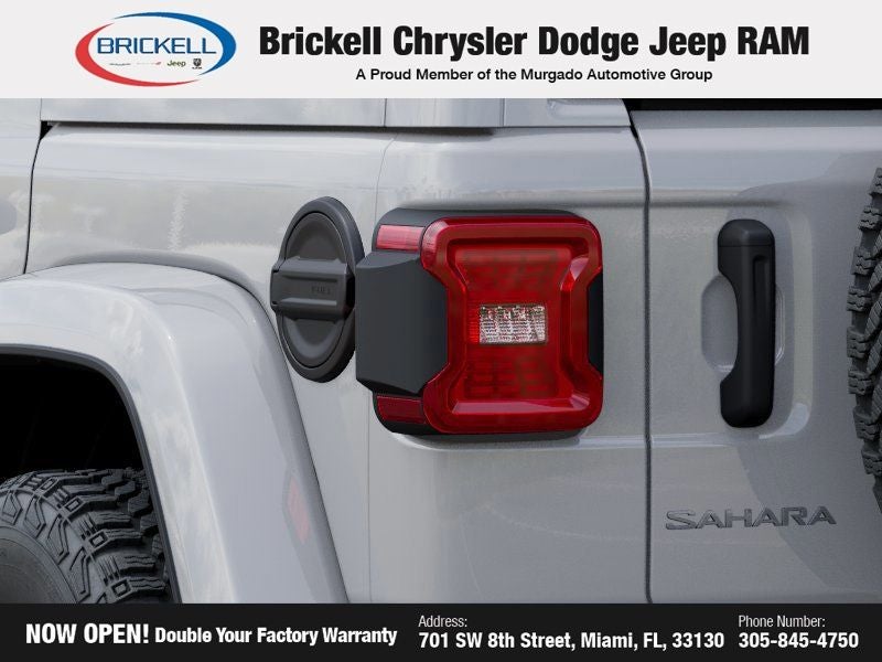 Price includes: $1000 - 2026 National Retail Bonus Cash . Exp. 04/30/2026 Discover Your Next Vehicle at Brickell Chrysler Dodge Jeep Ram Welcome to Brickell CDJR, where we go beyond selling cars. We double the factory powertrain warranty, giving you added peace of mind. Our dealership offers one of the largest new car inventories in the region, ensuring you find the right vehicle Prices displayed do not included our Perma-plate. Our state-of-the-art service department is the largest in the country and is open seven days a week from 7 AM to 9 PM. Visit us at 701 SW 8th St, Miami, FL 33130, or call 305-777-2800 to learn more and schedule a test drive. The displayed price includes an incentive for financing with Brickell CDJR Finance Company. Outside financing and bank drafts are not accepted. All pre-owned vehicle exports are subject to an export fee. Prices apply only to customers who live, work, or worship in Broward, Miami-Dade, Palm Beach, Monroe, Collier, Hendry, Lee, Glades, Martin, St. Lucie, Okeechobee, Manatee, Hillsborough, Osceola, or Orange County. Customers outside these counties will pay an additional $ Taxes, title, registration, and dealer fees apply. Factory MSRP: $57,460 2026 Jeep Wrangler Sahara 4WD 8-Speed Automatic 2.0L I4 DOHC