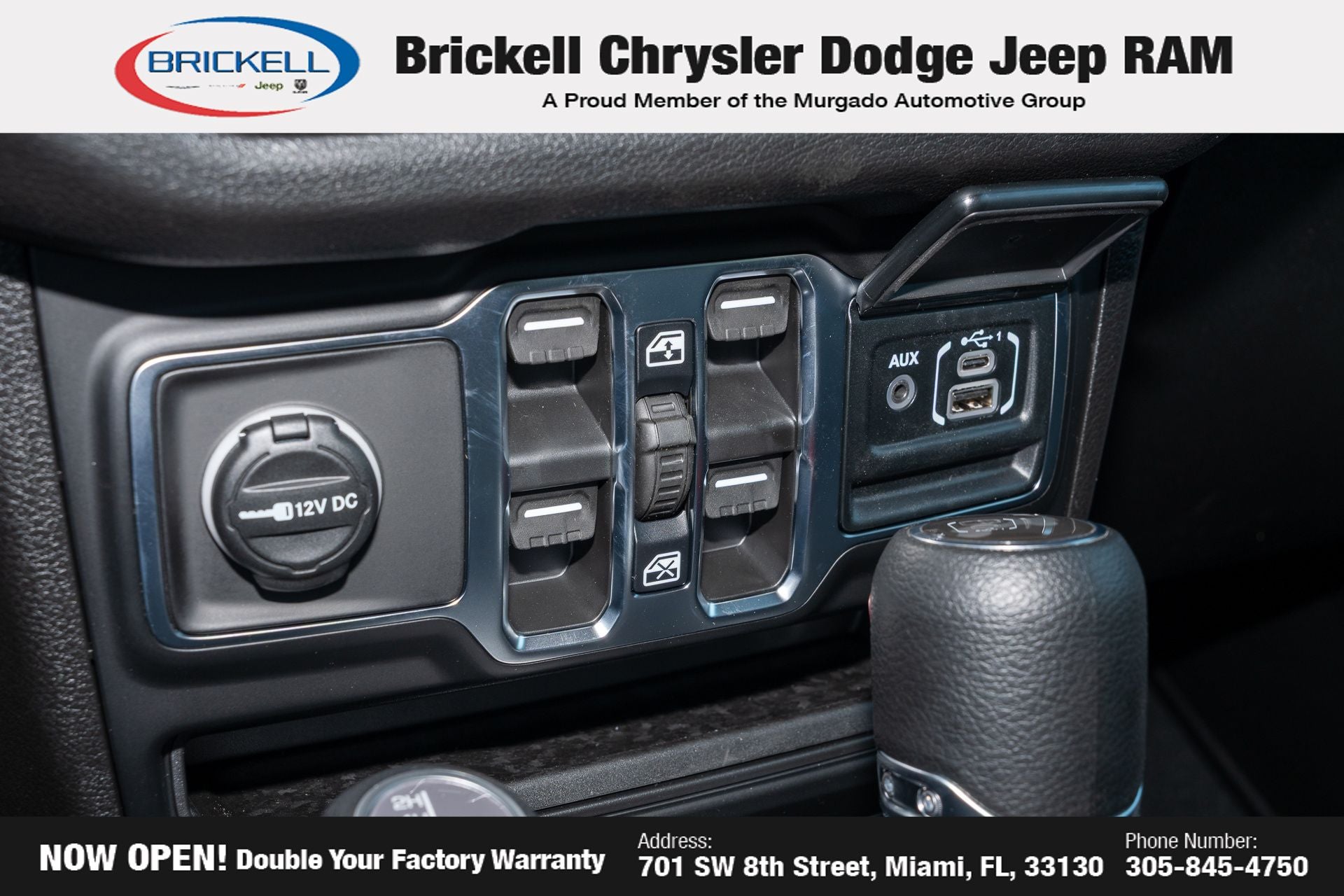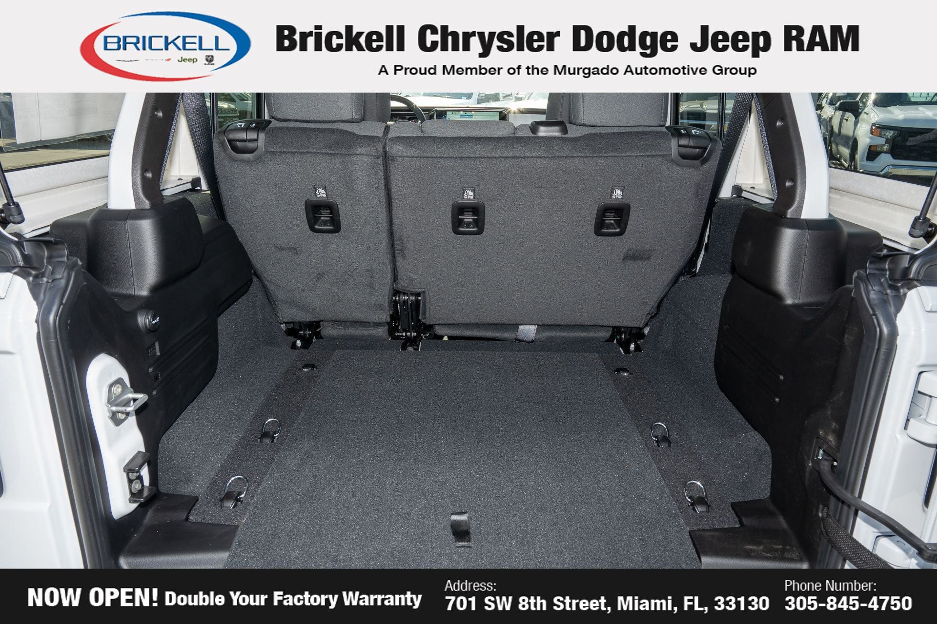 Price includes: $500 - 2026 National 2026 Military Bonus Cash . Exp. 01/04/2027 Discover Your Next Vehicle at Brickell Chrysler Dodge Jeep Ram Welcome to Brickell CDJR, where we go beyond selling cars. We double the factory powertrain warranty, giving you added peace of mind. Our dealership offers one of the largest new car inventories in the region, ensuring you find the right vehicle Prices displayed do not included our Perma-plate. Our state-of-the-art service department is the largest in the country and is open seven days a week from 7 AM to 9 PM. Visit us at 701 SW 8th St, Miami, FL 33130, or call 305-777-2800 to learn more and schedule a test drive. The displayed price includes an incentive for financing with Brickell CDJR Finance Company. Outside financing and bank drafts are not accepted. All pre-owned vehicle exports are subject to an export fee. Prices apply only to customers who live, work, or worship in Broward, Miami-Dade, Palm Beach, Monroe, Collier, Hendry, Lee, Glades, Martin, St. Lucie, Okeechobee, Manatee, Hillsborough, Osceola, or Orange County. Customers outside these counties will pay an additional $ Taxes, title, registration, and dealer fees apply. Factory MSRP: $49,135 Bright White Clearcoat 2026 Jeep Wrangler Sport S 4WD 8-Speed Automatic 3.6L V6 24V VVT