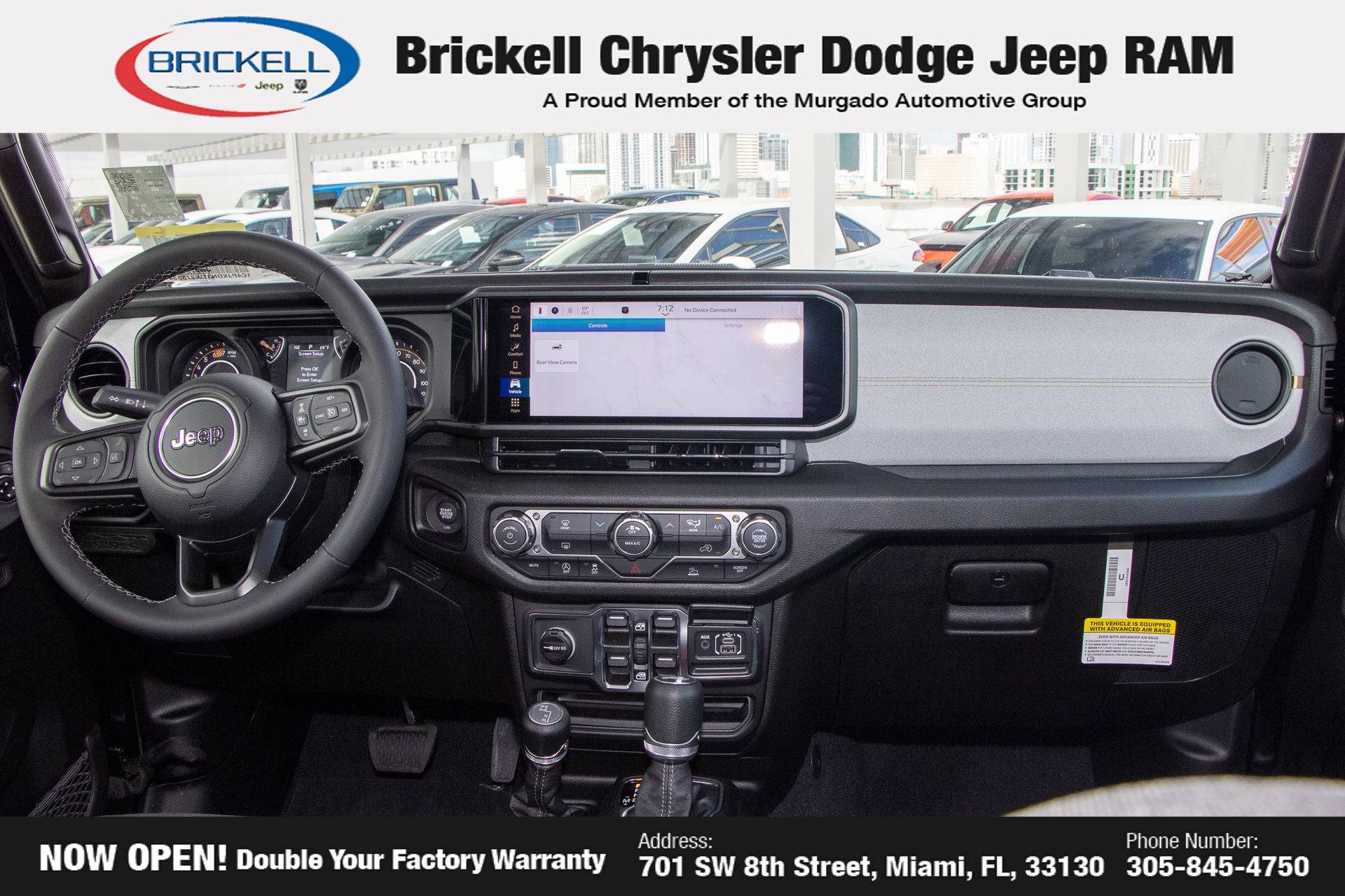 Price includes: $1000 - 2026 National Retail Bonus Cash . Exp. 03/31/2026 $1000 - 2026 National Stellantis Loyalty Bonus Cash . Exp. 03/31/2026 $500 - 2026 National 2026 Military Bonus Cash . Exp. 01/04/2027 Discover Your Next Vehicle at Brickell Chrysler Dodge Jeep Ram Welcome to Brickell CDJR, where we go beyond selling cars. We double the factory powertrain warranty, giving you added peace of mind. Our dealership offers one of the largest new car inventories in the region, ensuring you find the right vehicle Prices displayed do not included our Perma-plate. Our state-of-the-art service department is the largest in the country and is open seven days a week from 7 AM to 9 PM. Visit us at 701 SW 8th St, Miami, FL 33130, or call 305-777-2800 to learn more and schedule a test drive. The displayed price includes an incentive for financing with Brickell CDJR Finance Company. Outside financing and bank drafts are not accepted. All pre-owned vehicle exports are subject to an export fee. Prices apply only to customers who live, work, or worship in Broward, Miami-Dade, Palm Beach, Monroe, Collier, Hendry, Lee, Glades, Martin, St. Lucie, Okeechobee, Manatee, Hillsborough, Osceola, or Orange County. Customers outside these counties will pay an additional $ Taxes, title, registration, and dealer fees apply. Factory MSRP: $47,985 Black Clearcoat 2026 Jeep Wrangler Sport S 4WD 8-Speed Automatic 2.0L I4 DOHC