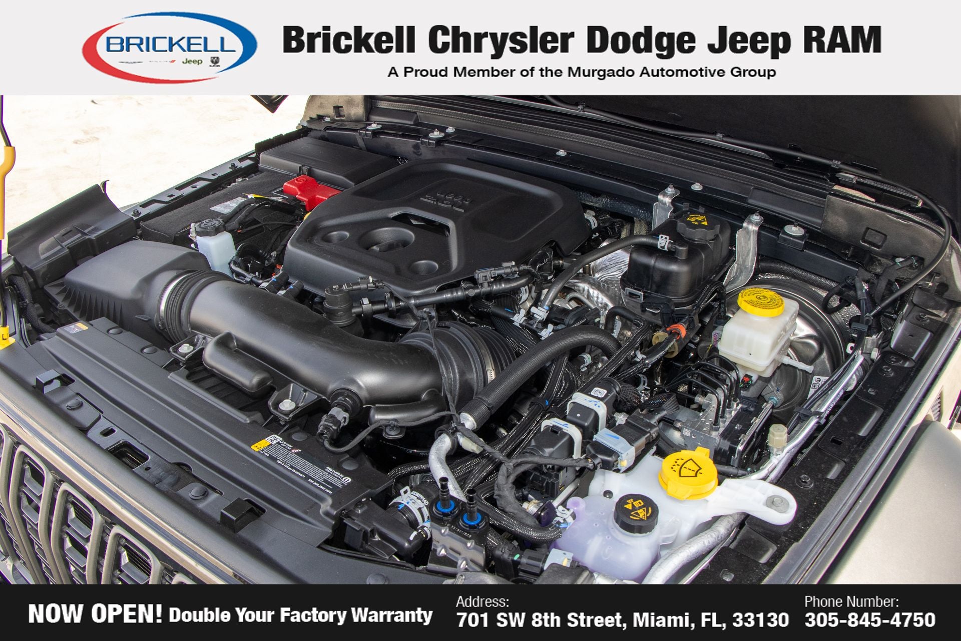 Price includes: $1000 - 2026 National Retail Bonus Cash . Exp. 03/31/2026 $1000 - 2026 National Stellantis Loyalty Bonus Cash . Exp. 03/31/2026 $1500 - 2026 National Select Inventory Bonus Cash . Exp. 01/04/2027 $500 - 2026 National 2026 Military Bonus Cash . Exp. 01/04/2027 Discover Your Next Vehicle at Brickell Chrysler Dodge Jeep Ram Welcome to Brickell CDJR, where we go beyond selling cars. We double the factory powertrain warranty, giving you added peace of mind. Our dealership offers one of the largest new car inventories in the region, ensuring you find the right vehicle Prices displayed do not included our Perma-plate. Our state-of-the-art service department is the largest in the country and is open seven days a week from 7 AM to 9 PM. Visit us at 701 SW 8th St, Miami, FL 33130, or call 305-777-2800 to learn more and schedule a test drive. The displayed price includes an incentive for financing with Brickell CDJR Finance Company. Outside financing and bank drafts are not accepted. All pre-owned vehicle exports are subject to an export fee. Prices apply only to customers who live, work, or worship in Broward, Miami-Dade, Palm Beach, Monroe, Collier, Hendry, Lee, Glades, Martin, St. Lucie, Okeechobee, Manatee, Hillsborough, Osceola, or Orange County. Customers outside these counties will pay an additional $ Taxes, title, registration, and dealer fees apply. Black Clearcoat 2026 Jeep Wrangler Sport S 4WD 8-Speed Automatic 2.0L I4 DOHC