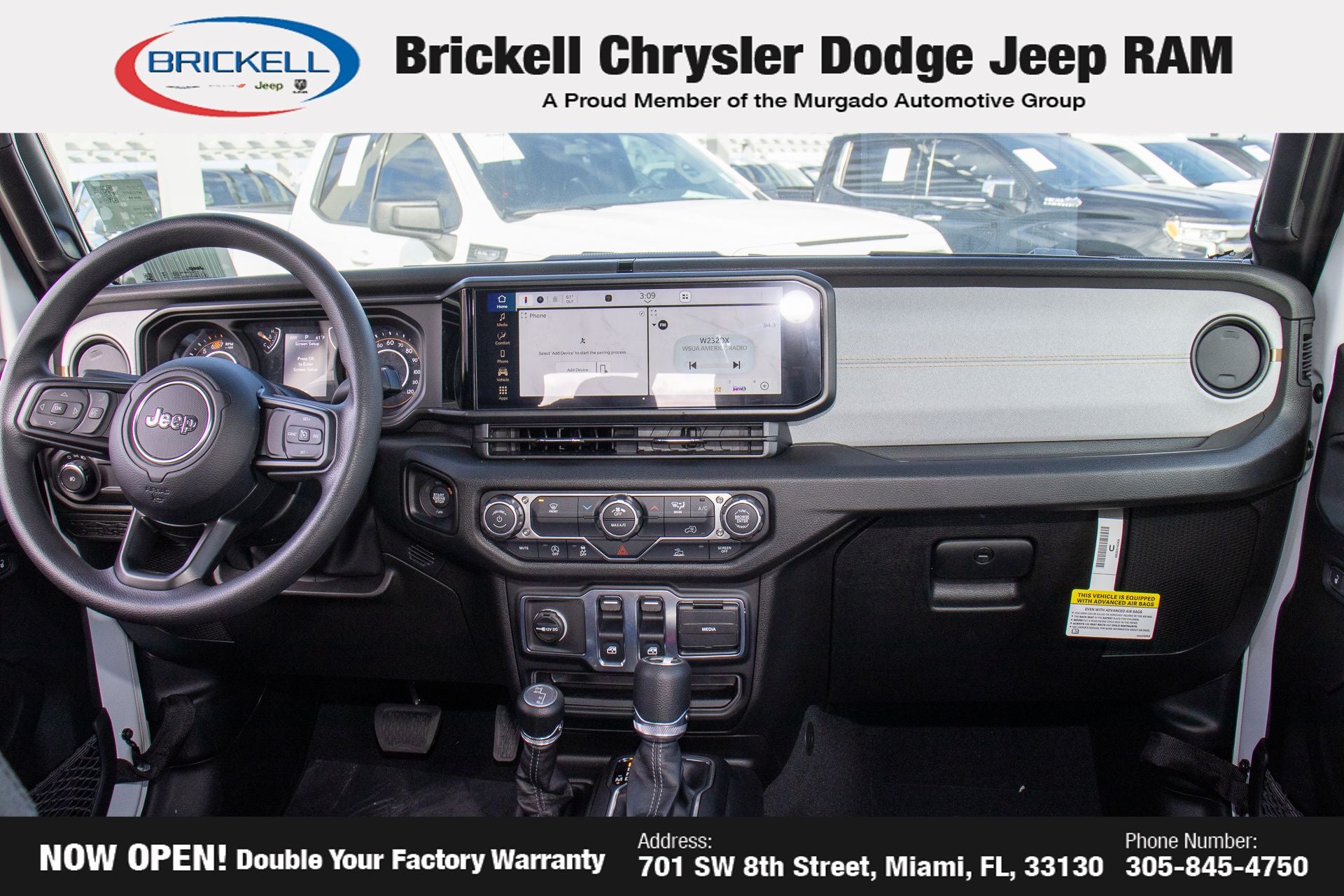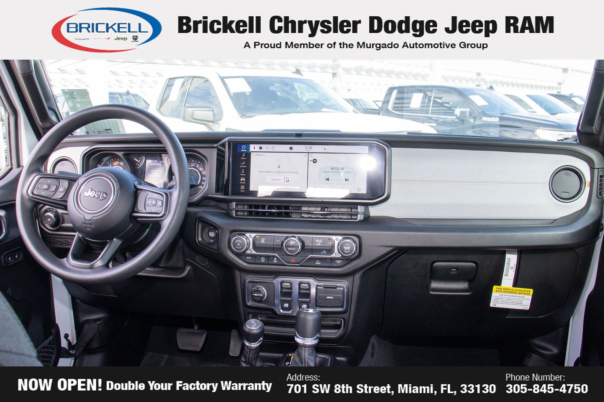 Discover Your Next Vehicle at Brickell Chrysler Dodge Jeep Ram Welcome to Brickell CDJR, where we go beyond selling cars. We double the factory powertrain warranty, giving you added peace of mind. Our dealership offers one of the largest new car inventories in the region, ensuring you find the right vehicle Prices displayed do not included our Perma-plate. Our state-of-the-art service department is the largest in the country and is open seven days a week from 7 AM to 9 PM. Visit us at 701 SW 8th St, Miami, FL 33130, or call 305-777-2800 to learn more and schedule a test drive. The displayed price includes an incentive for financing with Brickell CDJR Finance Company. Outside financing and bank drafts are not accepted. All pre-owned vehicle exports are subject to an export fee. Prices apply only to customers who live, work, or worship in Broward, Miami-Dade, Palm Beach, Monroe, Collier, Hendry, Lee, Glades, Martin, St. Lucie, Okeechobee, Manatee, Hillsborough, Osceola, or Orange County. Customers outside these counties will pay an additional $ Taxes, title, registration, and dealer fees apply. Factory MSRP: $39,390 bright white clearcoat 2026 Jeep Wrangler Sport 4WD 8-Speed Automatic 2.0L I4 DOHC