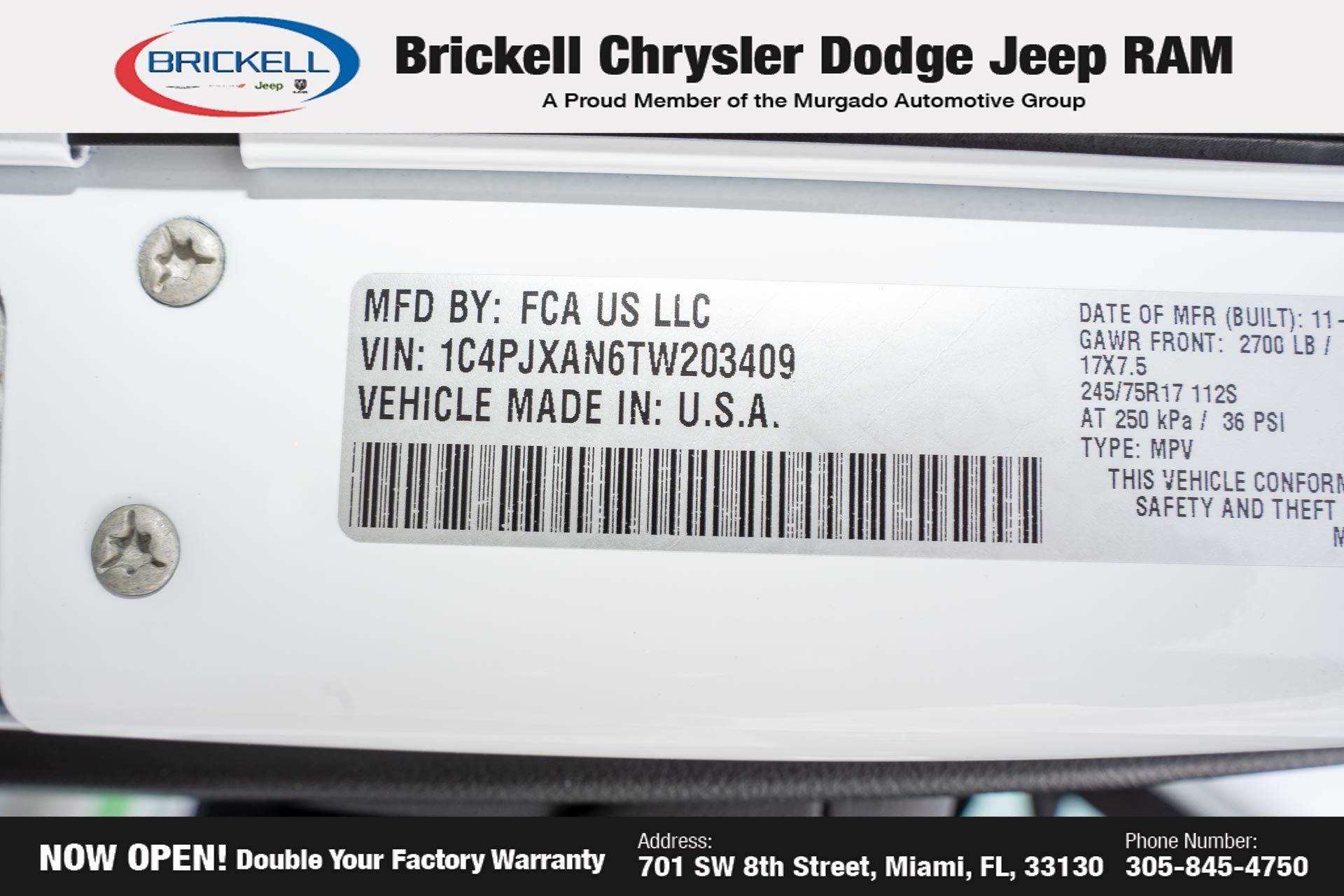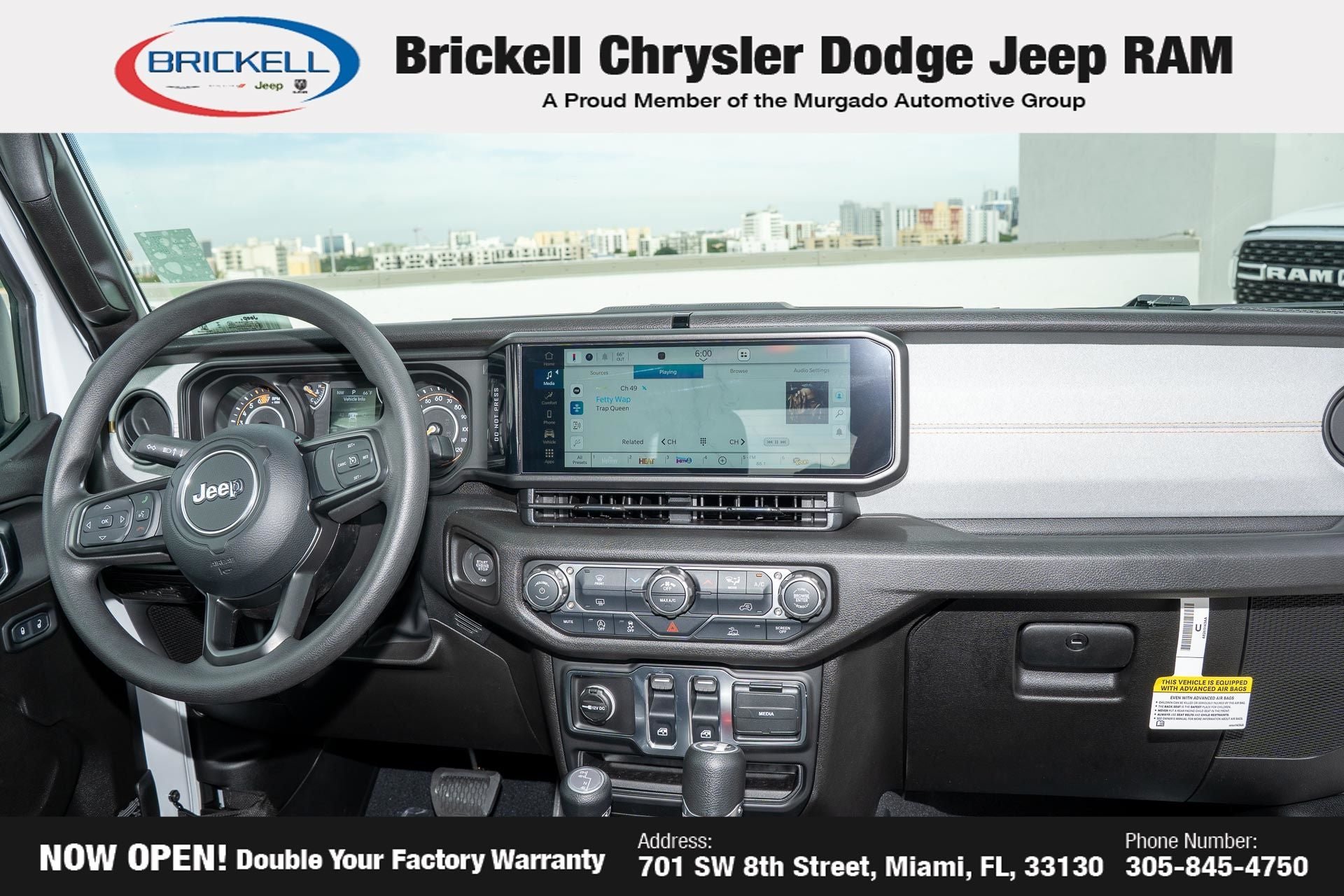 Price includes: $500 - 2026 National 2026 Military Bonus Cash . Exp. 01/04/2027 Discover Your Next Vehicle at Brickell Chrysler Dodge Jeep Ram Welcome to Brickell CDJR, where we go beyond selling cars. We double the factory powertrain warranty, giving you added peace of mind. Our dealership offers one of the largest new car inventories in the region, ensuring you find the right vehicle Prices displayed do not included our Perma-plate. Our state-of-the-art service department is the largest in the country and is open seven days a week from 7 AM to 9 PM. Visit us at 701 SW 8th St, Miami, FL 33130, or call 305-777-2800 to learn more and schedule a test drive. The displayed price includes an incentive for financing with Brickell CDJR Finance Company. Outside financing and bank drafts are not accepted. All pre-owned vehicle exports are subject to an export fee. Prices apply only to customers who live, work, or worship in Broward, Miami-Dade, Palm Beach, Monroe, Collier, Hendry, Lee, Glades, Martin, St. Lucie, Okeechobee, Manatee, Hillsborough, Osceola, or Orange County. Customers outside these counties will pay an additional $ Taxes, title, registration, and dealer fees apply. Factory MSRP: $41,285 Bright White Clearcoat 2026 Jeep Wrangler Sport 4WD 8-Speed Automatic 2.0L I4 DOHC