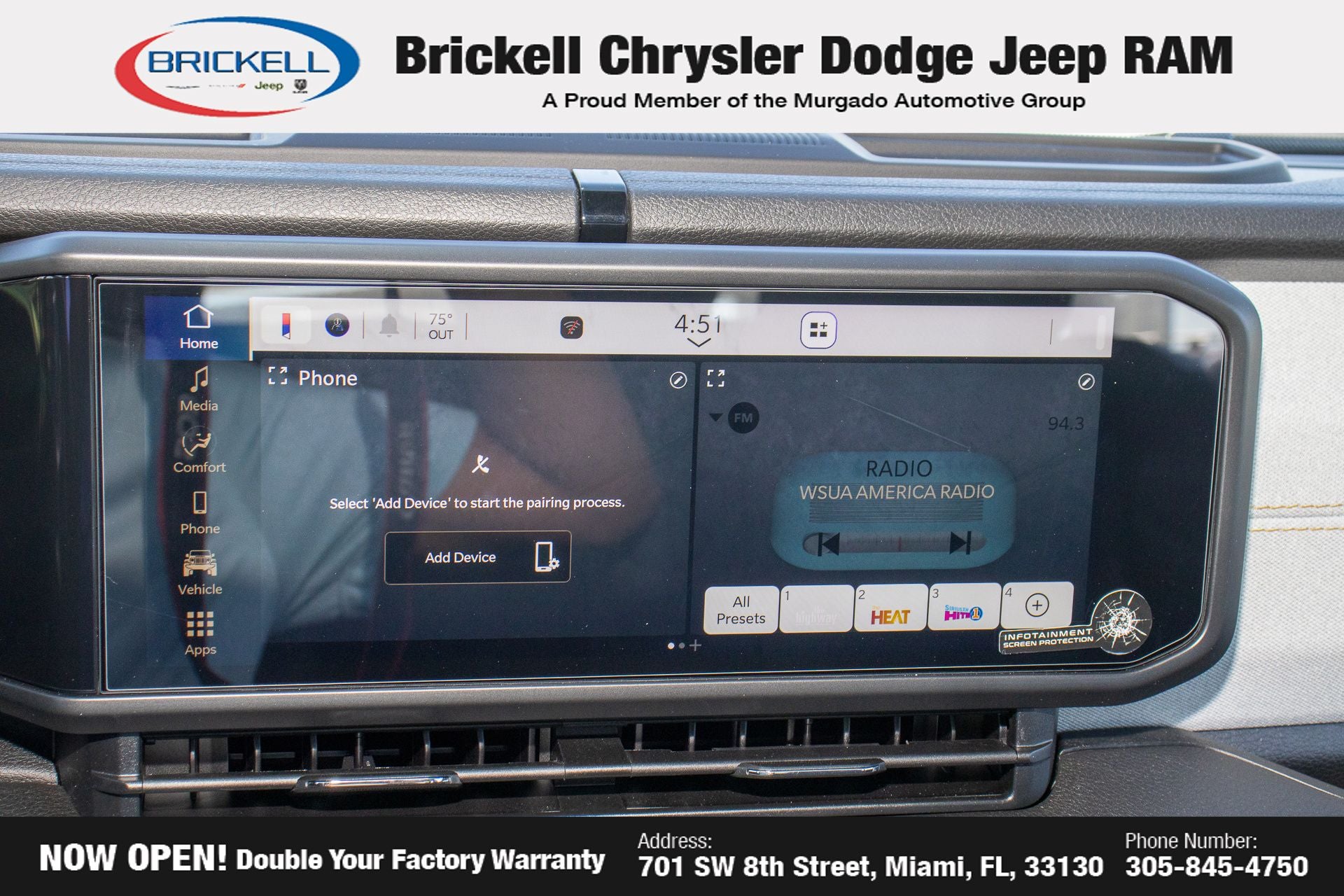 Discover Your Next Vehicle at Brickell Chrysler Dodge Jeep Ram Welcome to Brickell CDJR, where we go beyond selling cars. We double the factory powertrain warranty, giving you added peace of mind. Our dealership offers one of the largest new car inventories in the region, ensuring you find the right vehicle Prices displayed do not included our Perma-plate. Our state-of-the-art service department is the largest in the country and is open seven days a week from 7 AM to 9 PM. Visit us at 701 SW 8th St, Miami, FL 33130, or call 305-777-2800 to learn more and schedule a test drive. The displayed price includes an incentive for financing with Brickell CDJR Finance Company. Outside financing and bank drafts are not accepted. All pre-owned vehicle exports are subject to an export fee. Prices apply only to customers who live, work, or worship in Broward, Miami-Dade, Palm Beach, Monroe, Collier, Hendry, Lee, Glades, Martin, St. Lucie, Okeechobee, Manatee, Hillsborough, Osceola, or Orange County. Customers outside these counties will pay an additional $ Taxes, title, registration, and dealer fees apply. Factory MSRP: $41,285 Bright White Clearcoat 2026 Jeep Wrangler Sport 4WD 8-Speed Automatic 2.0L I4 DOHC