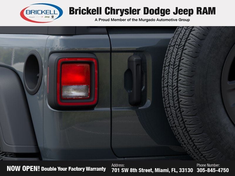 Discover Your Next Vehicle at Brickell Chrysler Dodge Jeep Ram Welcome to Brickell CDJR, where we go beyond selling cars. We double the factory powertrain warranty, giving you added peace of mind. Our dealership offers one of the largest new car inventories in the region, ensuring you find the right vehicle Prices displayed do not included our Perma-plate. Our state-of-the-art service department is the largest in the country and is open seven days a week from 7 AM to 9 PM. Visit us at 701 SW 8th St, Miami, FL 33130, or call 305-777-2800 to learn more and schedule a test drive. The displayed price includes an incentive for financing with Brickell CDJR Finance Company. Outside financing and bank drafts are not accepted. All pre-owned vehicle exports are subject to an export fee. Prices apply only to customers who live, work, or worship in Broward, Miami-Dade, Palm Beach, Monroe, Collier, Hendry, Lee, Glades, Martin, St. Lucie, Okeechobee, Manatee, Hillsborough, Osceola, or Orange County. Customers outside these counties will pay an additional $ Taxes, title, registration, and dealer fees apply. Factory MSRP: $43,875 Anvil Clear Coat 2026 Jeep Wrangler Sport 4WD 8-Speed Automatic 2.0L I4 DOHC