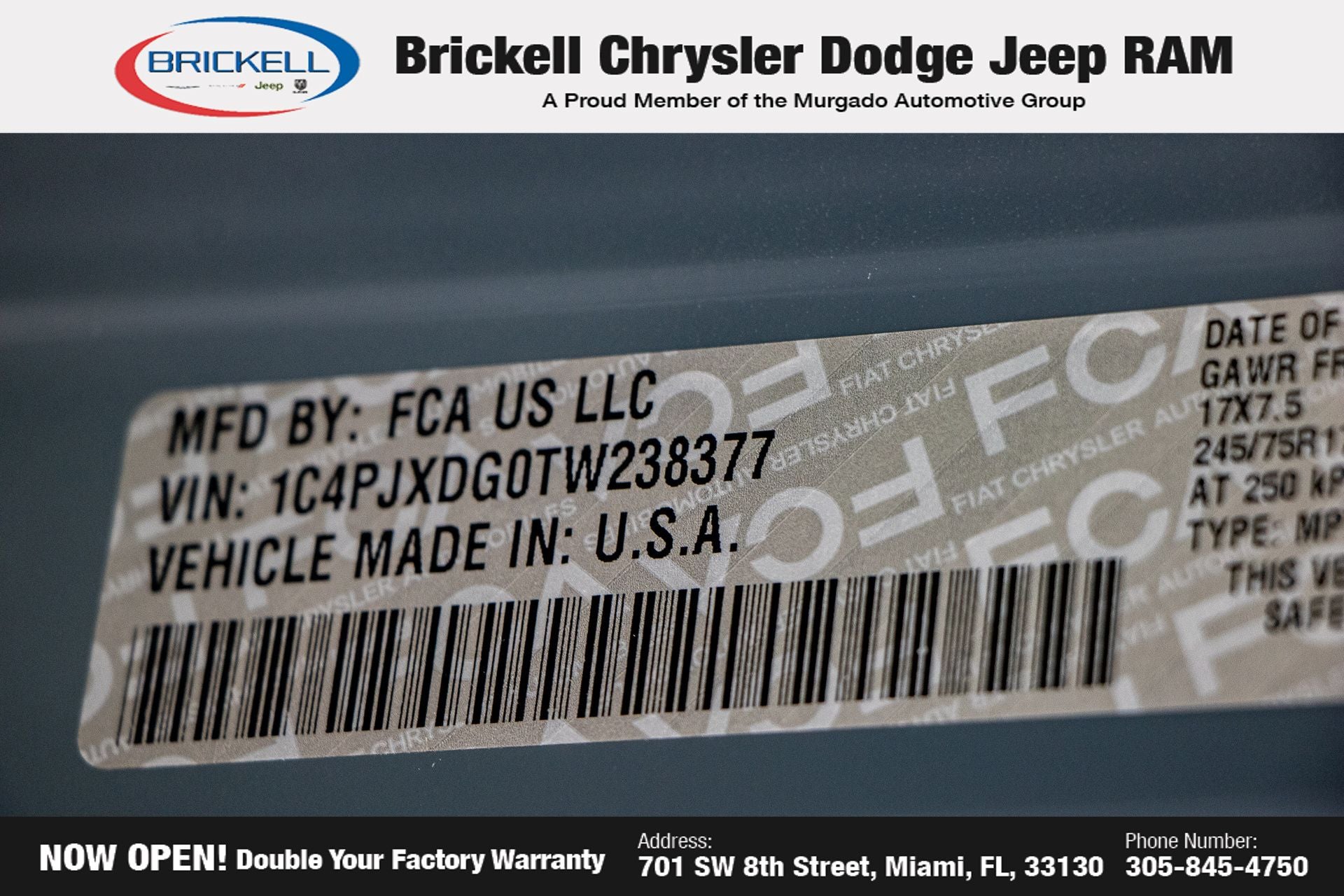 Price includes: $1000 - 2026 National Retail Bonus Cash . Exp. 04/30/2026 Discover Your Next Vehicle at Brickell Chrysler Dodge Jeep Ram Welcome to Brickell CDJR, where we go beyond selling cars. We double the factory powertrain warranty, giving you added peace of mind. Our dealership offers one of the largest new car inventories in the region, ensuring you find the right vehicle Prices displayed do not included our Perma-plate. Our state-of-the-art service department is the largest in the country and is open seven days a week from 7 AM to 9 PM. Visit us at 701 SW 8th St, Miami, FL 33130, or call 305-777-2800 to learn more and schedule a test drive. The displayed price includes an incentive for financing with Brickell CDJR Finance Company. Outside financing and bank drafts are not accepted. All pre-owned vehicle exports are subject to an export fee. Prices apply only to customers who live, work, or worship in Broward, Miami-Dade, Palm Beach, Monroe, Collier, Hendry, Lee, Glades, Martin, St. Lucie, Okeechobee, Manatee, Hillsborough, Osceola, or Orange County. Customers outside these counties will pay an additional $ Taxes, title, registration, and dealer fees apply. Factory MSRP: $48,080 Anvil Clear Coat 2026 Jeep Wrangler Sport 4WD 8-Speed Automatic 3.6L V6 24V VVT
