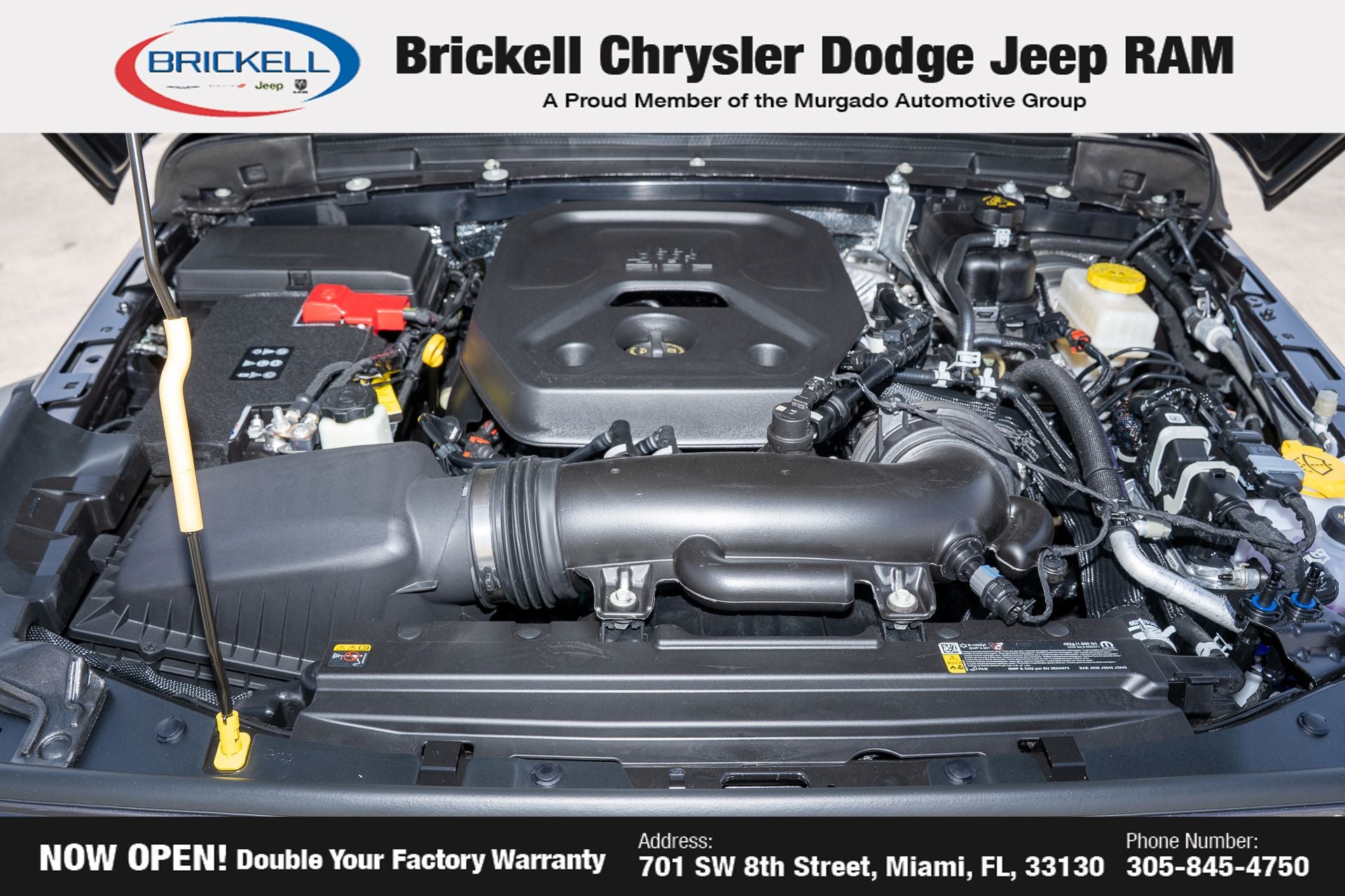 Price includes: $500 - 2026 National 2026 Military Bonus Cash . Exp. 01/04/2027 Discover Your Next Vehicle at Brickell Chrysler Dodge Jeep Ram Welcome to Brickell CDJR, where we go beyond selling cars. We double the factory powertrain warranty, giving you added peace of mind. Our dealership offers one of the largest new car inventories in the region, ensuring you find the right vehicle Prices displayed do not included our Perma-plate. Our state-of-the-art service department is the largest in the country and is open seven days a week from 7 AM to 9 PM. Visit us at 701 SW 8th St, Miami, FL 33130, or call 305-777-2800 to learn more and schedule a test drive. The displayed price includes an incentive for financing with Brickell CDJR Finance Company. Outside financing and bank drafts are not accepted. All pre-owned vehicle exports are subject to an export fee. Prices apply only to customers who live, work, or worship in Broward, Miami-Dade, Palm Beach, Monroe, Collier, Hendry, Lee, Glades, Martin, St. Lucie, Okeechobee, Manatee, Hillsborough, Osceola, or Orange County. Customers outside these counties will pay an additional $ Taxes, title, registration, and dealer fees apply. Factory MSRP: $47,580 Granite Crystal Metallic Clearcoat 2026 Jeep Wrangler Sport 4WD 8-Speed Automatic 2.0L I4 DOHC