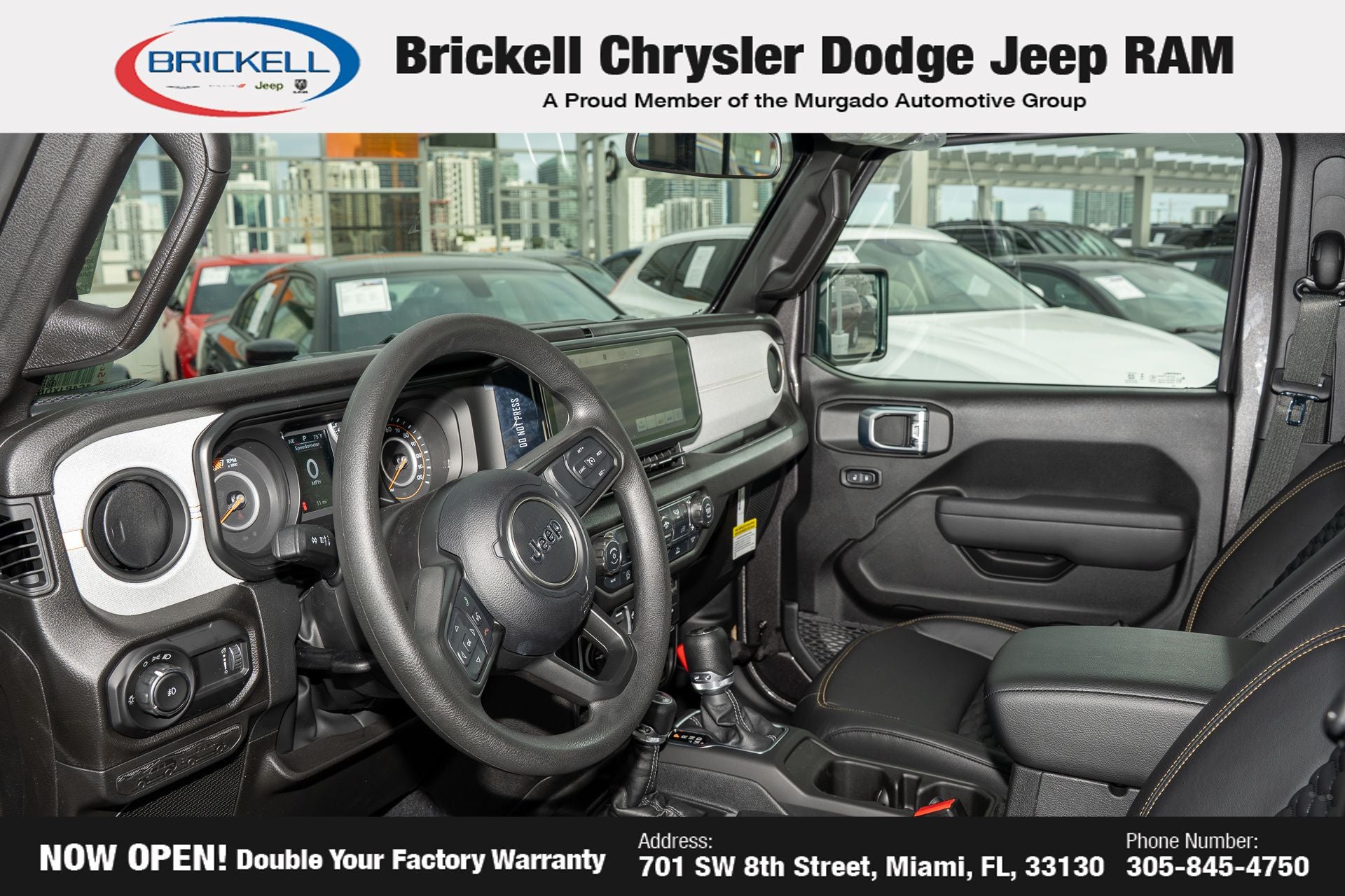 Price includes: $1000 - 2026 National Retail Bonus Cash . Exp. 04/30/2026 Discover Your Next Vehicle at Brickell Chrysler Dodge Jeep Ram Welcome to Brickell CDJR, where we go beyond selling cars. We double the factory powertrain warranty, giving you added peace of mind. Our dealership offers one of the largest new car inventories in the region, ensuring you find the right vehicle Prices displayed do not included our Perma-plate. Our state-of-the-art service department is the largest in the country and is open seven days a week from 7 AM to 9 PM. Visit us at 701 SW 8th St, Miami, FL 33130, or call 305-777-2800 to learn more and schedule a test drive. The displayed price includes an incentive for financing with Brickell CDJR Finance Company. Outside financing and bank drafts are not accepted. All pre-owned vehicle exports are subject to an export fee. Prices apply only to customers who live, work, or worship in Broward, Miami-Dade, Palm Beach, Monroe, Collier, Hendry, Lee, Glades, Martin, St. Lucie, Okeechobee, Manatee, Hillsborough, Osceola, or Orange County. Customers outside these counties will pay an additional $ Taxes, title, registration, and dealer fees apply. Factory MSRP: $47,420 granite crystal metallic clearcoat 2026 Jeep Wrangler Sport 4WD 8-Speed Automatic 2.0L I4 DOHC