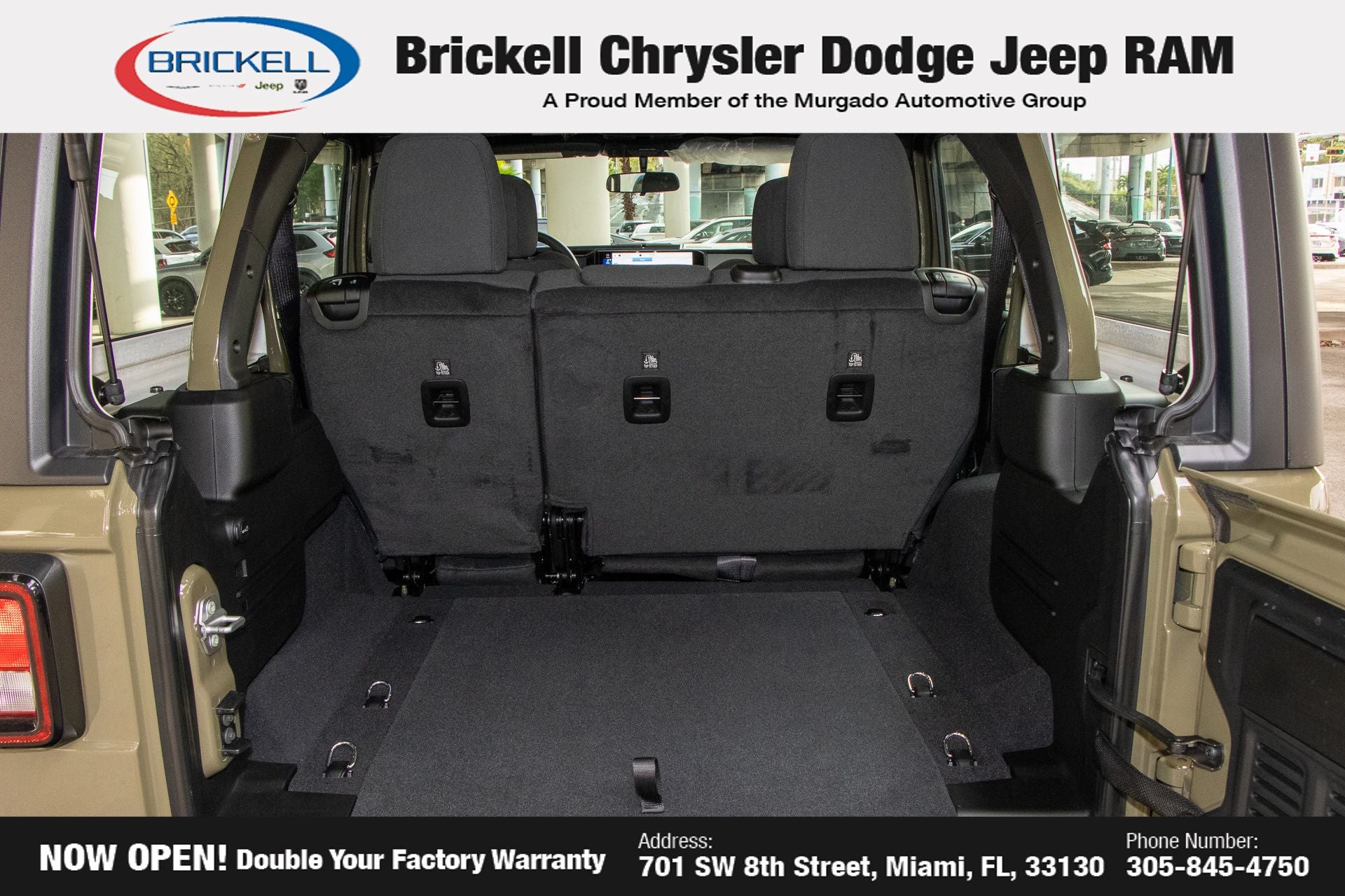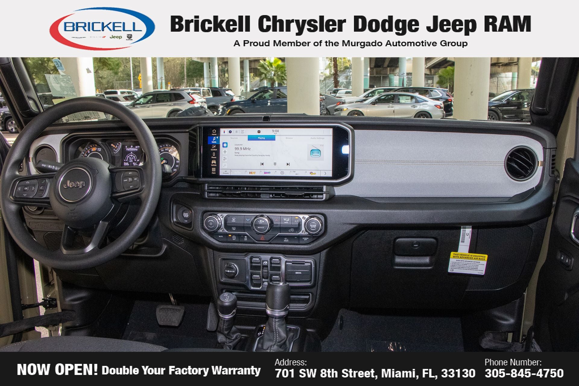 Price includes: $1000 - 2026 National Retail Bonus Cash . Exp. 04/30/2026 Discover Your Next Vehicle at Brickell Chrysler Dodge Jeep Ram Welcome to Brickell CDJR, where we go beyond selling cars. We double the factory powertrain warranty, giving you added peace of mind. Our dealership offers one of the largest new car inventories in the region, ensuring you find the right vehicle Prices displayed do not included our Perma-plate. Our state-of-the-art service department is the largest in the country and is open seven days a week from 7 AM to 9 PM. Visit us at 701 SW 8th St, Miami, FL 33130, or call 305-777-2800 to learn more and schedule a test drive. The displayed price includes an incentive for financing with Brickell CDJR Finance Company. Outside financing and bank drafts are not accepted. All pre-owned vehicle exports are subject to an export fee. Prices apply only to customers who live, work, or worship in Broward, Miami-Dade, Palm Beach, Monroe, Collier, Hendry, Lee, Glades, Martin, St. Lucie, Okeechobee, Manatee, Hillsborough, Osceola, or Orange County. Customers outside these counties will pay an additional $ Taxes, title, registration, and dealer fees apply. Factory MSRP: $45,230 41 2026 Jeep Wrangler Sport 4WD 8-Speed Automatic 2.0L I4 DOHC