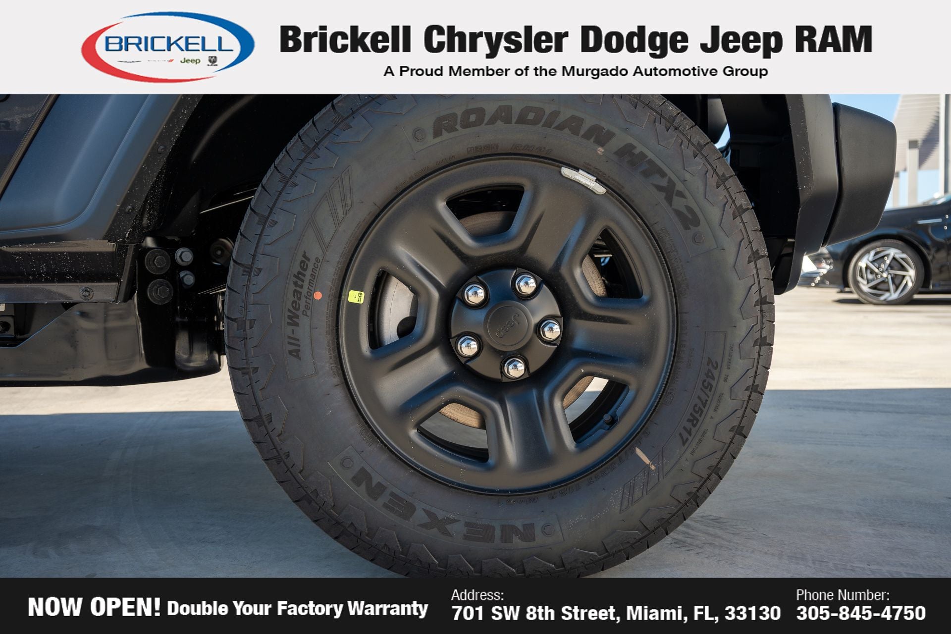 Price includes: $1000 - 2026 National Retail Bonus Cash . Exp. 04/30/2026 Discover Your Next Vehicle at Brickell Chrysler Dodge Jeep Ram Welcome to Brickell CDJR, where we go beyond selling cars. We double the factory powertrain warranty, giving you added peace of mind. Our dealership offers one of the largest new car inventories in the region, ensuring you find the right vehicle Prices displayed do not included our Perma-plate. Our state-of-the-art service department is the largest in the country and is open seven days a week from 7 AM to 9 PM. Visit us at 701 SW 8th St, Miami, FL 33130, or call 305-777-2800 to learn more and schedule a test drive. The displayed price includes an incentive for financing with Brickell CDJR Finance Company. Outside financing and bank drafts are not accepted. All pre-owned vehicle exports are subject to an export fee. Prices apply only to customers who live, work, or worship in Broward, Miami-Dade, Palm Beach, Monroe, Collier, Hendry, Lee, Glades, Martin, St. Lucie, Okeechobee, Manatee, Hillsborough, Osceola, or Orange County. Customers outside these counties will pay an additional $ Taxes, title, registration, and dealer fees apply. Factory MSRP: $43,765 Granite Crystal Metallic Clearcoat 2026 Jeep Wrangler Sport 4WD 8-Speed Automatic 2.0L I4 DOHC