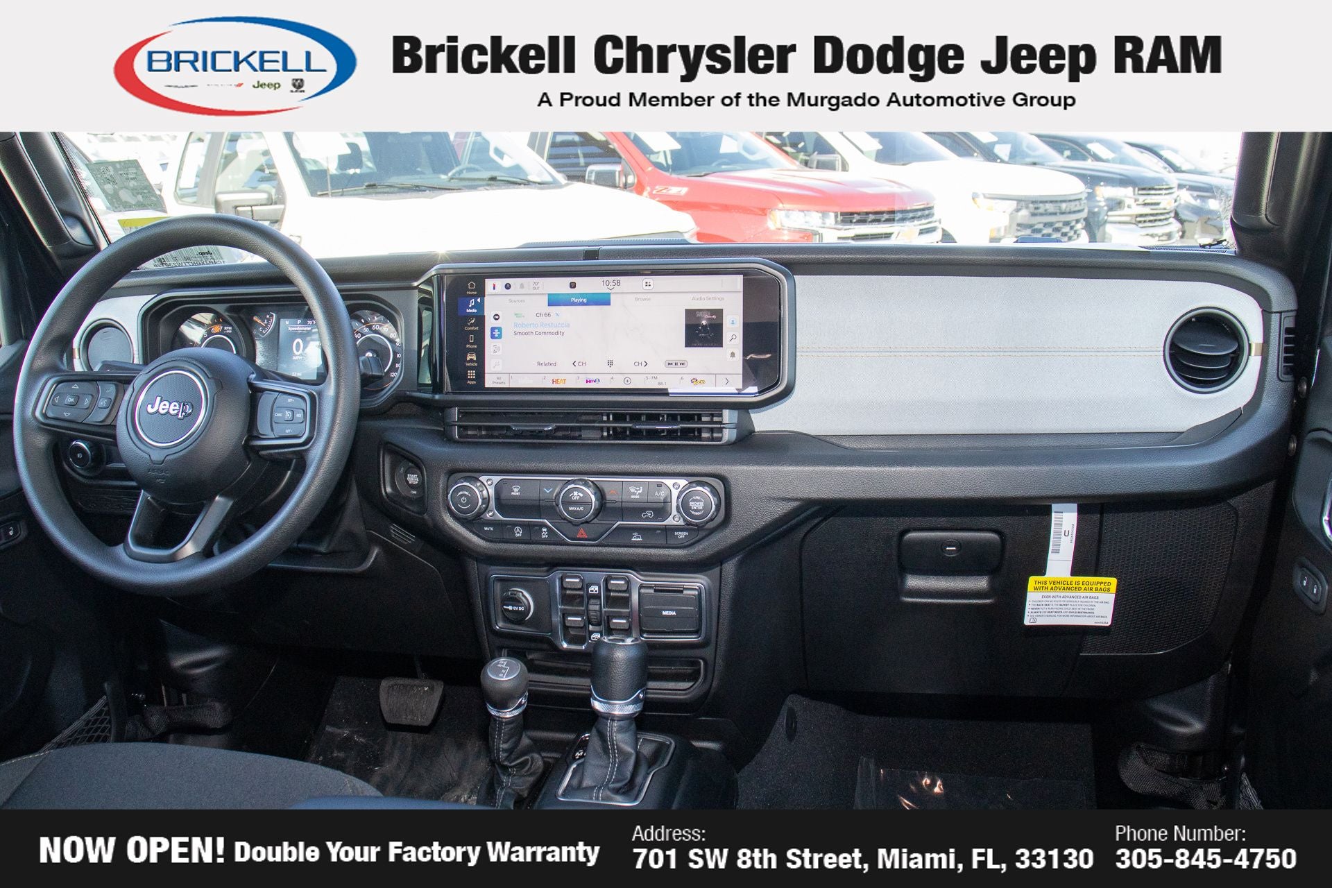 Price includes: $500 - 2026 National 2026 Military Bonus Cash . Exp. 03/05/2026 Discover Your Next Vehicle at Brickell Chrysler Dodge Jeep Ram Welcome to Brickell CDJR, where we go beyond selling cars. We double the factory powertrain warranty, giving you added peace of mind. Our dealership offers one of the largest new car inventories in the region, ensuring you find the right vehicle Prices displayed do not included our Perma-plate. Our state-of-the-art service department is the largest in the country and is open seven days a week from 7 AM to 9 PM. Visit us at 701 SW 8th St, Miami, FL 33130, or call 305-777-2800 to learn more and schedule a test drive. The displayed price includes an incentive for financing with Brickell CDJR Finance Company. Outside financing and bank drafts are not accepted. All pre-owned vehicle exports are subject to an export fee. Prices apply only to customers who live, work, or worship in Broward, Miami-Dade, Palm Beach, Monroe, Collier, Hendry, Lee, Glades, Martin, St. Lucie, Okeechobee, Manatee, Hillsborough, Osceola, or Orange County. Customers outside these counties will pay an additional $ Taxes, title, registration, and dealer fees apply. Factory MSRP: $43,190 Black Clearcoat 2026 Jeep Wrangler Sport 4WD 8-Speed Automatic 2.0L I4 DOHC