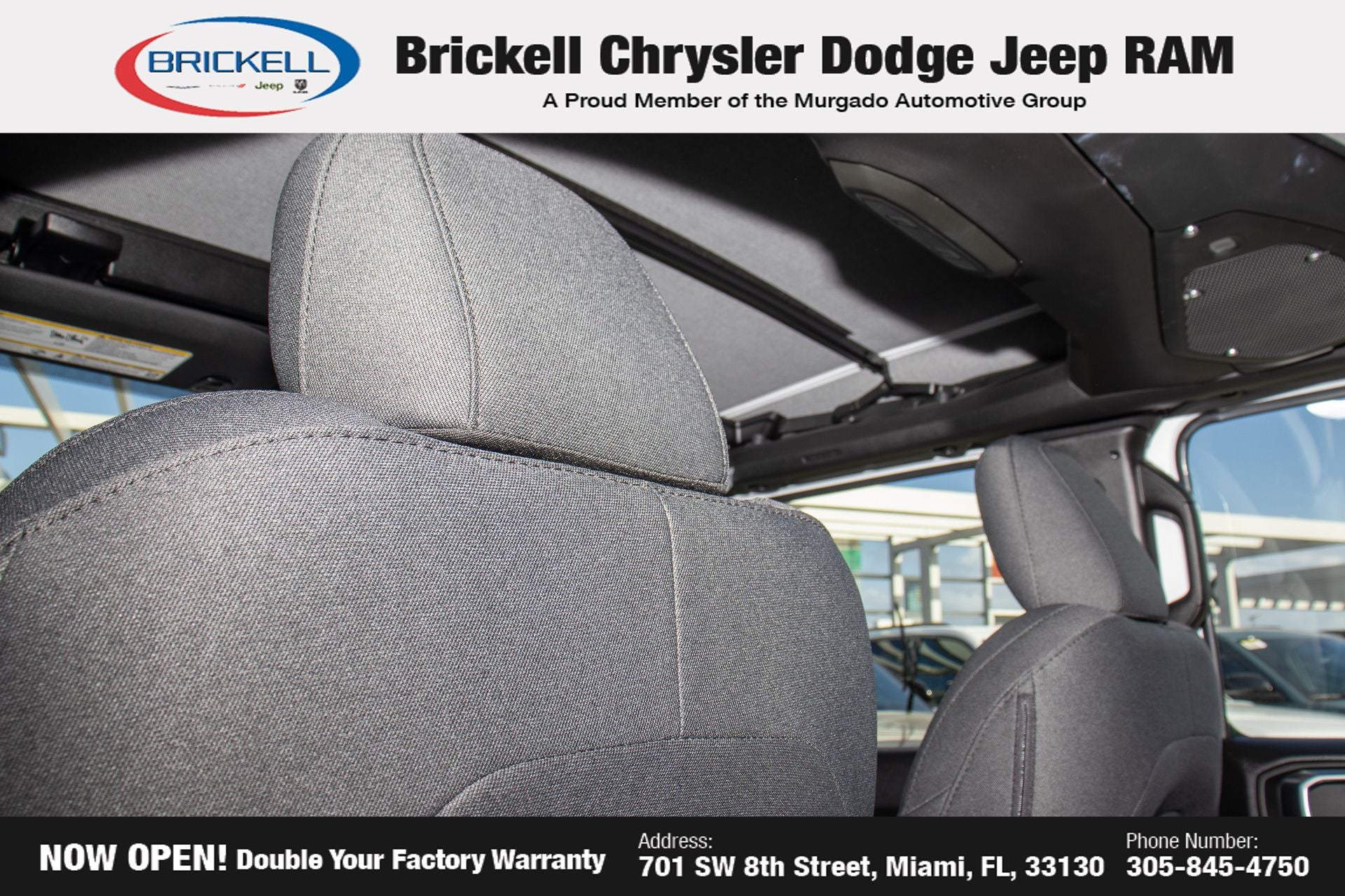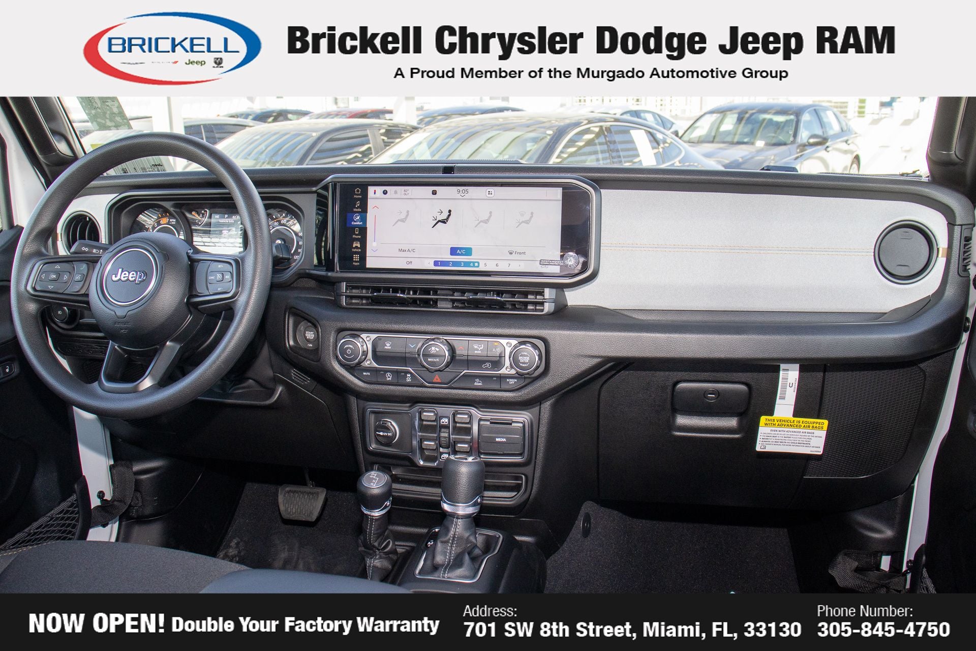 Price includes: $1000 - 2026 National Retail Bonus Cash . Exp. 04/30/2026 Discover Your Next Vehicle at Brickell Chrysler Dodge Jeep Ram Welcome to Brickell CDJR, where we go beyond selling cars. We double the factory powertrain warranty, giving you added peace of mind. Our dealership offers one of the largest new car inventories in the region, ensuring you find the right vehicle Prices displayed do not included our Perma-plate. Our state-of-the-art service department is the largest in the country and is open seven days a week from 7 AM to 9 PM. Visit us at 701 SW 8th St, Miami, FL 33130, or call 305-777-2800 to learn more and schedule a test drive. The displayed price includes an incentive for financing with Brickell CDJR Finance Company. Outside financing and bank drafts are not accepted. All pre-owned vehicle exports are subject to an export fee. Prices apply only to customers who live, work, or worship in Broward, Miami-Dade, Palm Beach, Monroe, Collier, Hendry, Lee, Glades, Martin, St. Lucie, Okeechobee, Manatee, Hillsborough, Osceola, or Orange County. Customers outside these counties will pay an additional $ Taxes, title, registration, and dealer fees apply. Factory MSRP: $43,170 Bright White Clearcoat 2026 Jeep Wrangler Sport 4WD 8-Speed Automatic 2.0L I4 DOHC