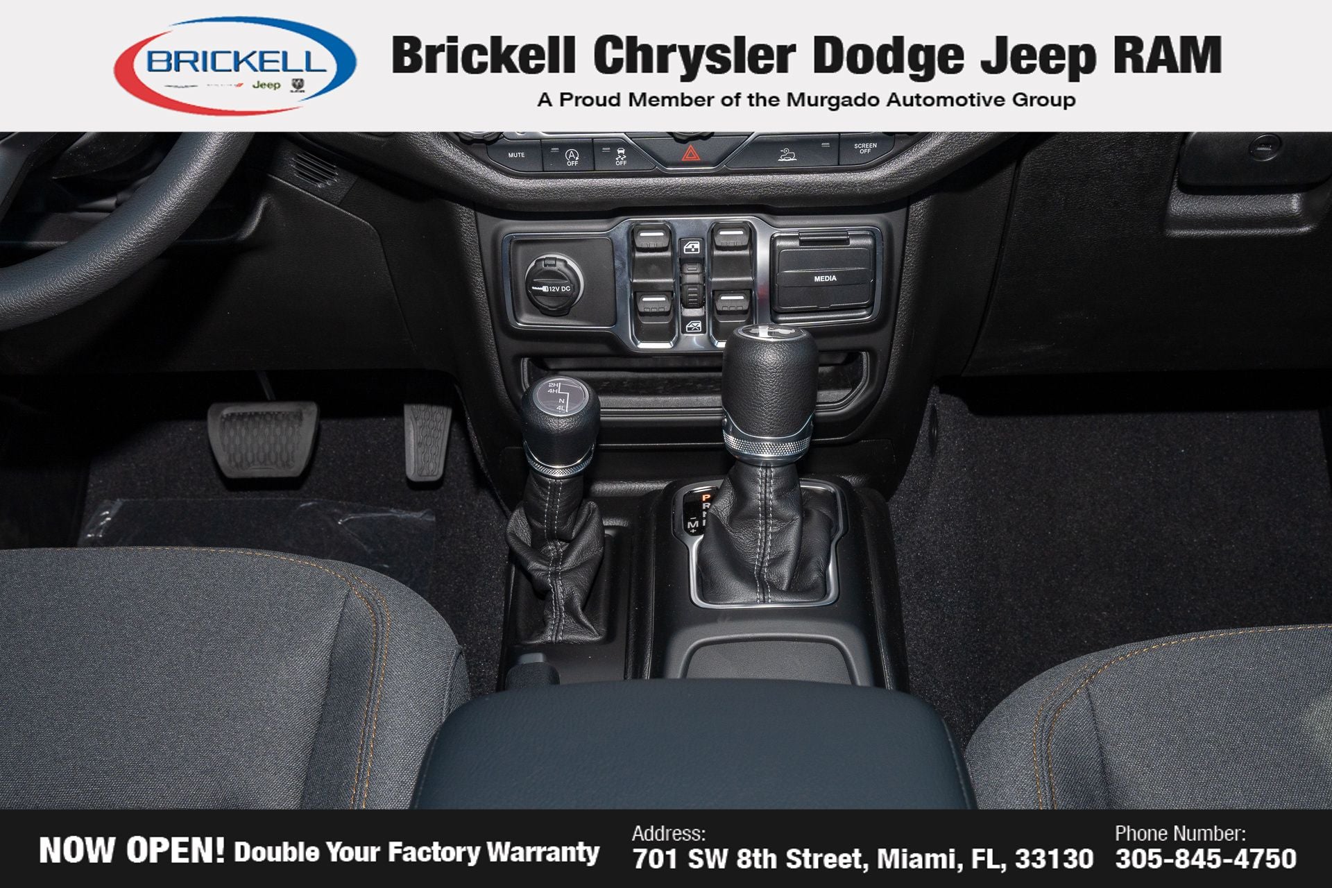 Price includes: $500 - 2026 National 2026 Military Bonus Cash . Exp. 01/04/2027 Discover Your Next Vehicle at Brickell Chrysler Dodge Jeep Ram Welcome to Brickell CDJR, where we go beyond selling cars. We double the factory powertrain warranty, giving you added peace of mind. Our dealership offers one of the largest new car inventories in the region, ensuring you find the right vehicle Prices displayed do not included our Perma-plate. Our state-of-the-art service department is the largest in the country and is open seven days a week from 7 AM to 9 PM. Visit us at 701 SW 8th St, Miami, FL 33130, or call 305-777-2800 to learn more and schedule a test drive. The displayed price includes an incentive for financing with Brickell CDJR Finance Company. Outside financing and bank drafts are not accepted. All pre-owned vehicle exports are subject to an export fee. Prices apply only to customers who live, work, or worship in Broward, Miami-Dade, Palm Beach, Monroe, Collier, Hendry, Lee, Glades, Martin, St. Lucie, Okeechobee, Manatee, Hillsborough, Osceola, or Orange County. Customers outside these counties will pay an additional $ Taxes, title, registration, and dealer fees apply. Factory MSRP: $43,765 Mojito Clearcoat 2026 Jeep Wrangler Sport 4WD 8-Speed Automatic 2.0L I4 DOHC