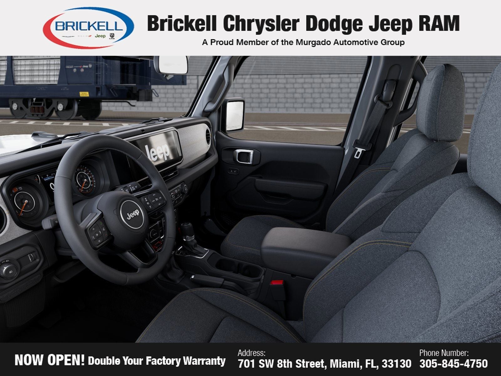 Price includes: $1000 - 2026 National Retail Bonus Cash . Exp. 04/30/2026 Discover Your Next Vehicle at Brickell Chrysler Dodge Jeep Ram Welcome to Brickell CDJR, where we go beyond selling cars. We double the factory powertrain warranty, giving you added peace of mind. Our dealership offers one of the largest new car inventories in the region, ensuring you find the right vehicle Prices displayed do not included our Perma-plate. Our state-of-the-art service department is the largest in the country and is open seven days a week from 7 AM to 9 PM. Visit us at 701 SW 8th St, Miami, FL 33130, or call 305-777-2800 to learn more and schedule a test drive. The displayed price includes an incentive for financing with Brickell CDJR Finance Company. Outside financing and bank drafts are not accepted. All pre-owned vehicle exports are subject to an export fee. Prices apply only to customers who live, work, or worship in Broward, Miami-Dade, Palm Beach, Monroe, Collier, Hendry, Lee, Glades, Martin, St. Lucie, Okeechobee, Manatee, Hillsborough, Osceola, or Orange County. Customers outside these counties will pay an additional $ Taxes, title, registration, and dealer fees apply. Factory MSRP: $52,025 Bright White Clearcoat 2026 Jeep Wrangler Willys 4WD 8-Speed Automatic 2.0L I4 DOHC