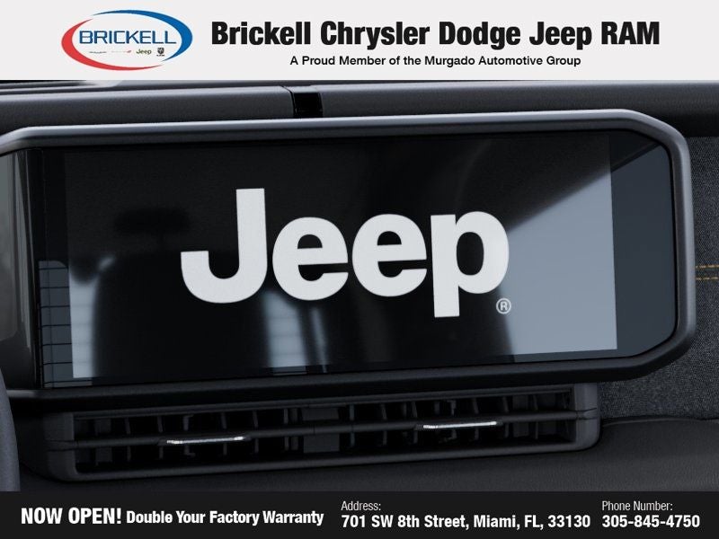 Price includes: $1000 - 2026 National Retail Bonus Cash . Exp. 03/31/2026 Discover Your Next Vehicle at Brickell Chrysler Dodge Jeep Ram Welcome to Brickell CDJR, where we go beyond selling cars. We double the factory powertrain warranty, giving you added peace of mind. Our dealership offers one of the largest new car inventories in the region, ensuring you find the right vehicle Prices displayed do not included our Perma-plate. Our state-of-the-art service department is the largest in the country and is open seven days a week from 7 AM to 9 PM. Visit us at 701 SW 8th St, Miami, FL 33130, or call 305-777-2800 to learn more and schedule a test drive. The displayed price includes an incentive for financing with Brickell CDJR Finance Company. Outside financing and bank drafts are not accepted. All pre-owned vehicle exports are subject to an export fee. Prices apply only to customers who live, work, or worship in Broward, Miami-Dade, Palm Beach, Monroe, Collier, Hendry, Lee, Glades, Martin, St. Lucie, Okeechobee, Manatee, Hillsborough, Osceola, or Orange County. Customers outside these counties will pay an additional $ Taxes, title, registration, and dealer fees apply. Factory MSRP: $53,355 41 2026 Jeep Wrangler Willys 4WD 8-Speed Automatic 2.0L I4 DOHC