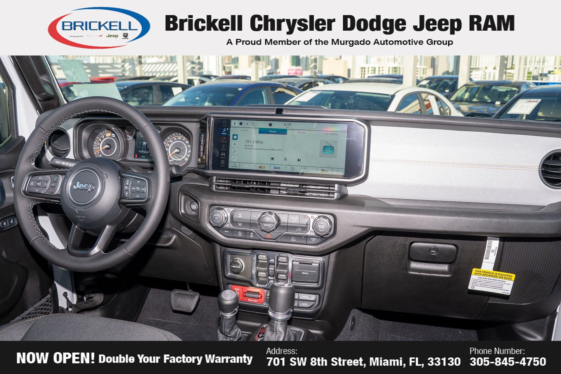 Price includes: $500 - 2026 National 2026 Military Bonus Cash . Exp. 01/04/2027 Discover Your Next Vehicle at Brickell Chrysler Dodge Jeep Ram Welcome to Brickell CDJR, where we go beyond selling cars. We double the factory powertrain warranty, giving you added peace of mind. Our dealership offers one of the largest new car inventories in the region, ensuring you find the right vehicle Prices displayed do not included our Perma-plate. Our state-of-the-art service department is the largest in the country and is open seven days a week from 7 AM to 9 PM. Visit us at 701 SW 8th St, Miami, FL 33130, or call 305-777-2800 to learn more and schedule a test drive. The displayed price includes an incentive for financing with Brickell CDJR Finance Company. Outside financing and bank drafts are not accepted. All pre-owned vehicle exports are subject to an export fee. Prices apply only to customers who live, work, or worship in Broward, Miami-Dade, Palm Beach, Monroe, Collier, Hendry, Lee, Glades, Martin, St. Lucie, Okeechobee, Manatee, Hillsborough, Osceola, or Orange County. Customers outside these counties will pay an additional $ Taxes, title, registration, and dealer fees apply. Factory MSRP: $54,410 Bright White Clearcoat 2026 Jeep Wrangler Willys 4WD 8-Speed Automatic 2.0L I4 DOHC