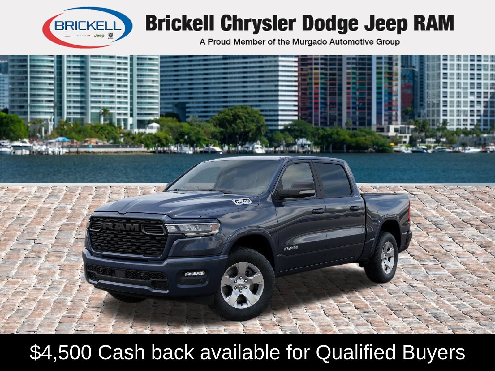 Price includes: $1000 - 2026 Southeast BC Retail Bonus Cash. Exp. 04/30/2026 $3500 - 2026 National Retail Bonus Cash . Exp. 04/30/2026 Discover Your Next Vehicle at Brickell Chrysler Dodge Jeep Ram Welcome to Brickell CDJR, where we go beyond selling cars. We double the factory powertrain warranty, giving you added peace of mind. Our dealership offers one of the largest new car inventories in the region, ensuring you find the right vehicle Prices displayed do not included our Perma-plate. Our state-of-the-art service department is the largest in the country and is open seven days a week from 7 AM to 9 PM. Visit us at 701 SW 8th St, Miami, FL 33130, or call 305-777-2800 to learn more and schedule a test drive. The displayed price includes an incentive for financing with Brickell CDJR Finance Company. Outside financing and bank drafts are not accepted. All pre-owned vehicle exports are subject to an export fee. Prices apply only to customers who live, work, or worship in Broward, Miami-Dade, Palm Beach, Monroe, Collier, Hendry, Lee, Glades, Martin, St. Lucie, Okeechobee, Manatee, Hillsborough, Osceola, or Orange County. Customers outside these counties will pay an additional $ Taxes, title, registration, and dealer fees apply. Factory MSRP: $56,610 Forged Blue Metallic 2026 Ram 1500 Big Horn/Lone Star RWD 8-Speed Automatic 3.6L V6 24V VVT