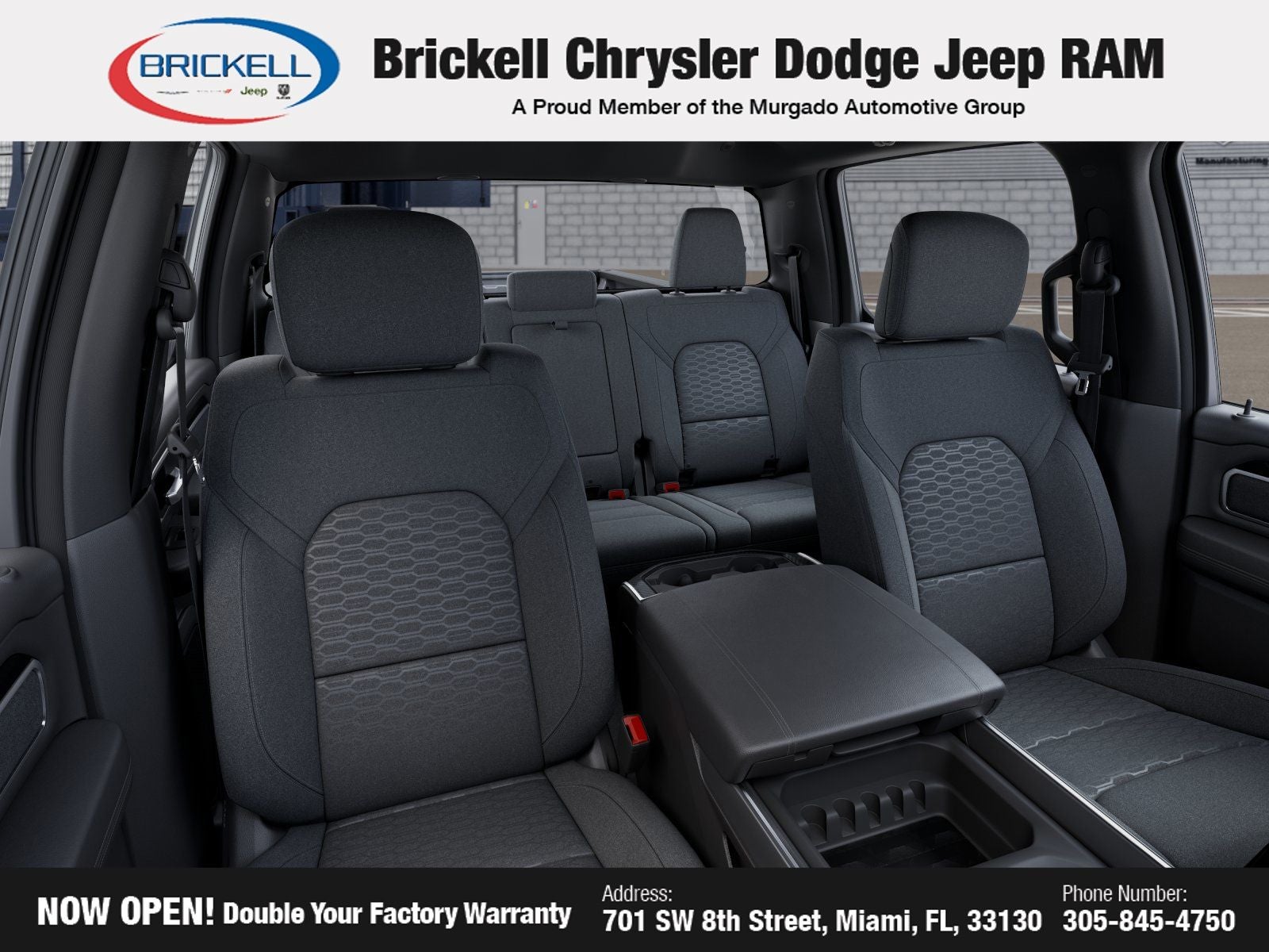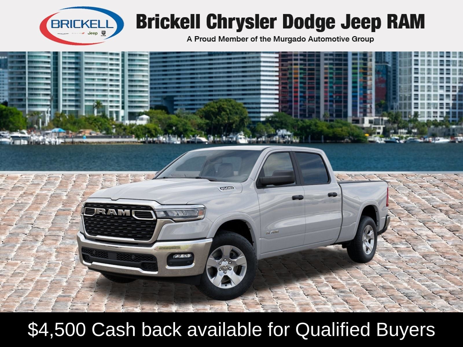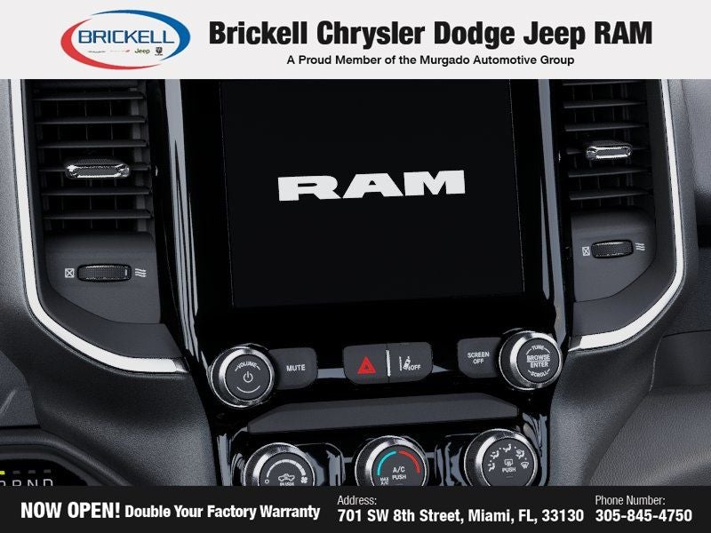 Price includes: $1000 - 2026 Southeast BC Retail Bonus Cash. Exp. 04/30/2026 $3500 - 2026 National Retail Bonus Cash . Exp. 04/30/2026 Discover Your Next Vehicle at Brickell Chrysler Dodge Jeep Ram Welcome to Brickell CDJR, where we go beyond selling cars. We double the factory powertrain warranty, giving you added peace of mind. Our dealership offers one of the largest new car inventories in the region, ensuring you find the right vehicle Prices displayed do not included our Perma-plate. Our state-of-the-art service department is the largest in the country and is open seven days a week from 7 AM to 9 PM. Visit us at 701 SW 8th St, Miami, FL 33130, or call 305-777-2800 to learn more and schedule a test drive. The displayed price includes an incentive for financing with Brickell CDJR Finance Company. Outside financing and bank drafts are not accepted. All pre-owned vehicle exports are subject to an export fee. Prices apply only to customers who live, work, or worship in Broward, Miami-Dade, Palm Beach, Monroe, Collier, Hendry, Lee, Glades, Martin, St. Lucie, Okeechobee, Manatee, Hillsborough, Osceola, or Orange County. Customers outside these counties will pay an additional $ Taxes, title, registration, and dealer fees apply. Factory MSRP: $55,960 Bright White Clearcoat 2026 Ram 1500 Big Horn/Lone Star RWD 8-Speed Automatic 3.0L I6